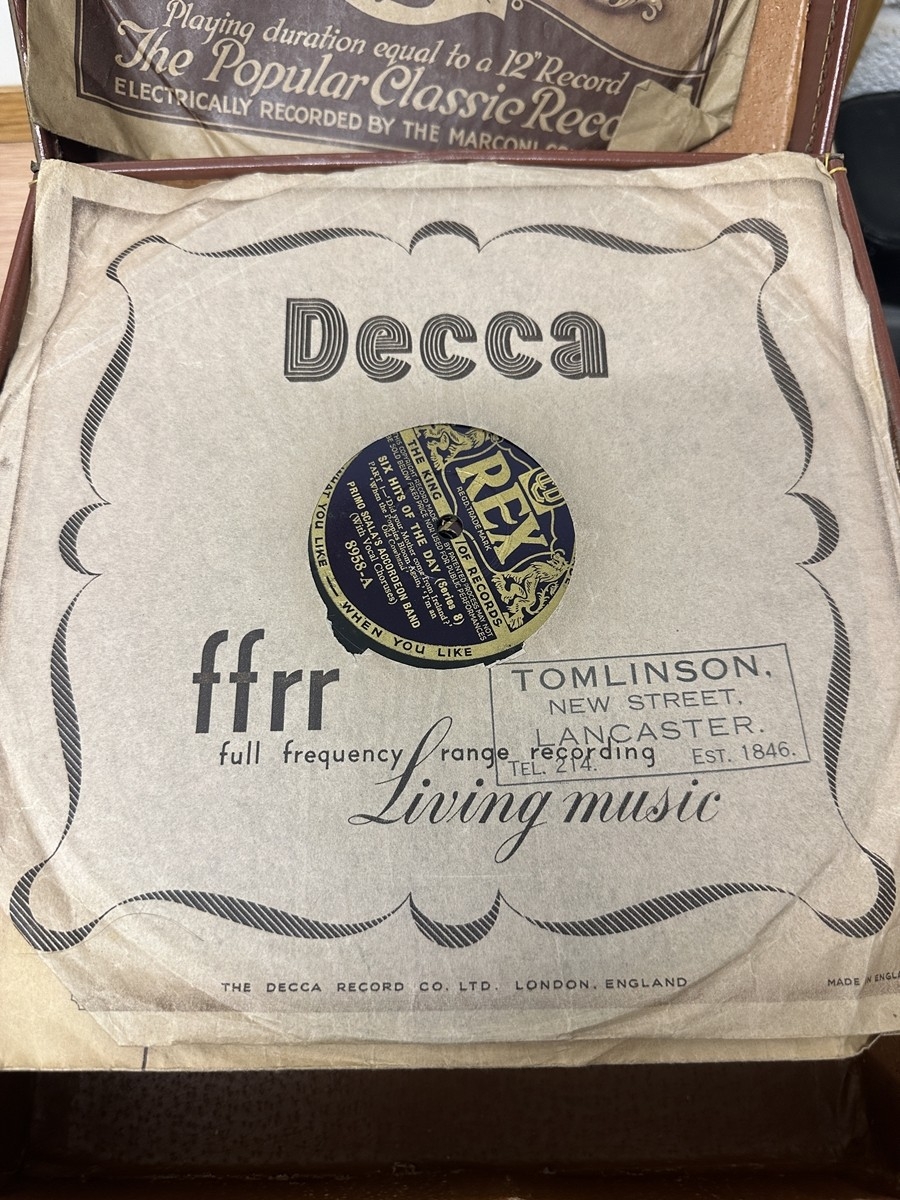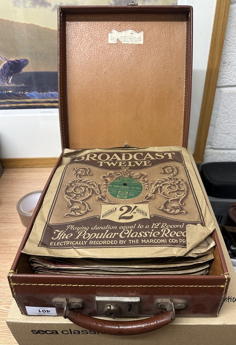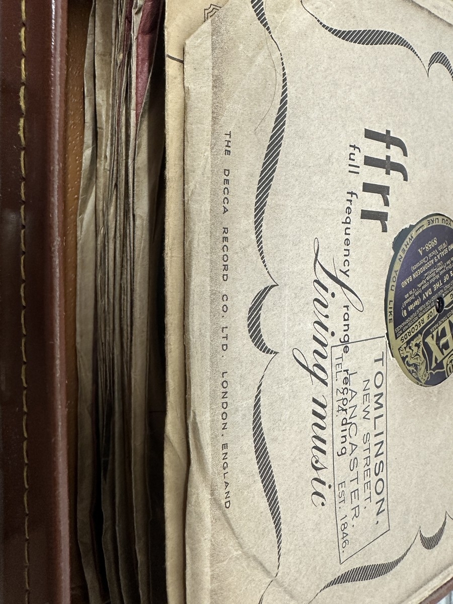 Collection of vinyl 78’s in vintage leather case