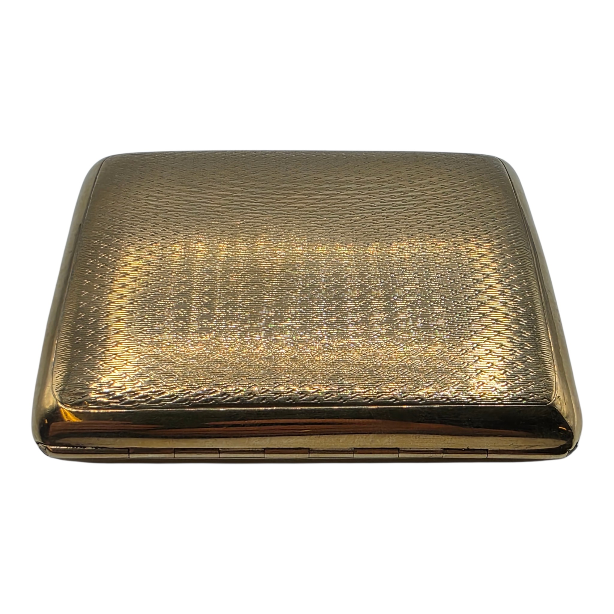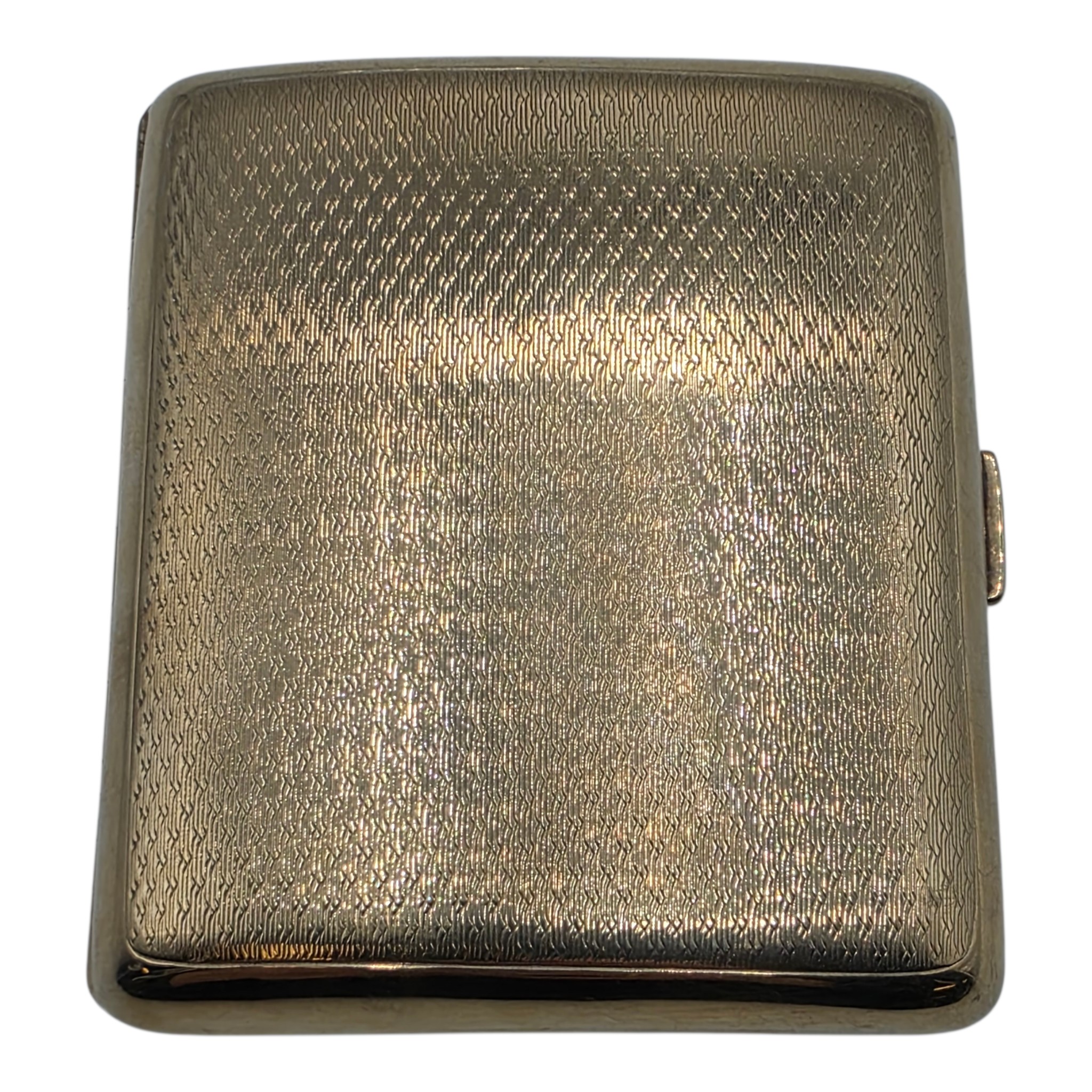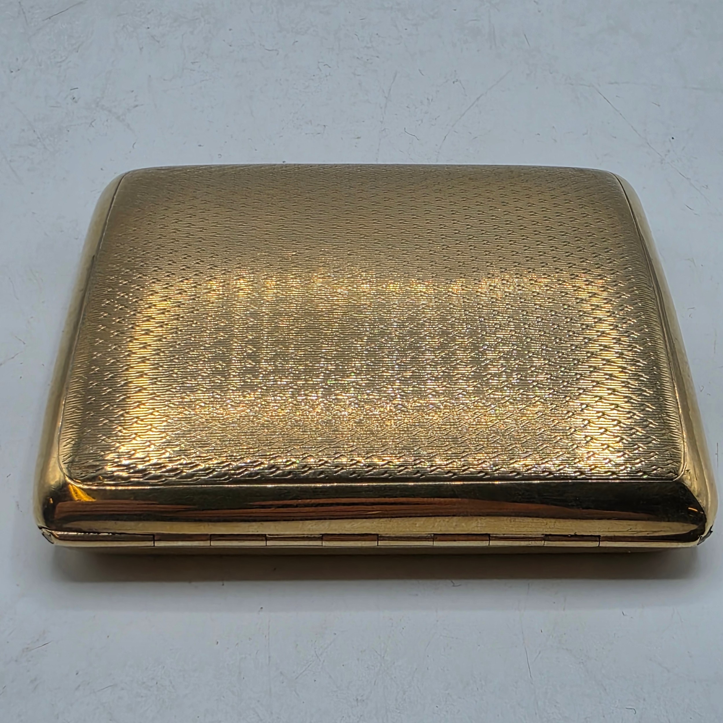 A 9ct gold hip shaped cigarette case with engine turned decoration. By William Neale Birmingham 1899. 81.2 g