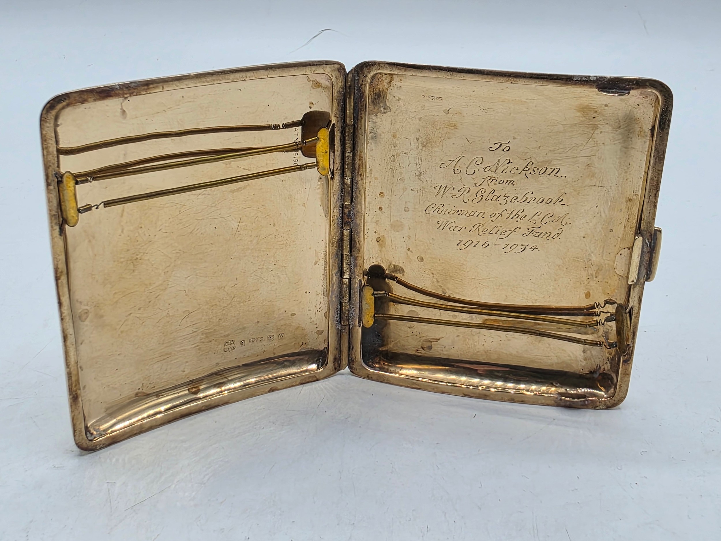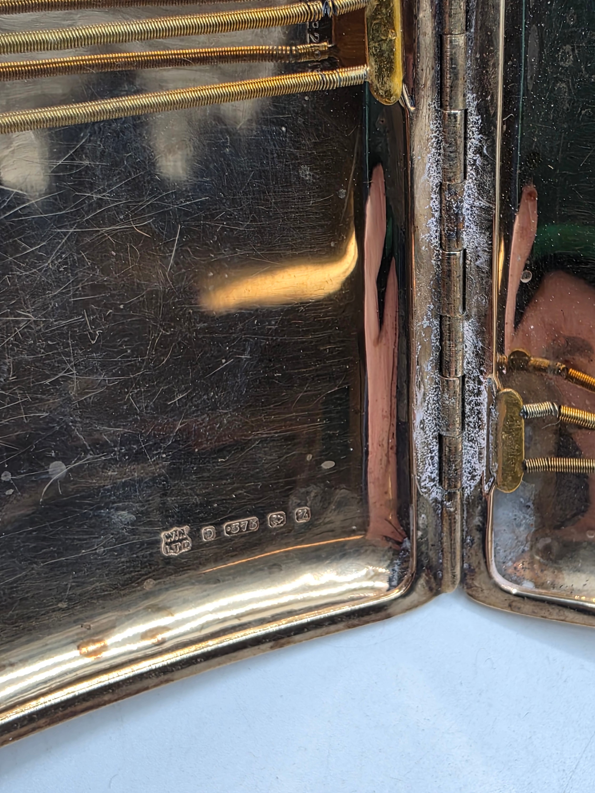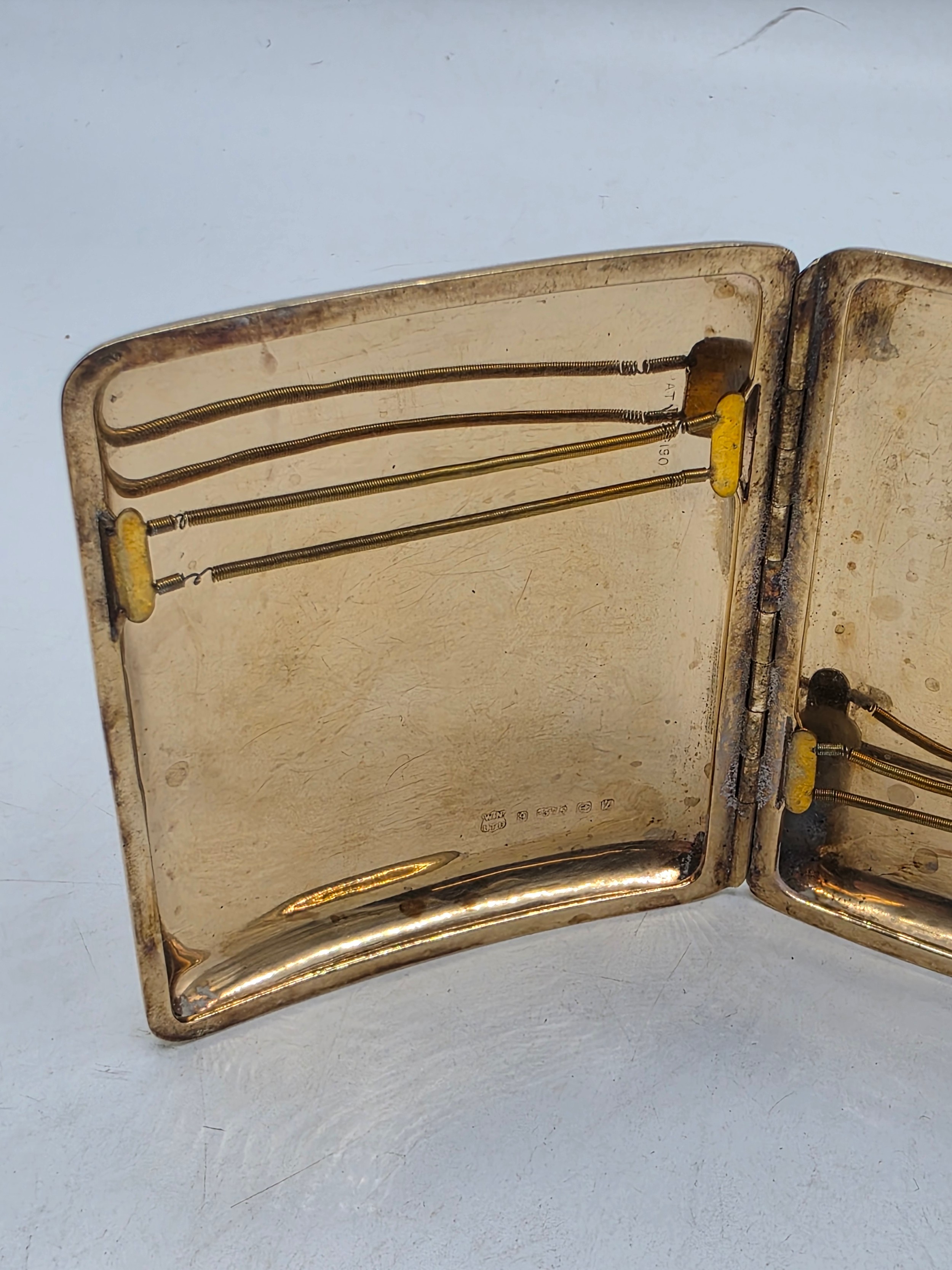A 9ct gold hip shaped cigarette case with engine turned decoration. By William Neale Birmingham 1899. 81.2 g