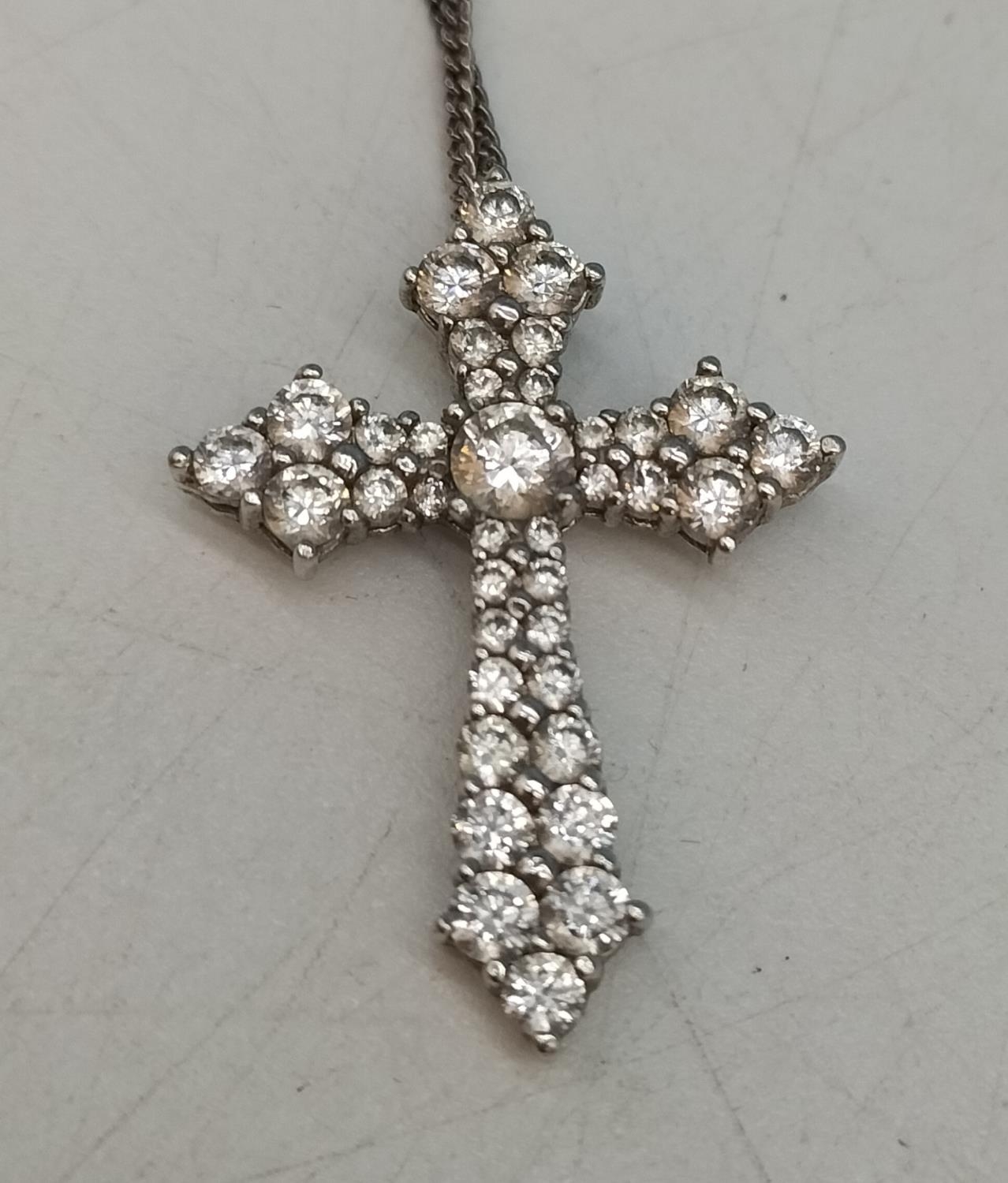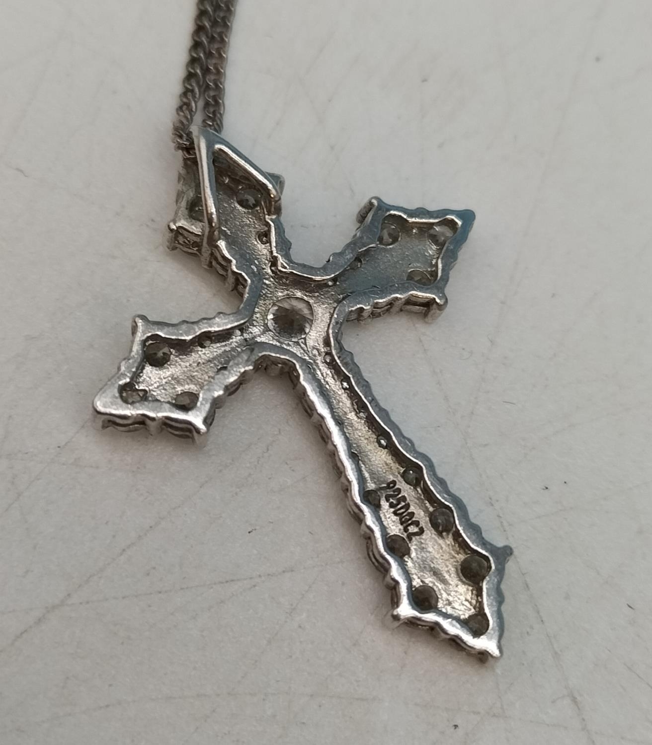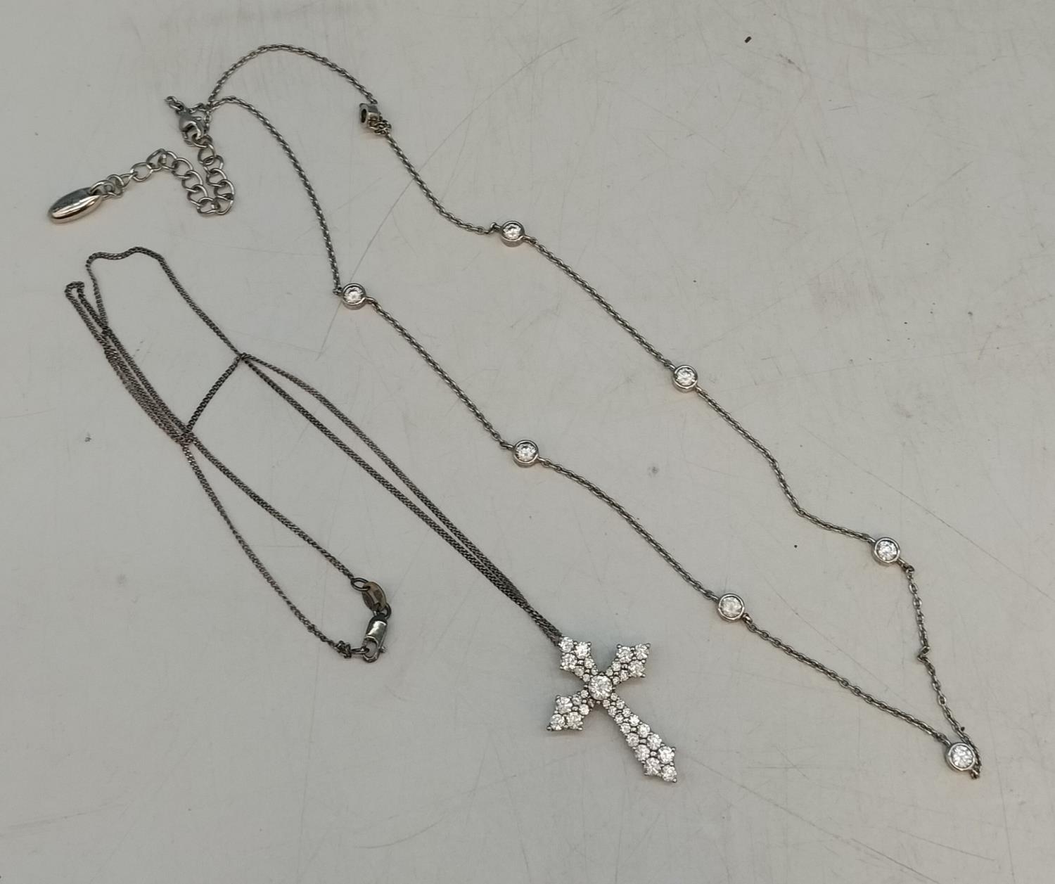 925 Silver 17" Chain with Silver and Cubic Zirconia Cross Pendant plus a 925 Silver and Cubic Zirconia 18" Necklace. Both Boxed.