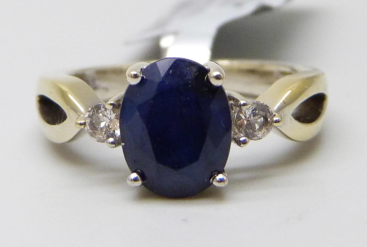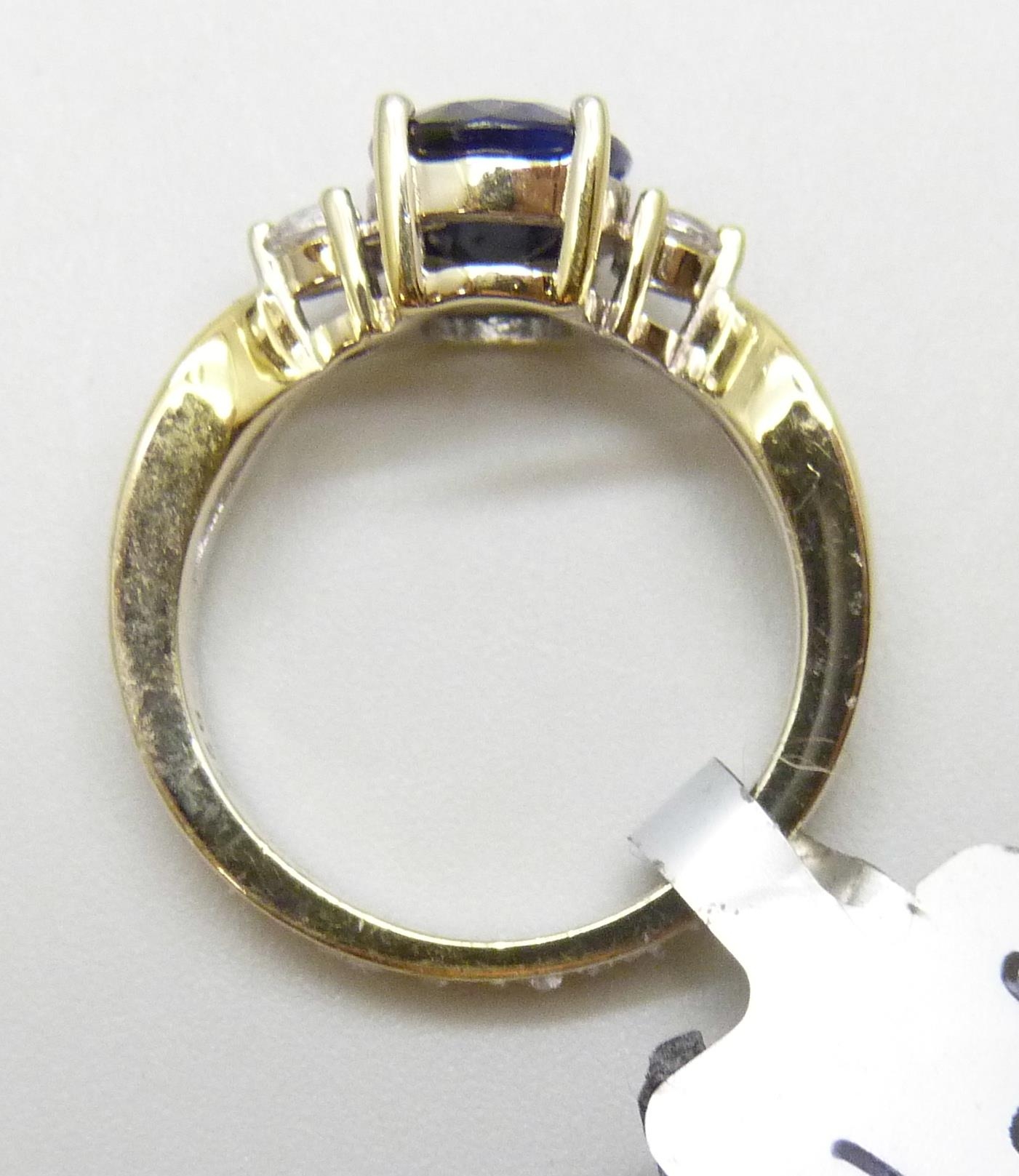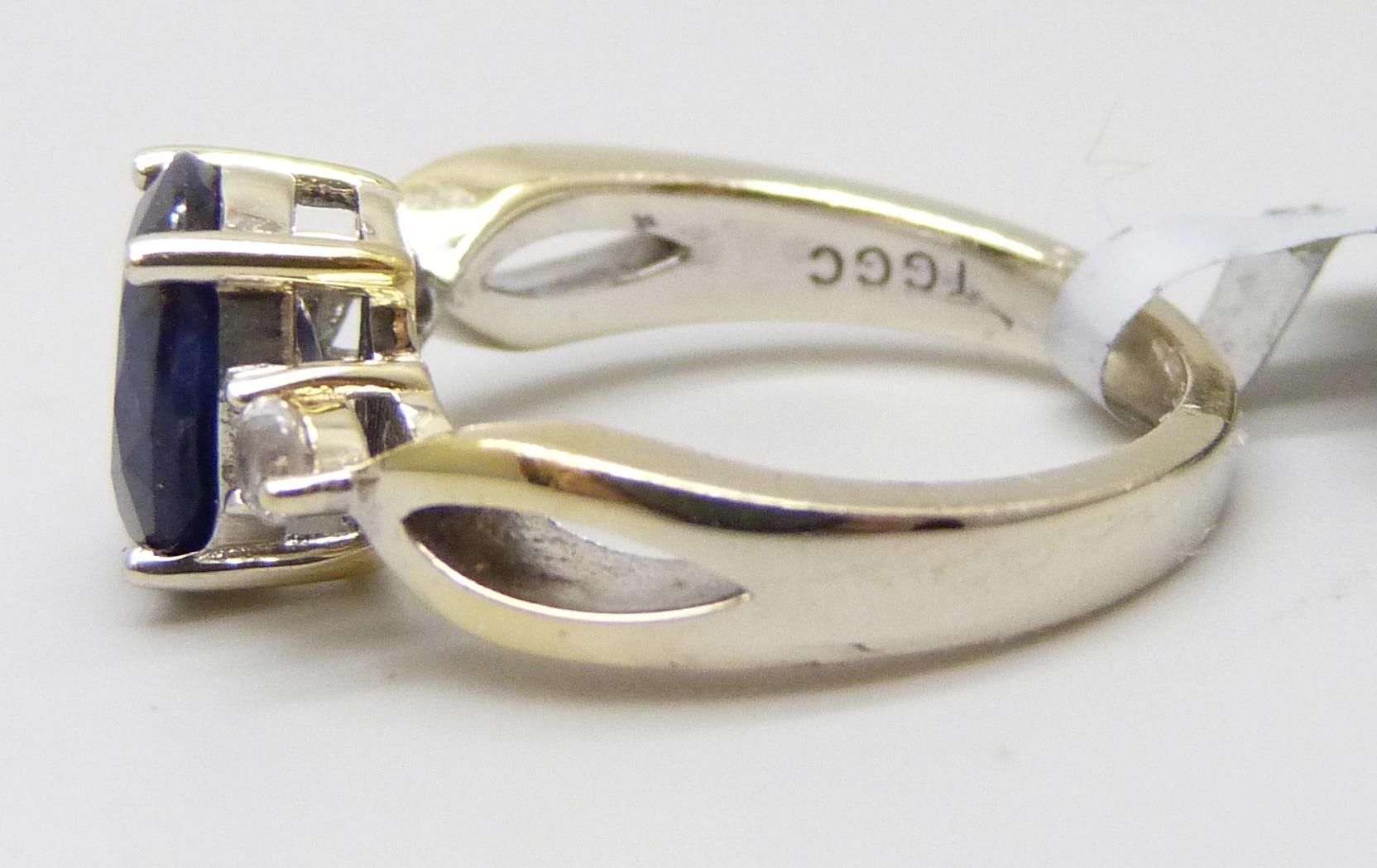 A TGGC silver gilt sapphire and zircon ring, J/K
