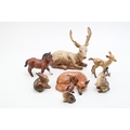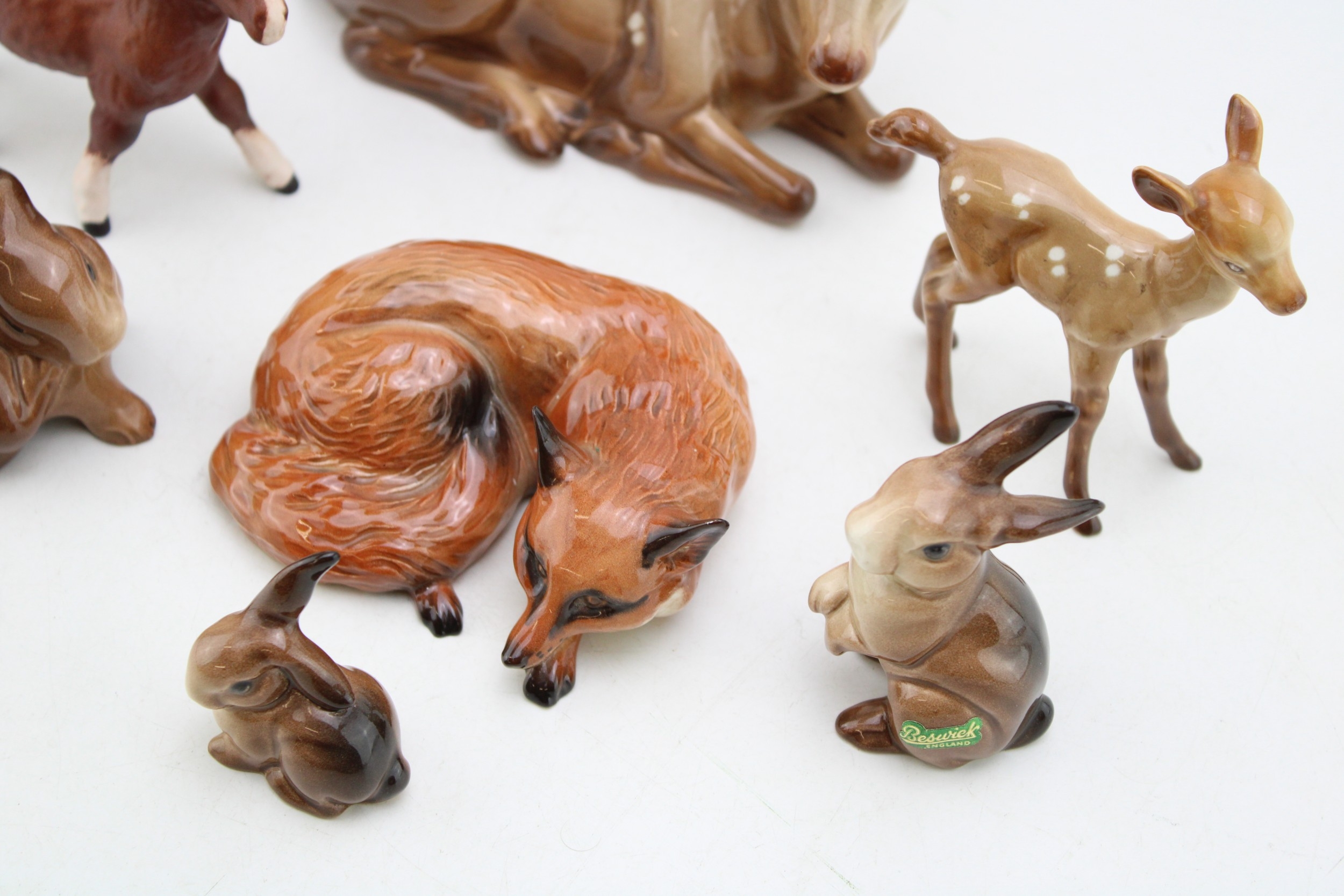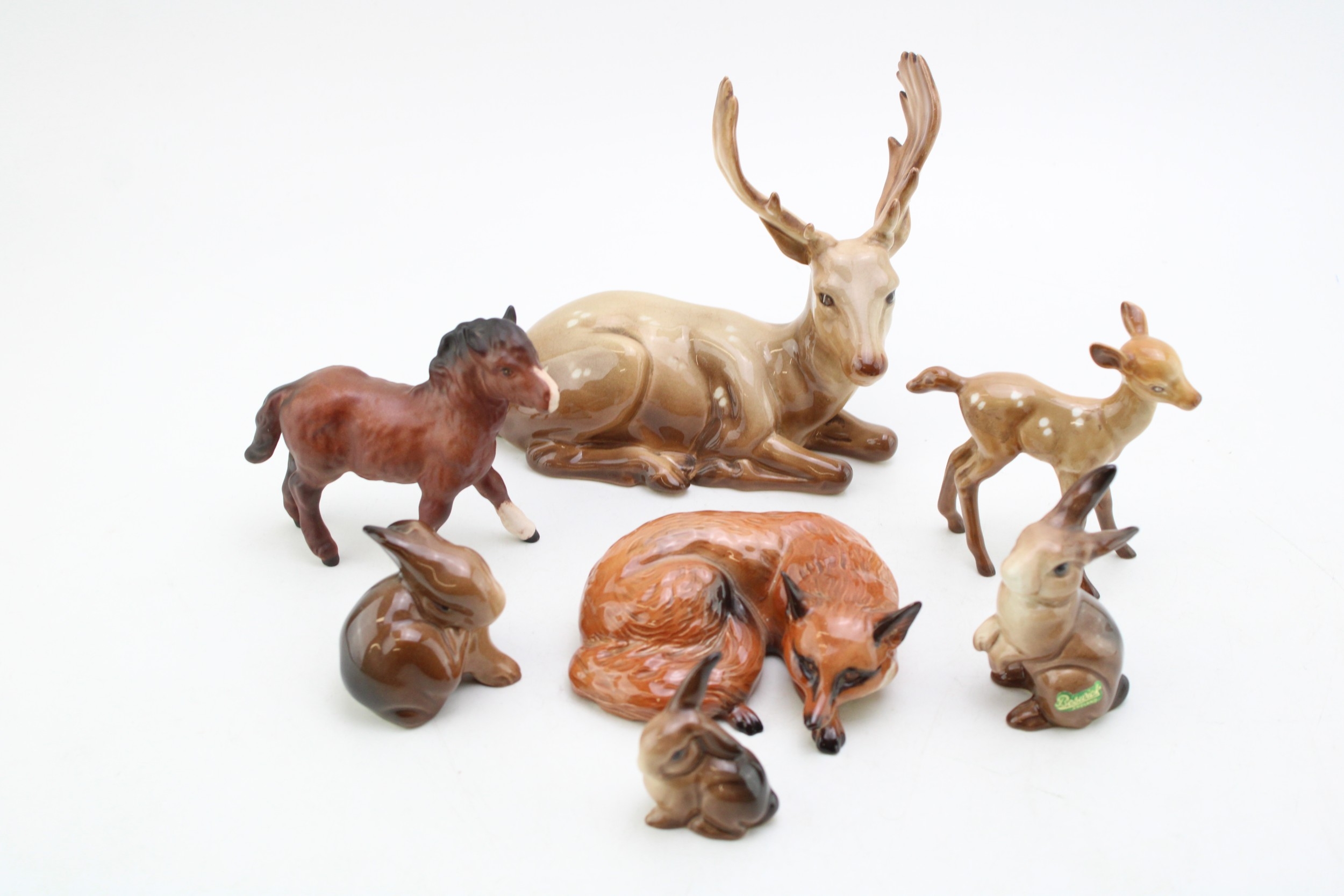 Beswick to include three rabbits, a matt brown Shetland foal, an early painted curled fox 1017, a deer and a fawn (Qty).