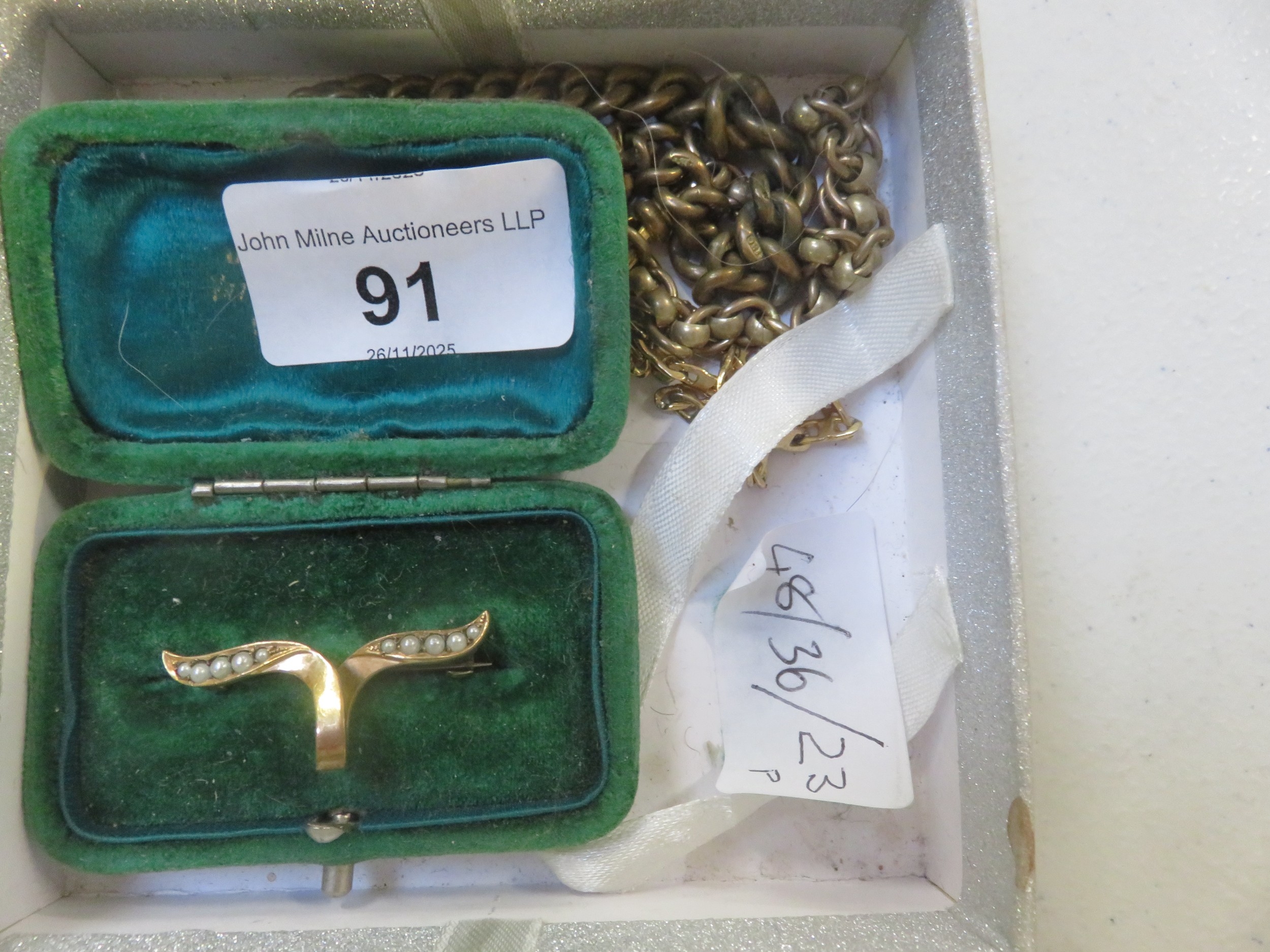 Antique Earl Bow Brooch and Lot Chain, Bracelets etc