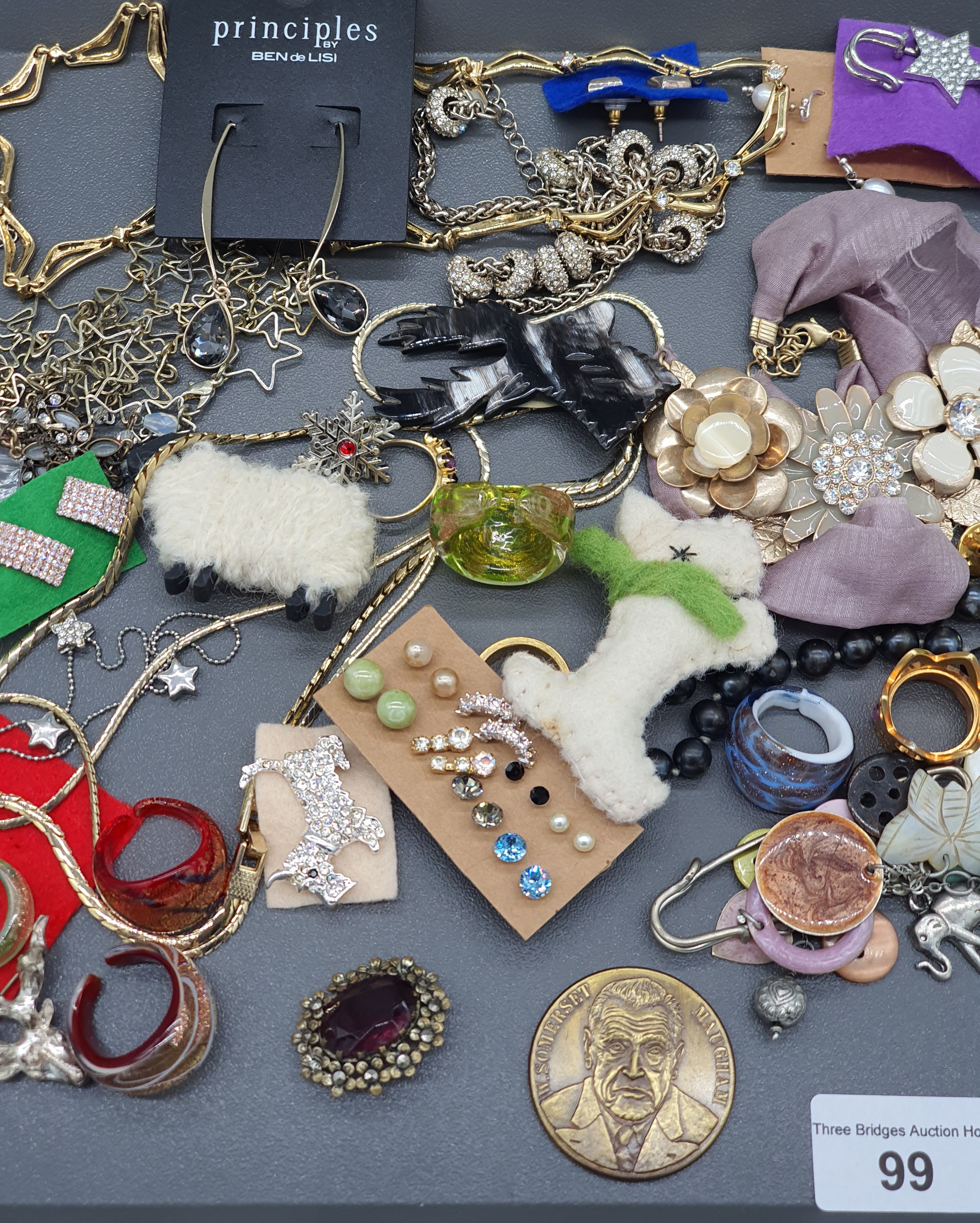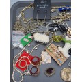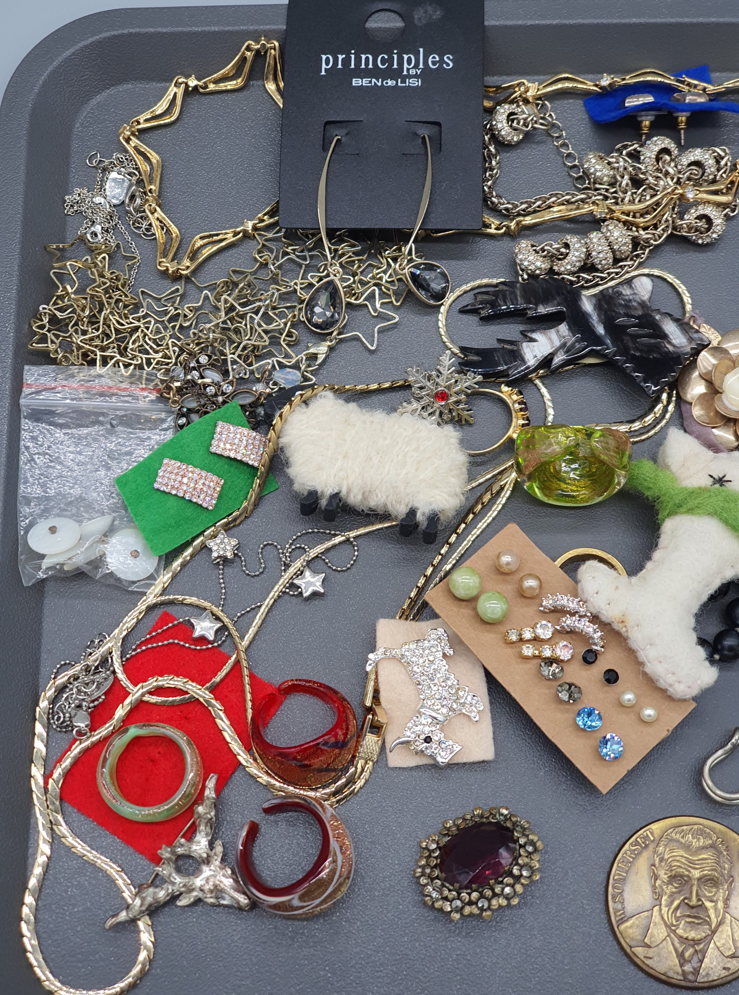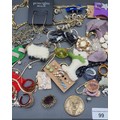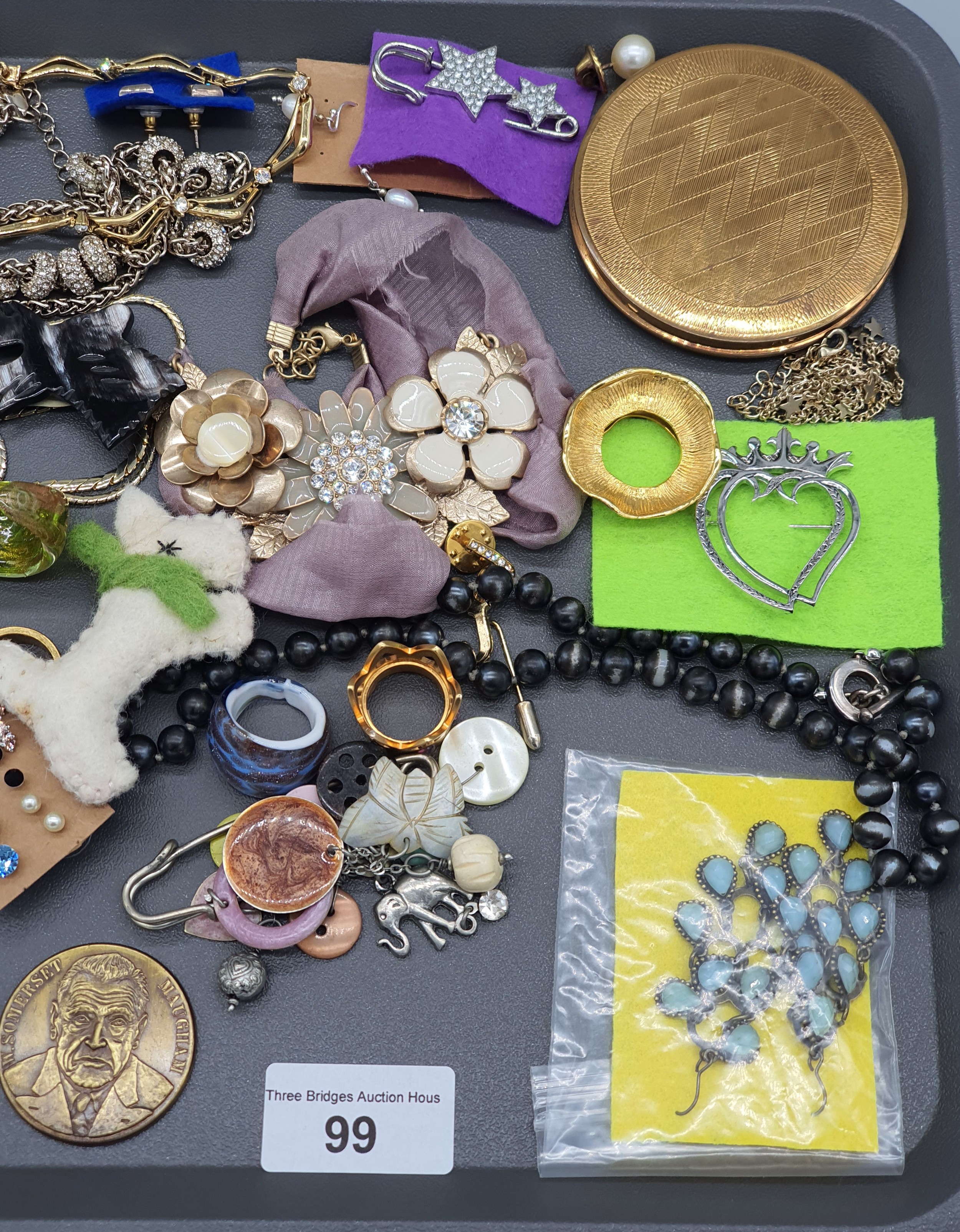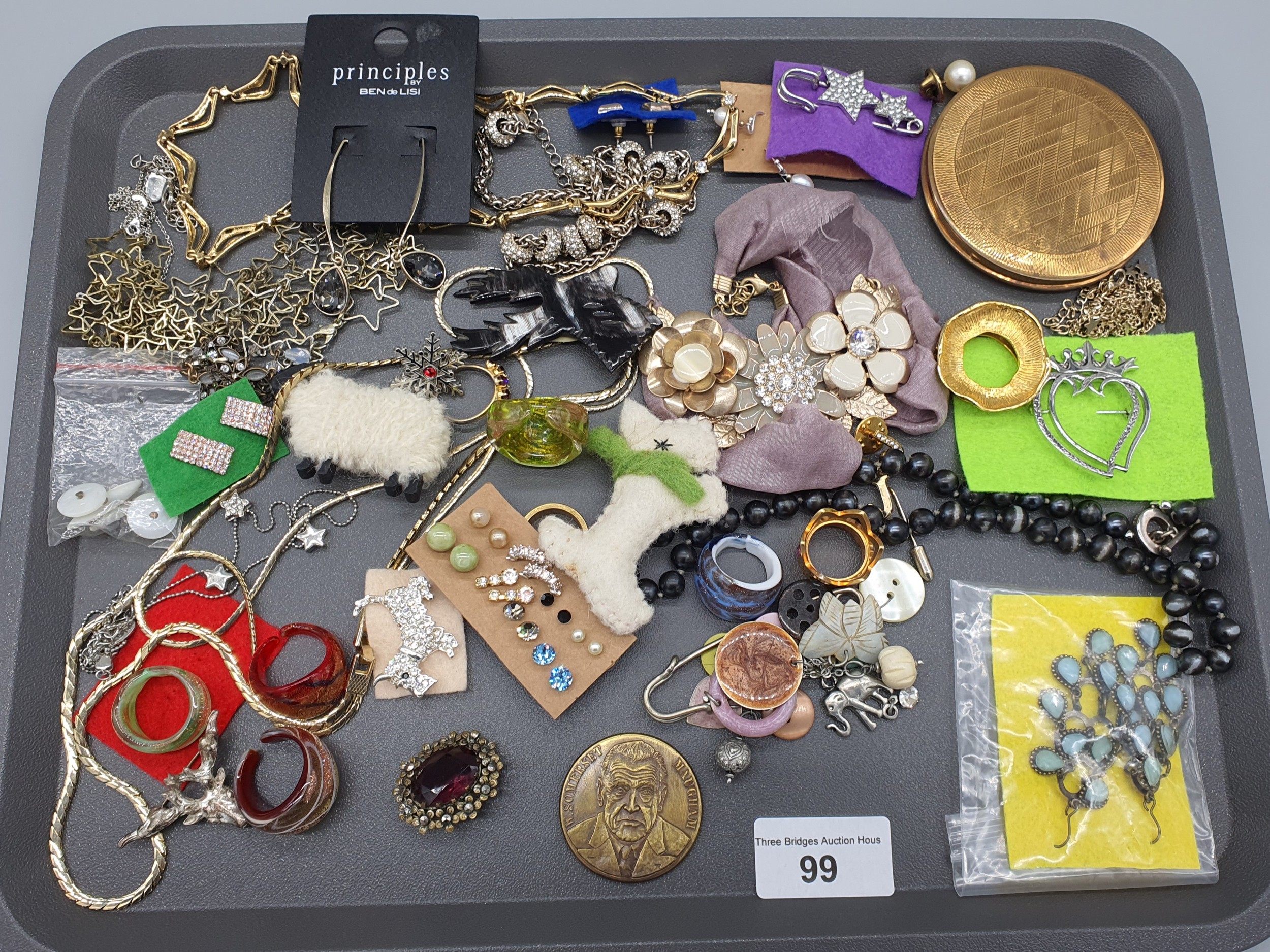 A Tray of costume jewellery; art deco compact, various murano rings and other collectables