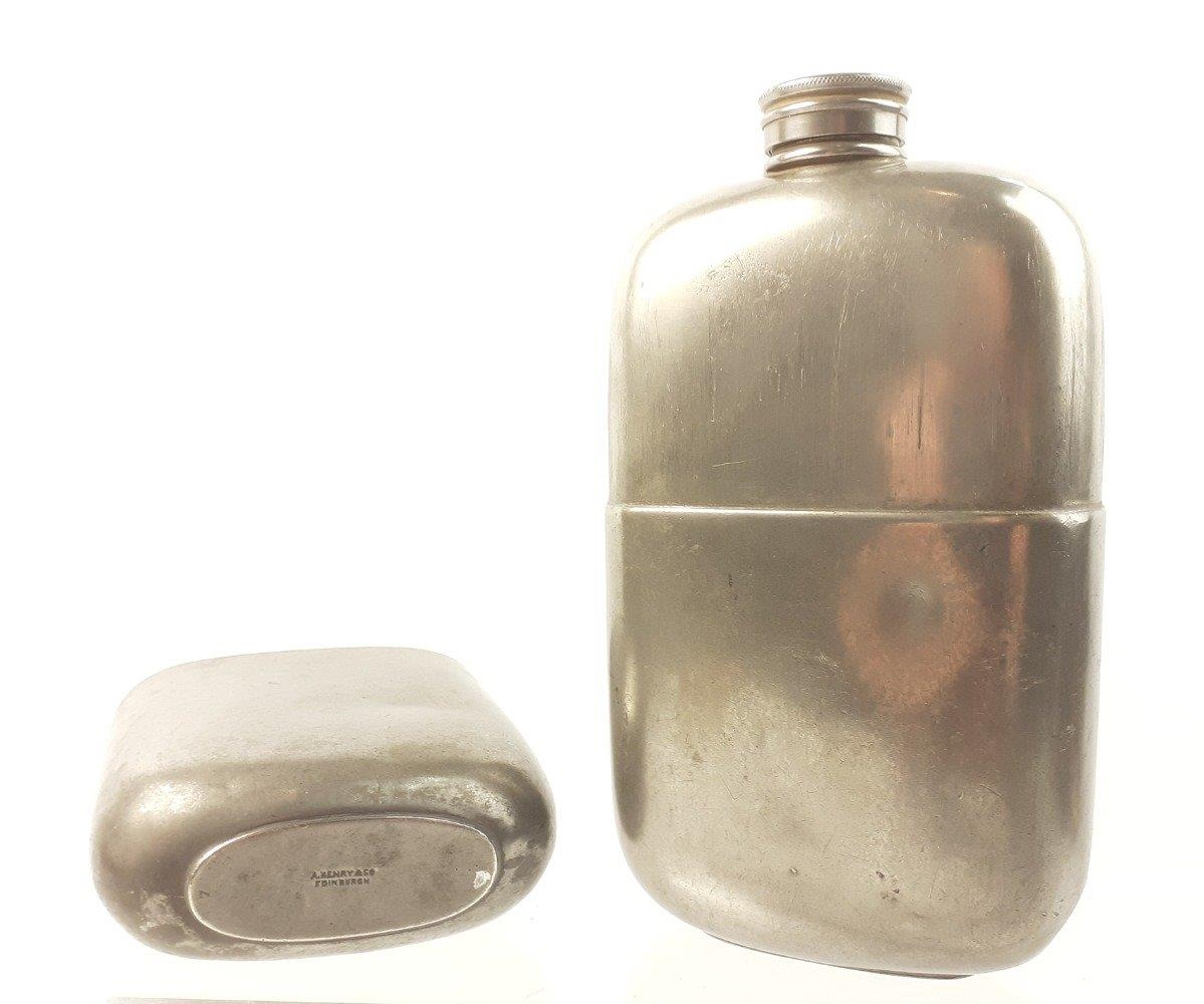 A super substantial pewter flask by A. Henry & Co. of Edinburgh. 18cm and in good useable condition with only minor dents.