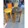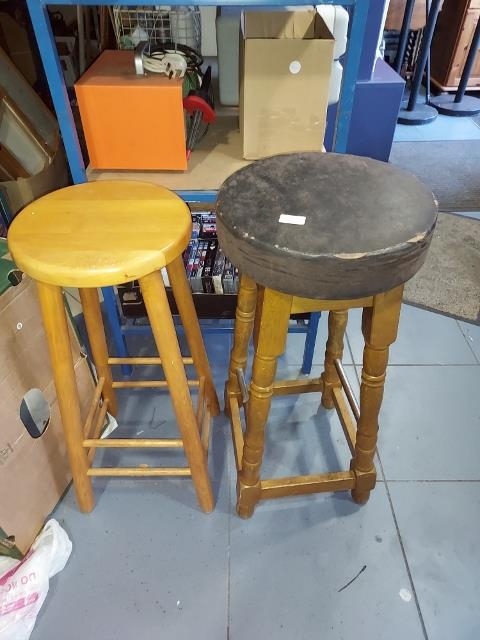 2 Wooden Stools, 1 Upholstered