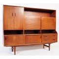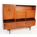 Elliot's of Newbury - A mi 20th century circa 1960s teak EON Elliots of Newbury high board sideboard. The sideboard having twin door cabinets to top raised over a series of cupboards and drawers upon tapering supports.
