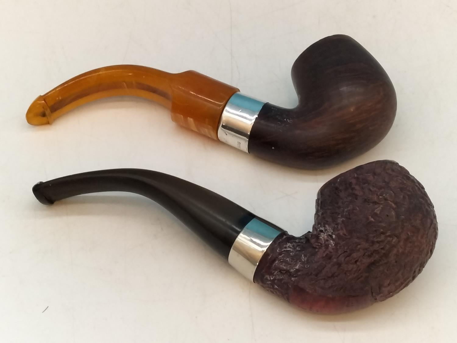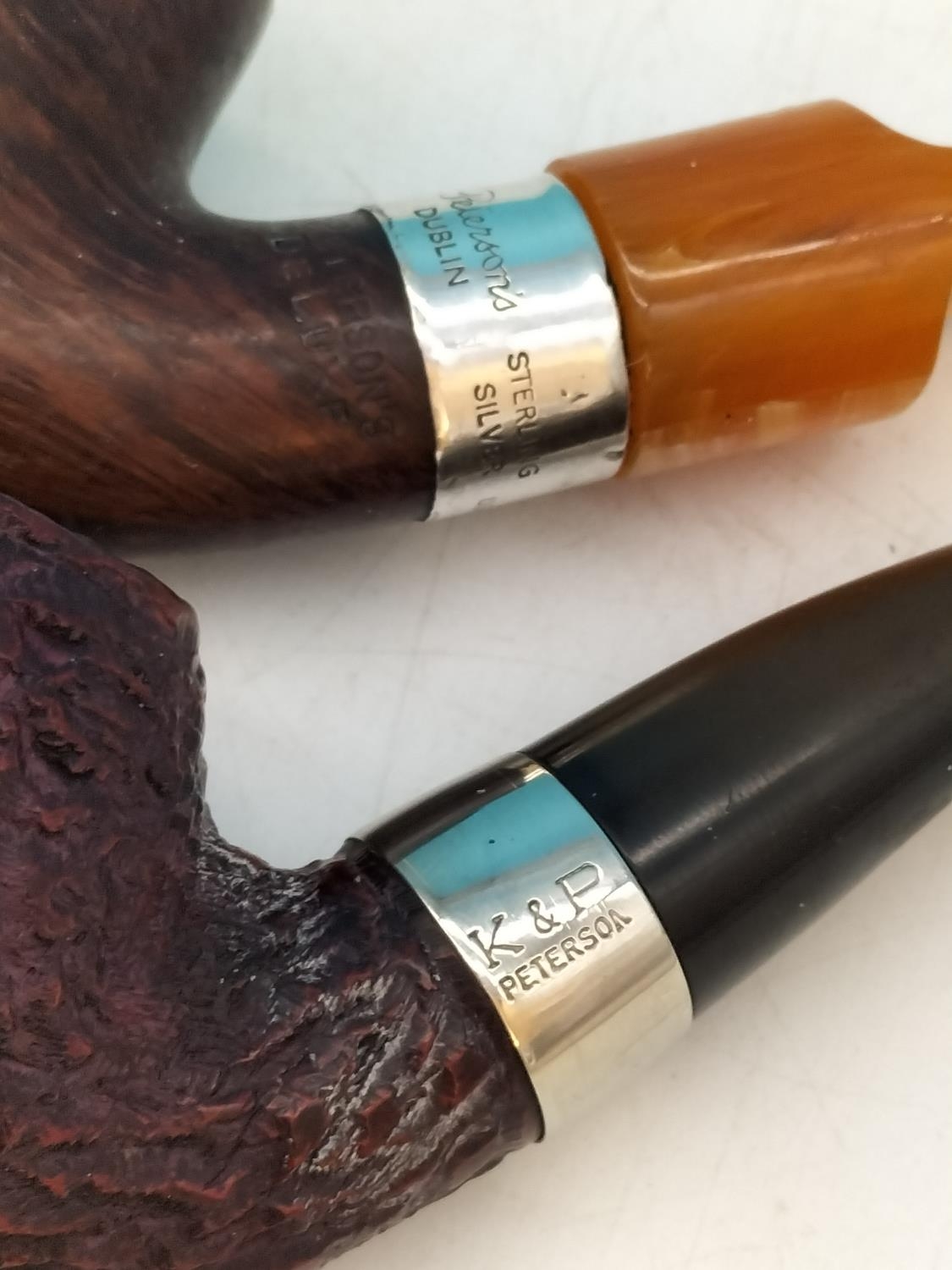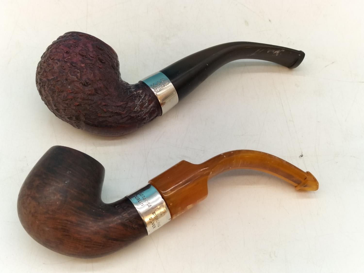 Vintage K.P. Peterson Smoking Pipes (2) - Deluxe 12.5 S with Silver Collar Hallmarked Dublin 1999 plus a Donegal Rock.