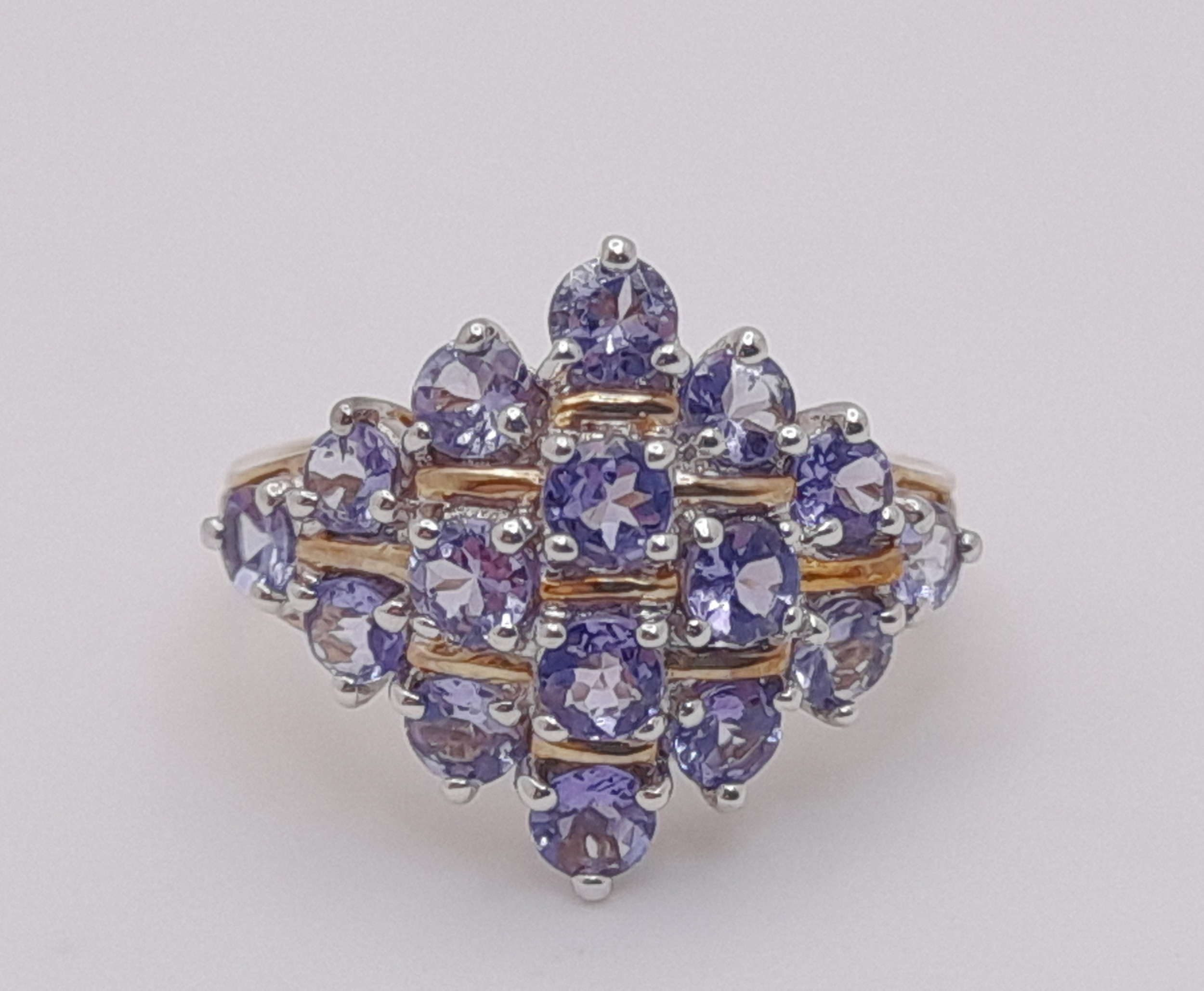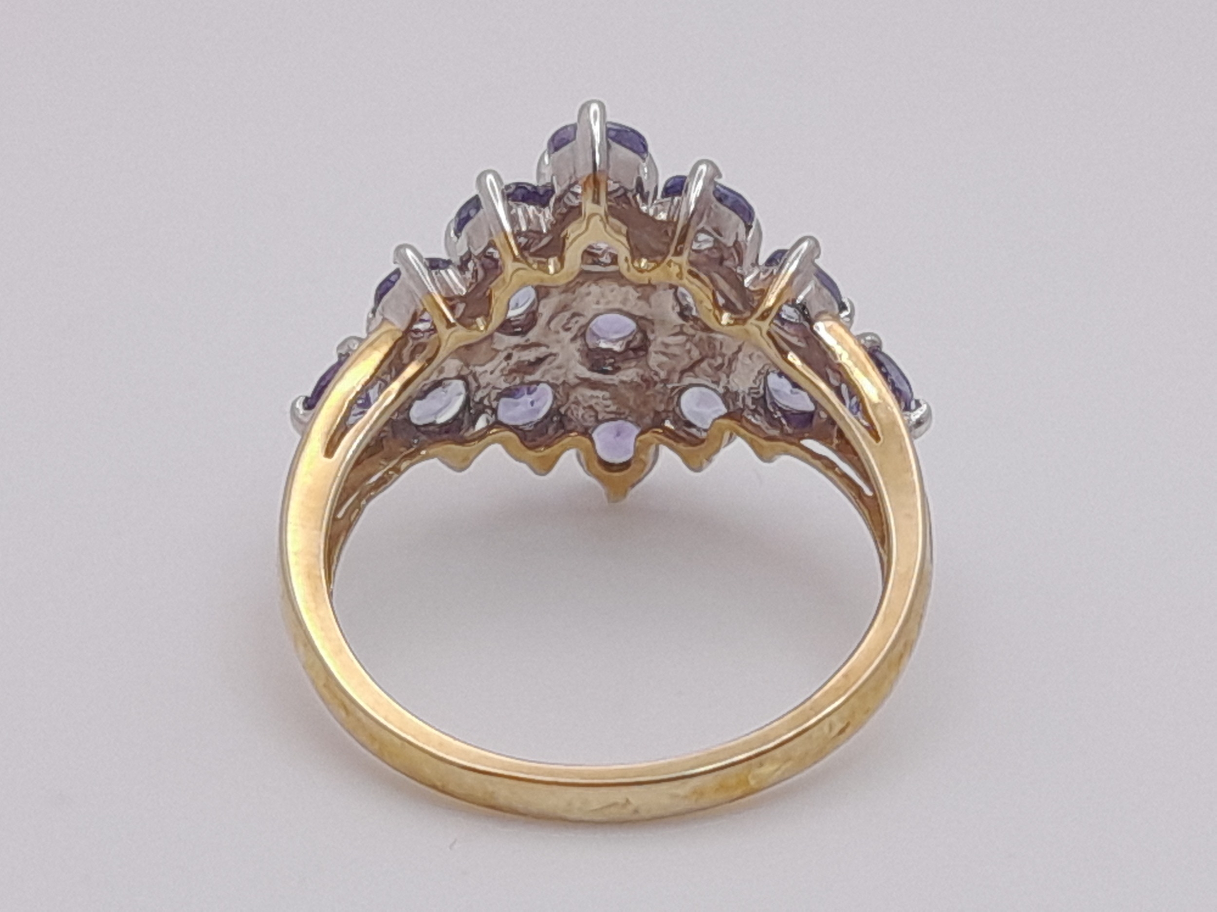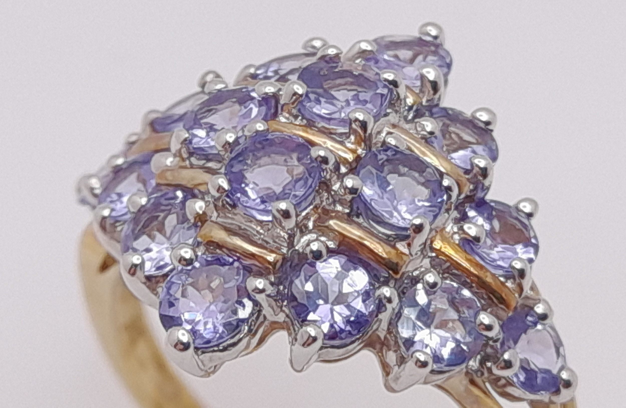 A Beautiful 9 Carat Yellow Gold and Tanzanite Set Cluster Ring Size M. The Ring is set with Sixteen 3mm Round Cut Tanzanites, approximately 2.4 Carats Total. The Ring measures 22 x 13 mm Crown and has a gross weight of 3.64 Grams.