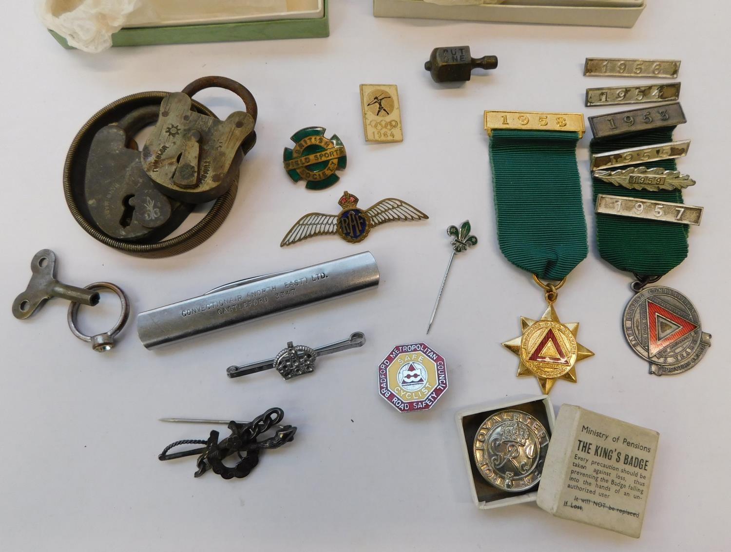 Mixed collection including safety medals, pin badges and sweetheart brooch etc.