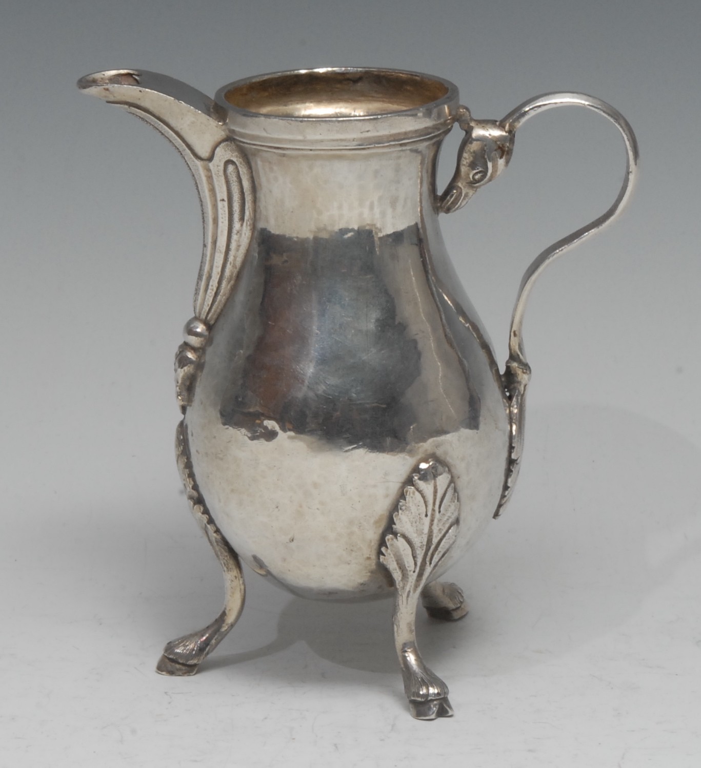 An 18th century Continental silver baluster jug, zoomorphic scroll handle, hoof feet, 13cm high, c.1780, 7.5oz