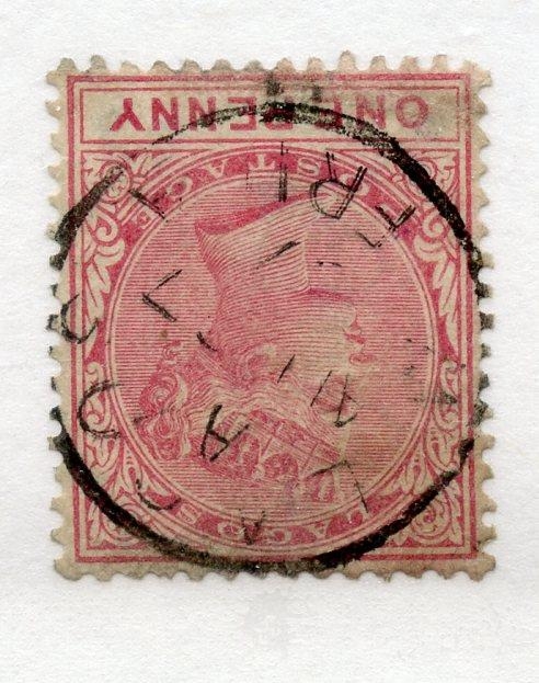 LAGOS 1884 - 86 1d rose carmine wmk inverted cds used, odd fault. SG 22w. Cat £150,