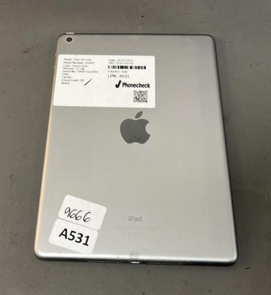APPLE IPAD 6TH GEN/ A1893/ SPACE GRAY/ 32GB/ I-CLOUD UNLOCKED/ IMEI: F9FW716CJF8J