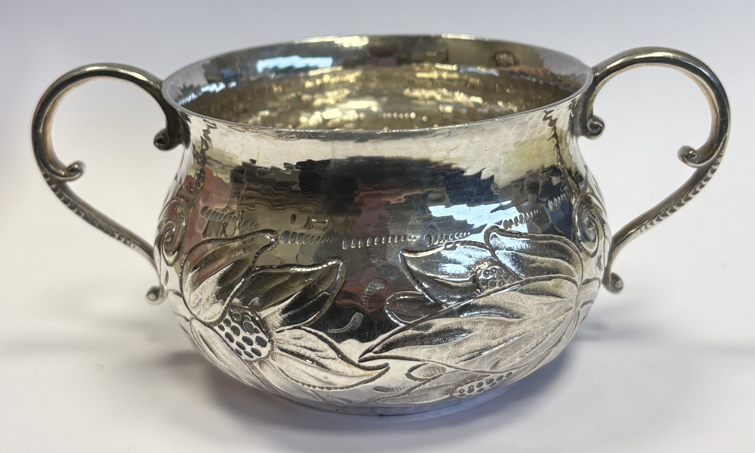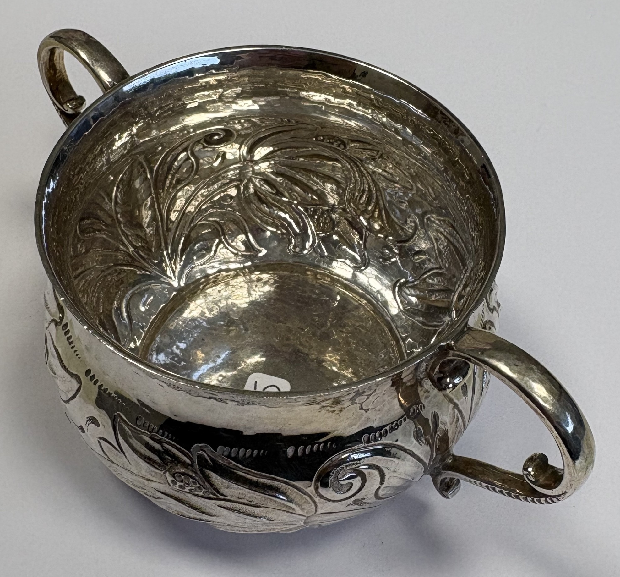 A stylish silver sugar bowl with floral decoration. Approx. 128 grams. Est. £100 - £150.