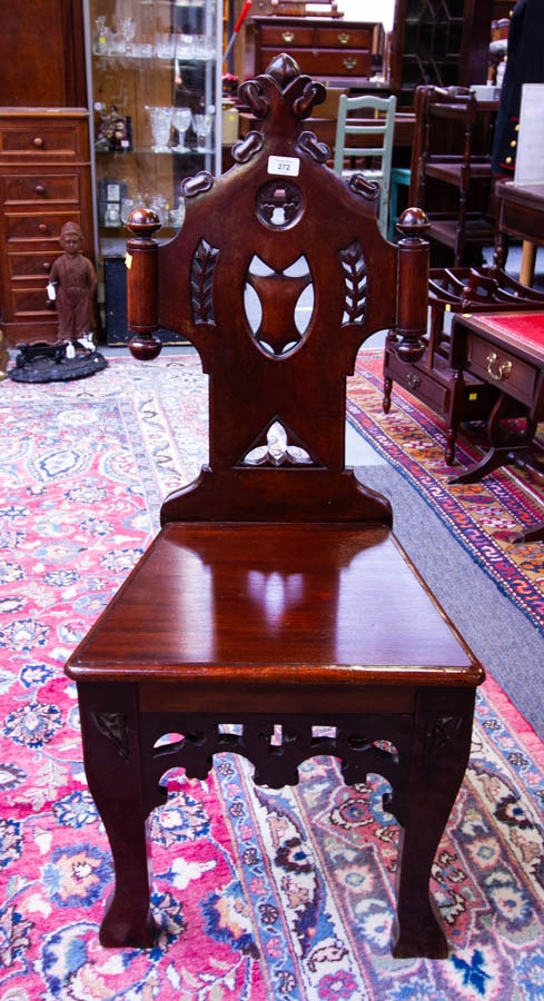 ORNATE VICTORIAN MAHOGANY HALL CHAIR