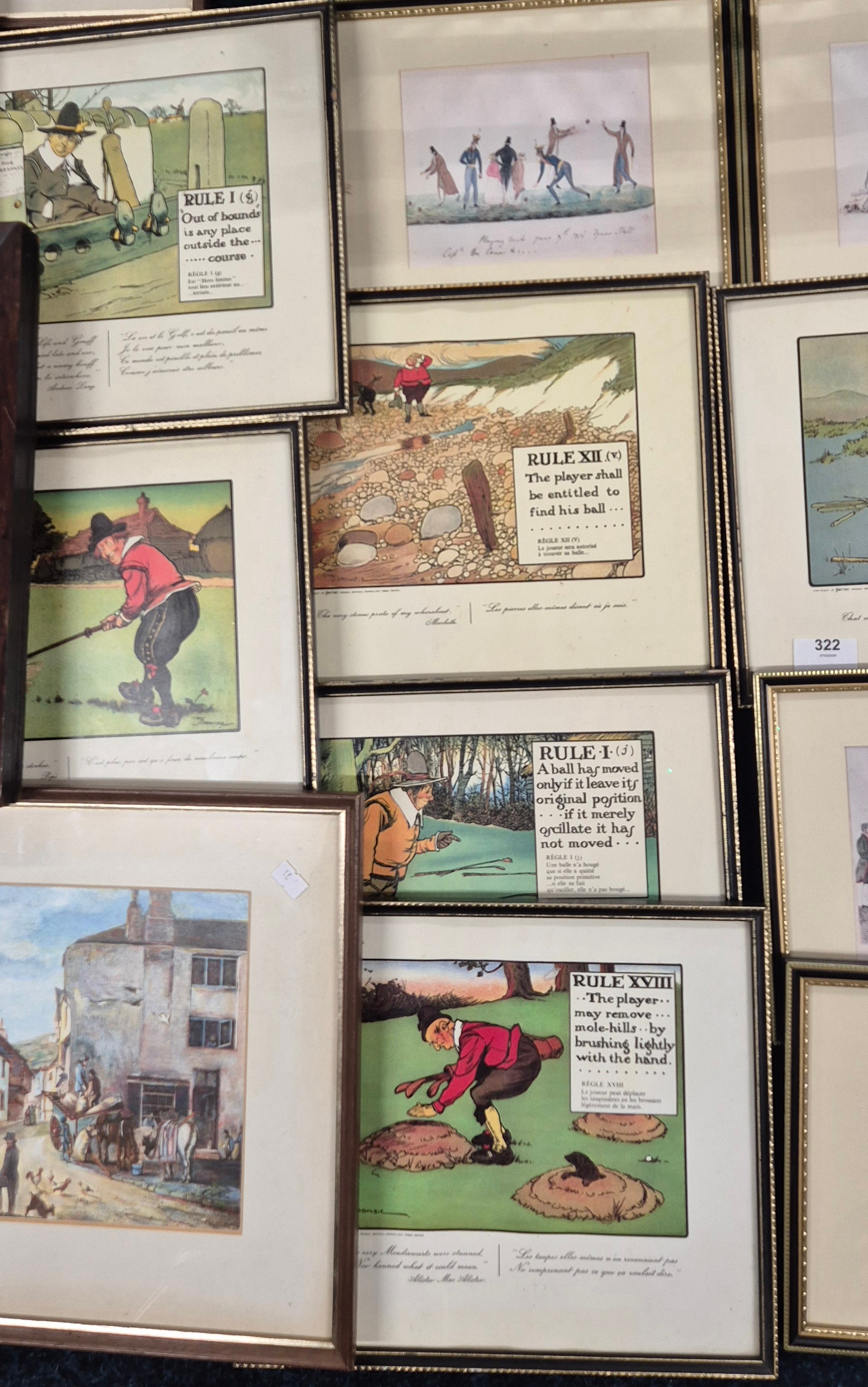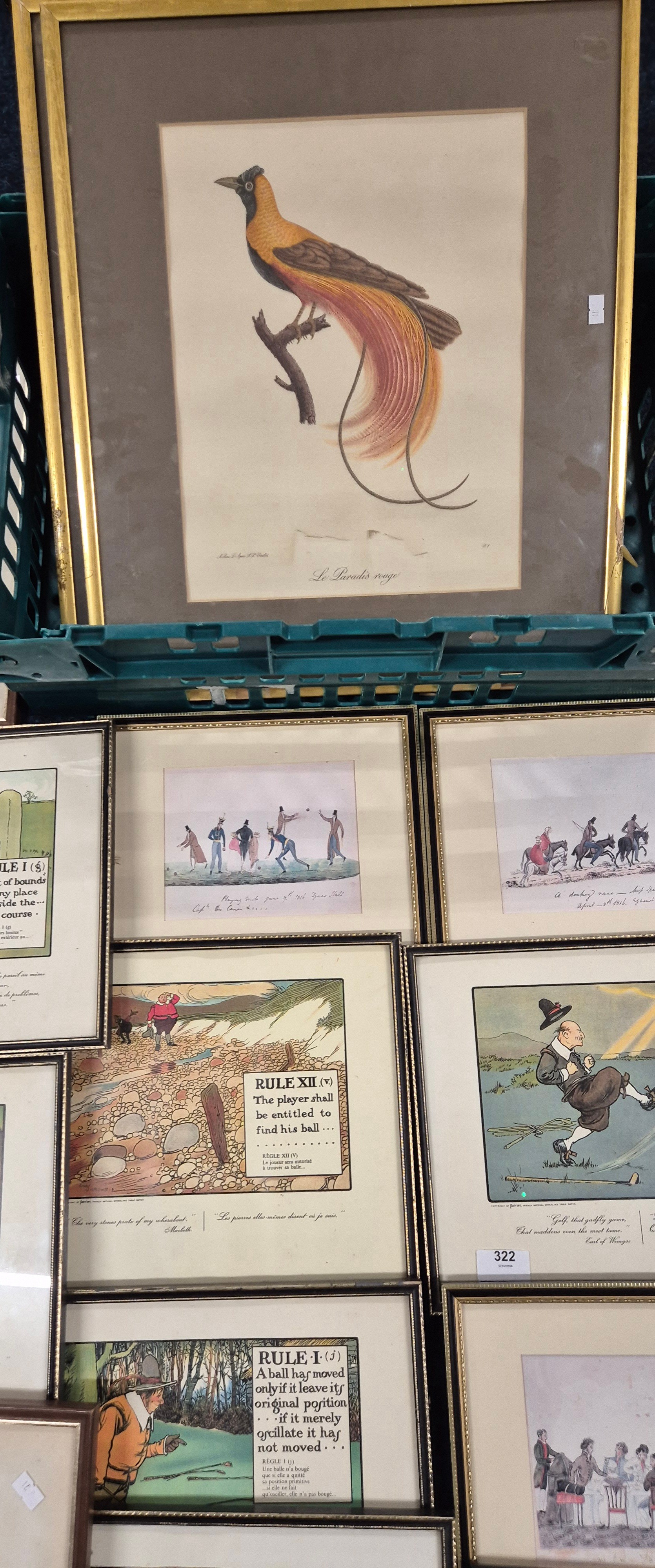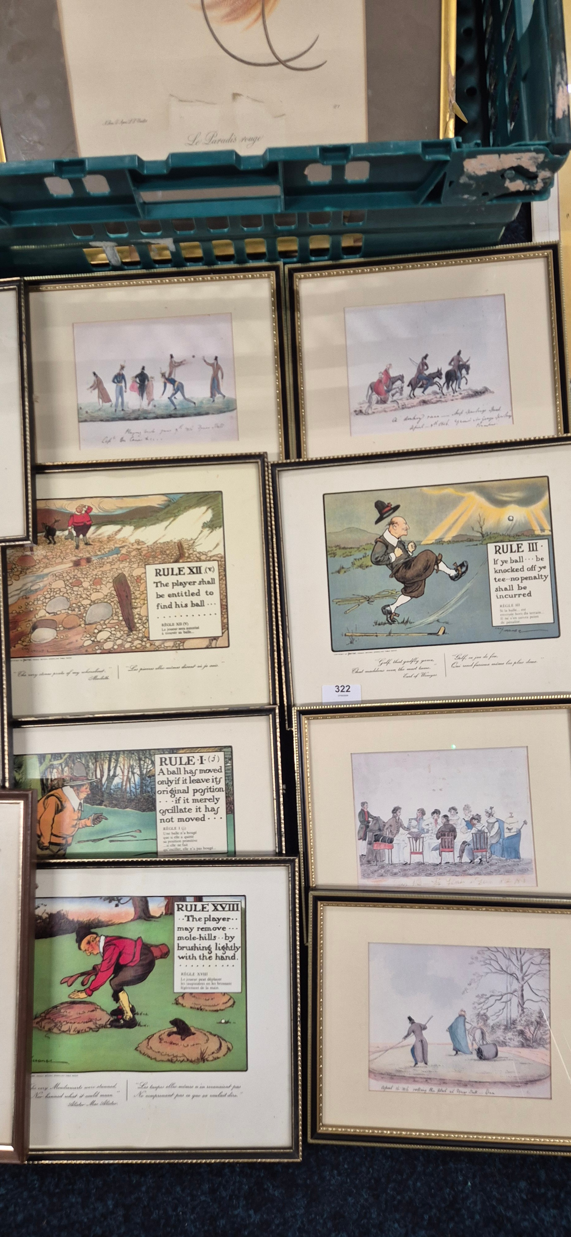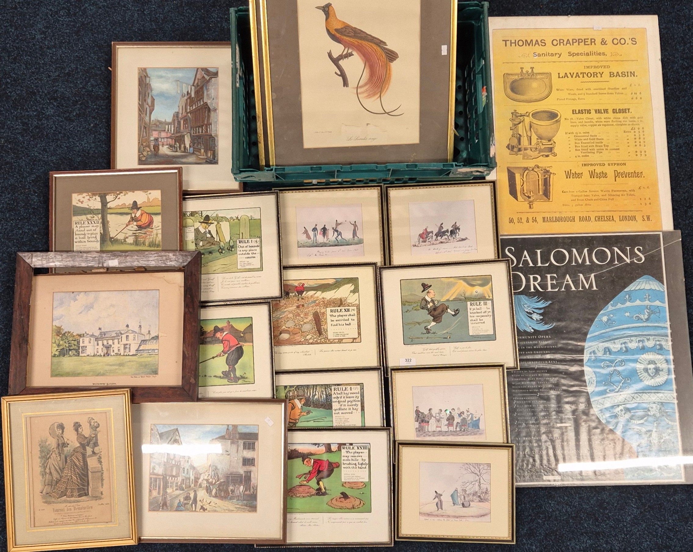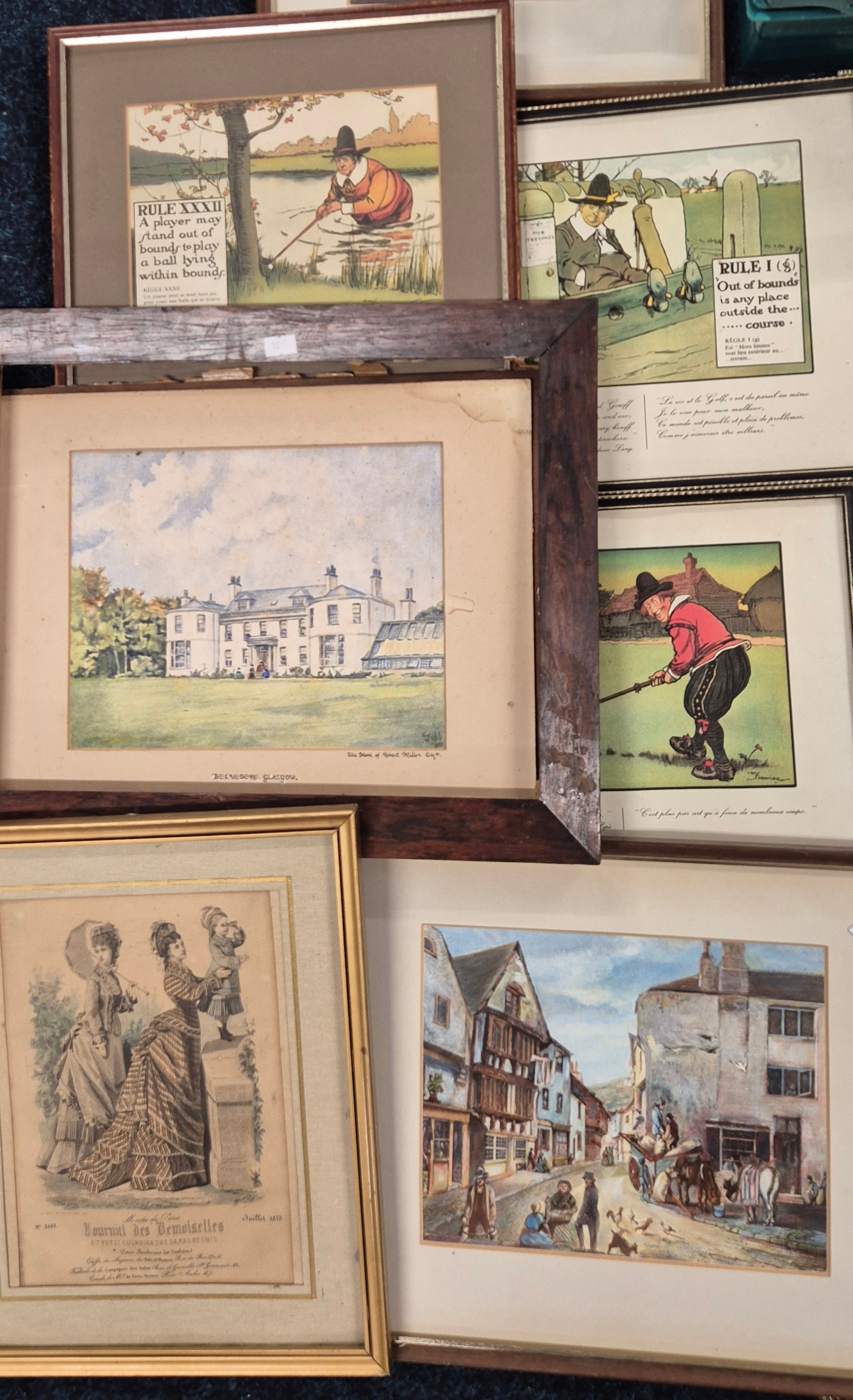 Collection of Artworks; Eleven Cartoon humour Sporting & Victorian scenes prints after Chas Crombie, together with two vintage Advertising pictures & many more.