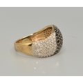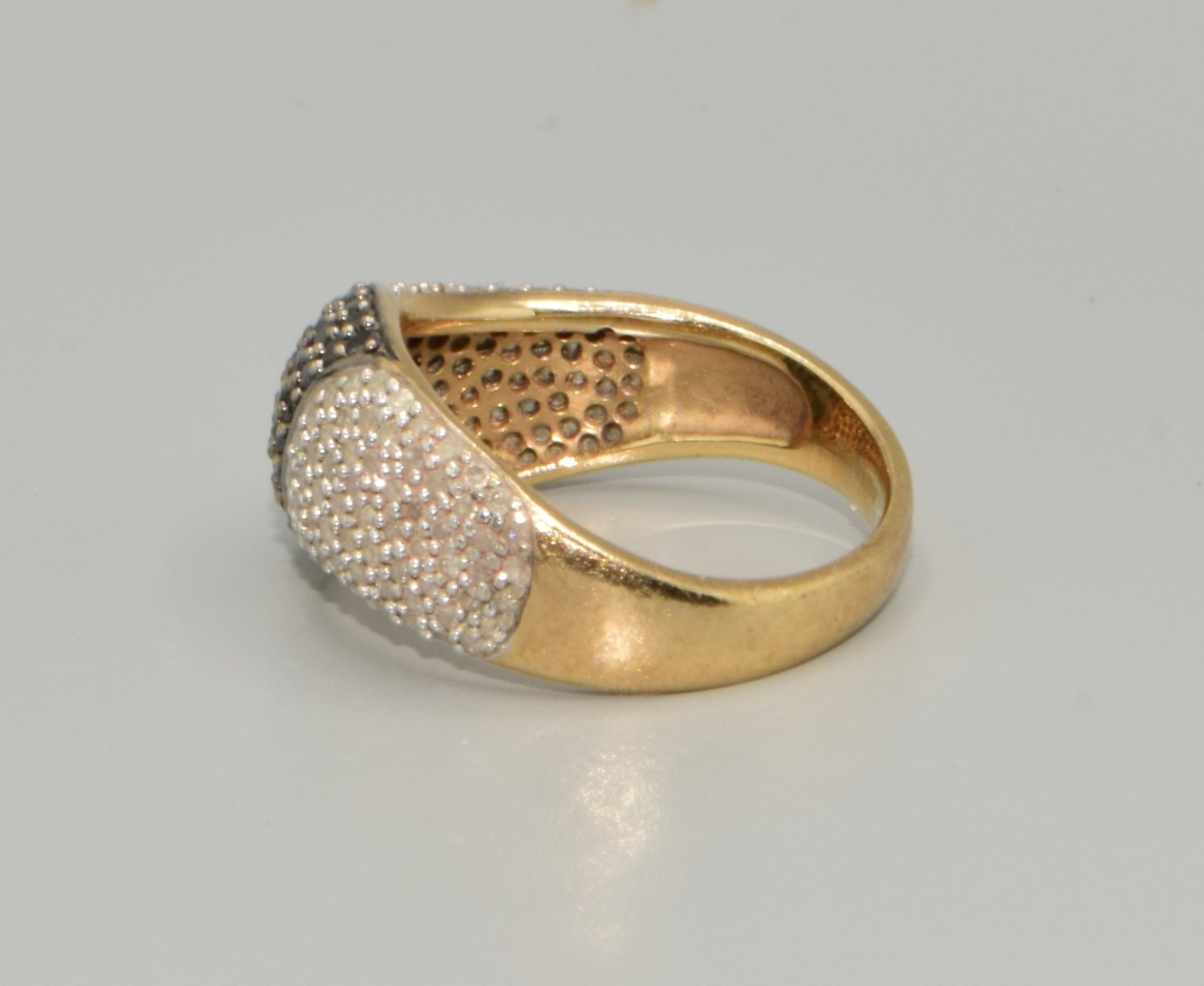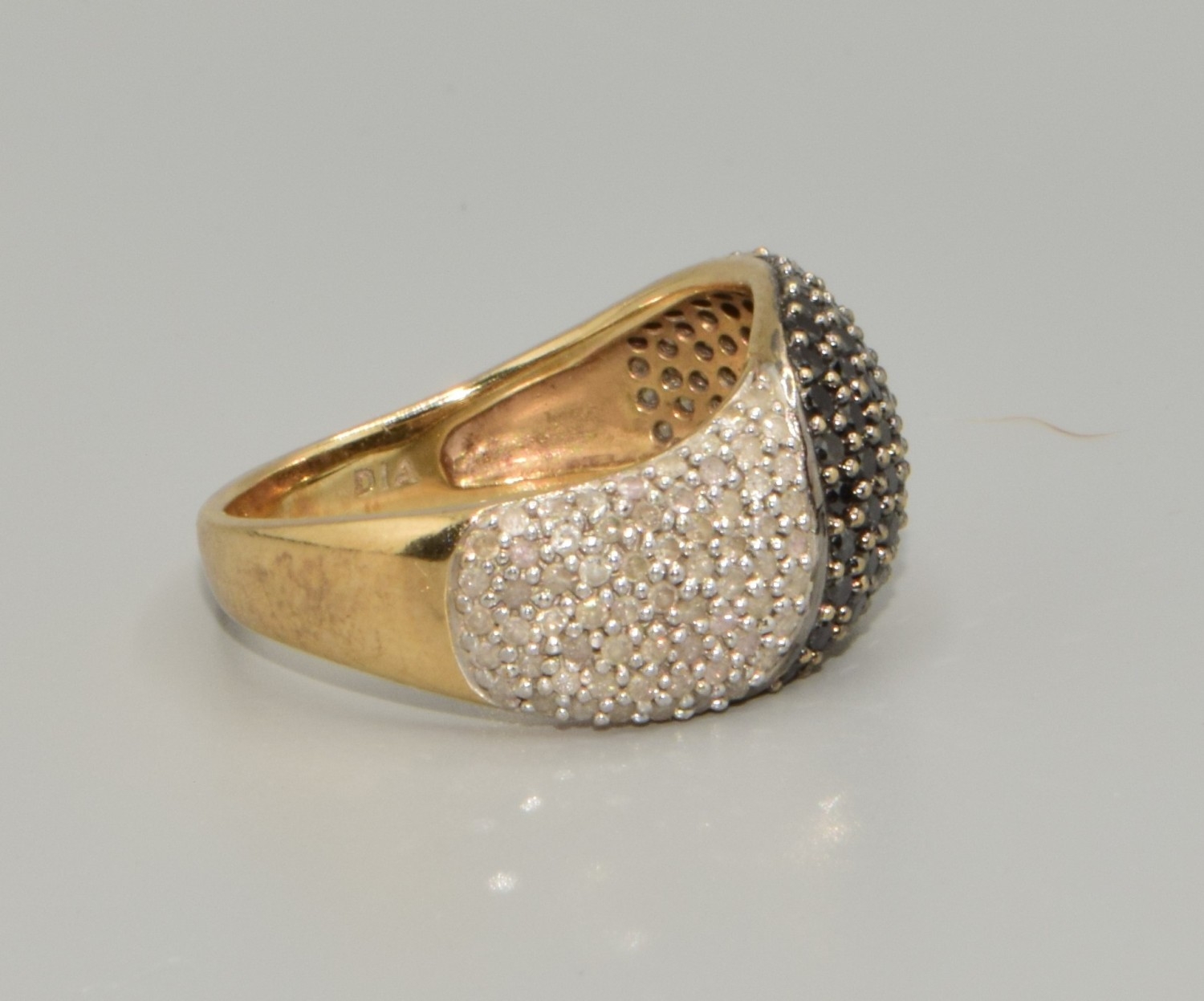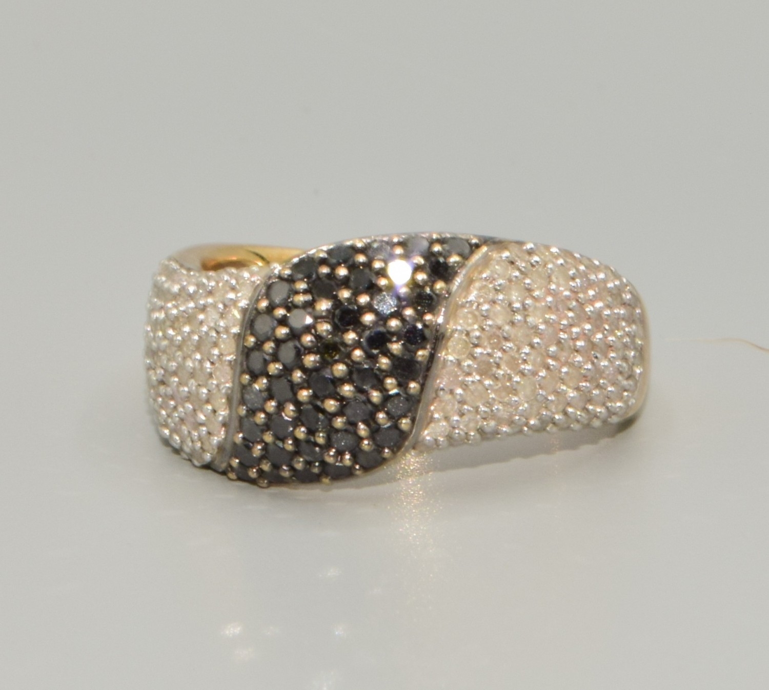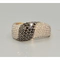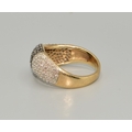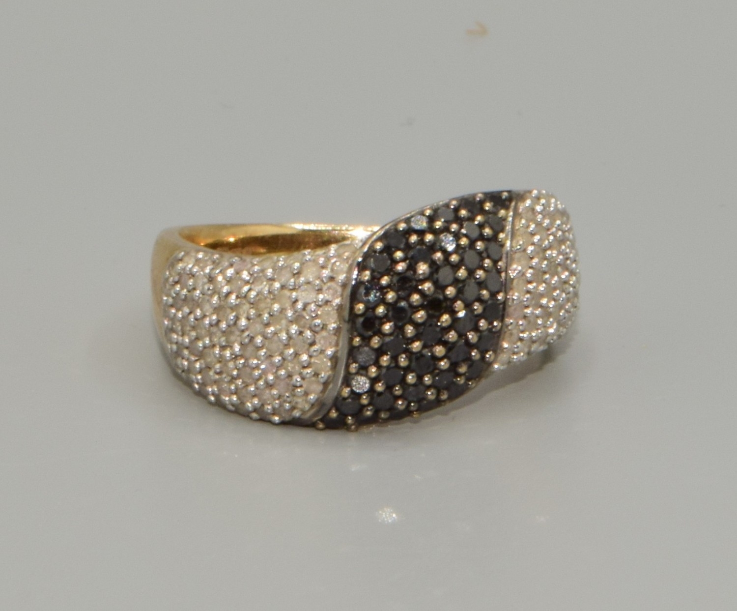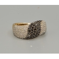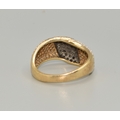 9ct gold ladies Twin colour Diamond statement ring in a wave pattern hall marked as Diamond size P, 4.5grams