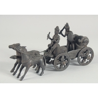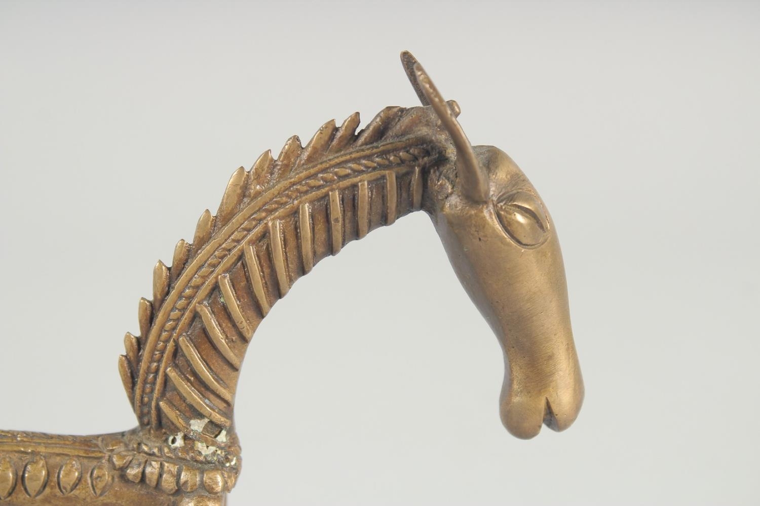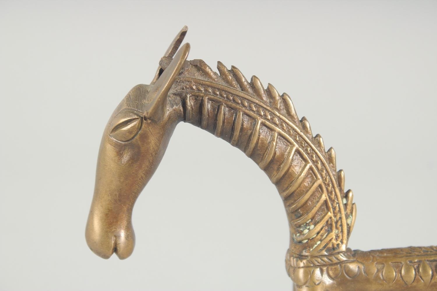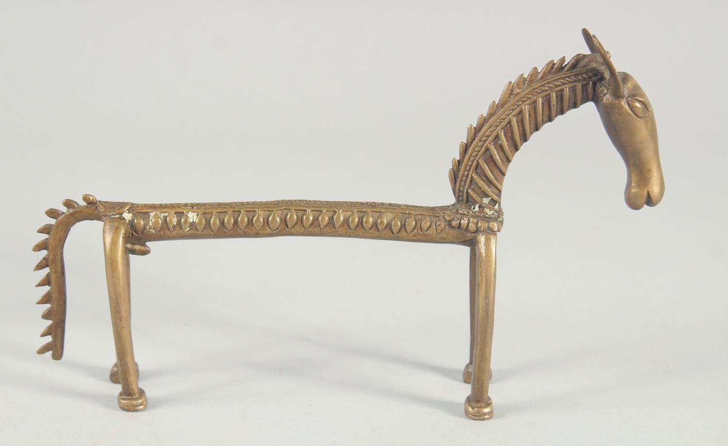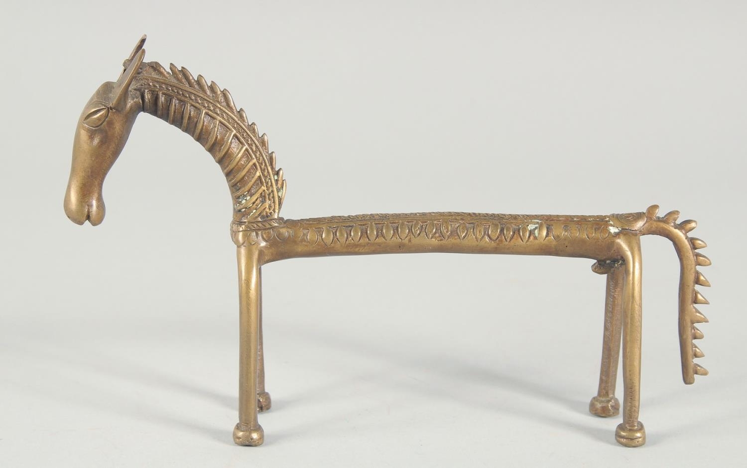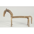 AN ISLAMIC BRASS FIGURE OF A STYLISED HORSE, 24.5cm long.