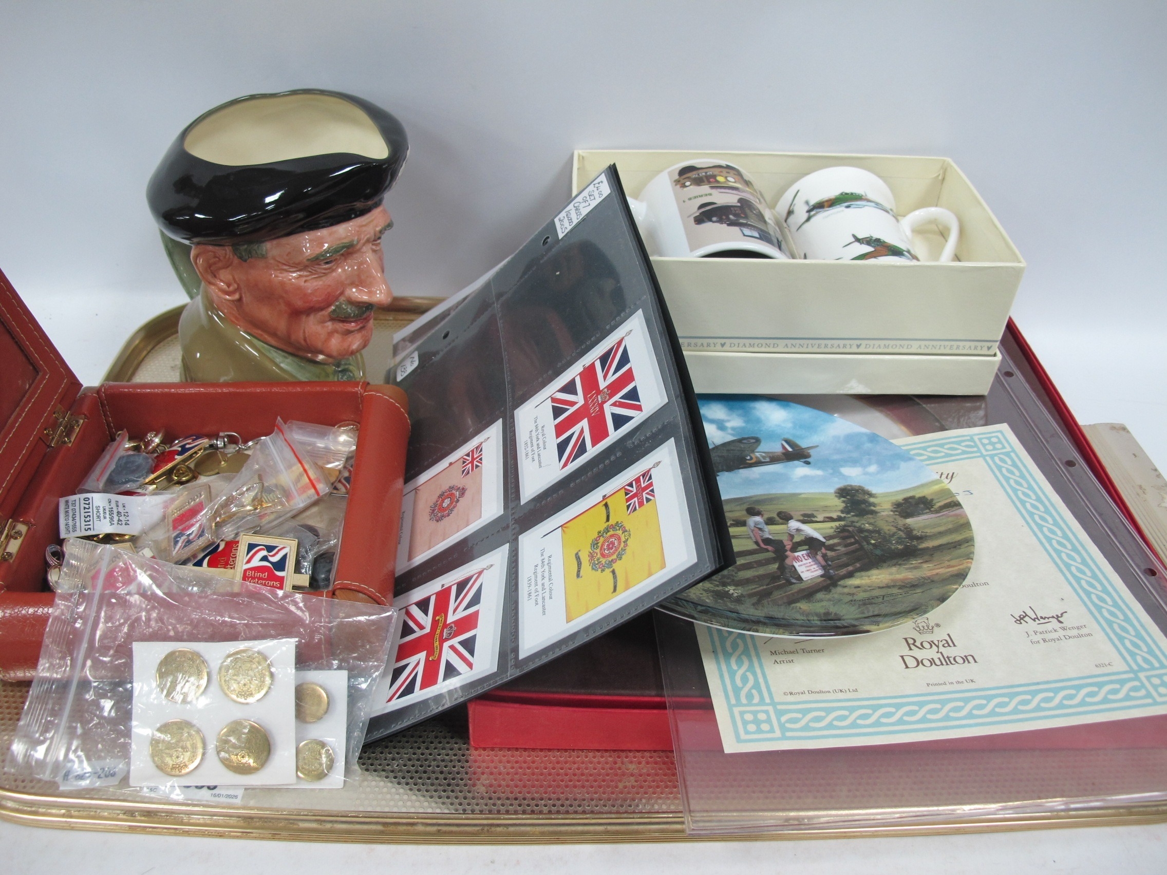 Spode Yorks-Lancaster Plate, boxed Royal Doulton Monty Jug, stamps, etc:- One Tray.