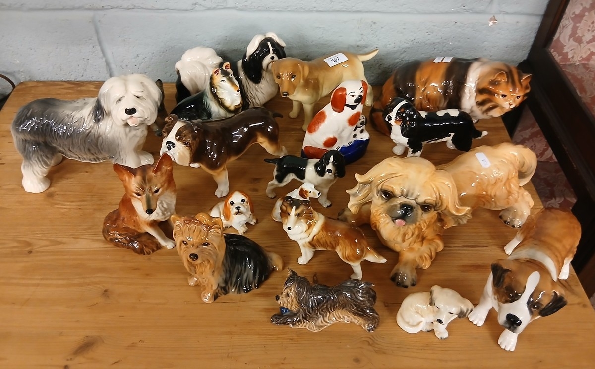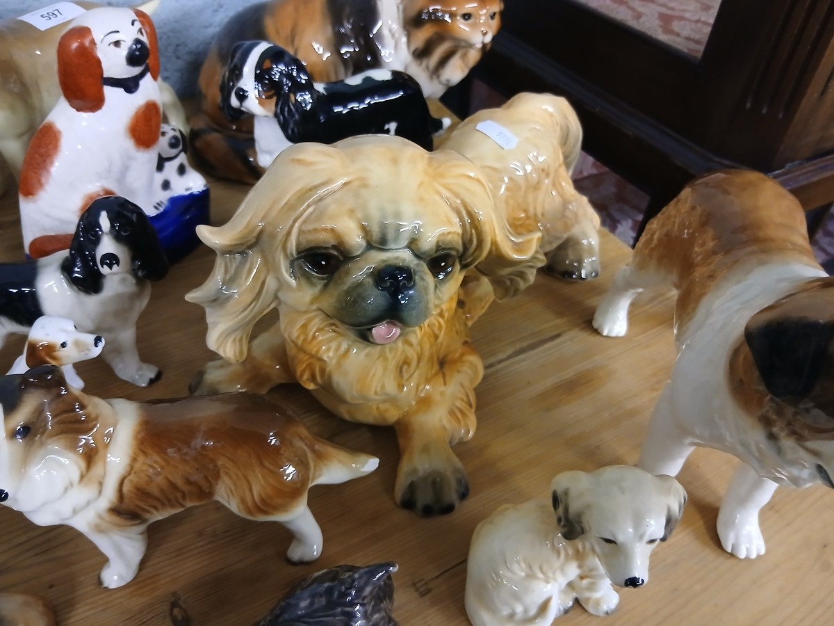 Large collection of ceramic dog figures to include Beswick a...
