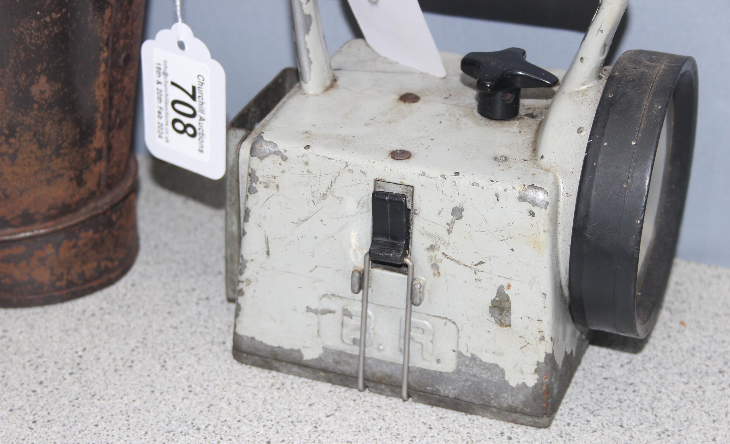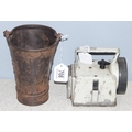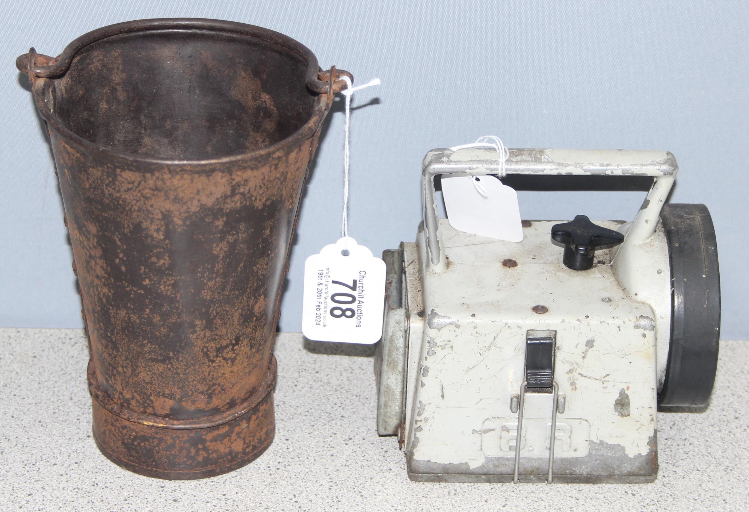 Vintage British Railways transportation lamp and a small metal bucket