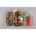 A box of pre decimal coins. Including British, crowns, three pence, Australia, etc. 2.7kg.
