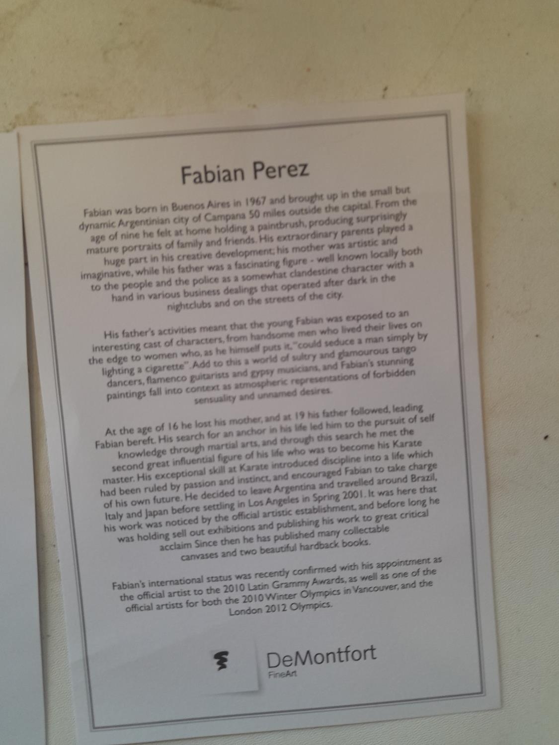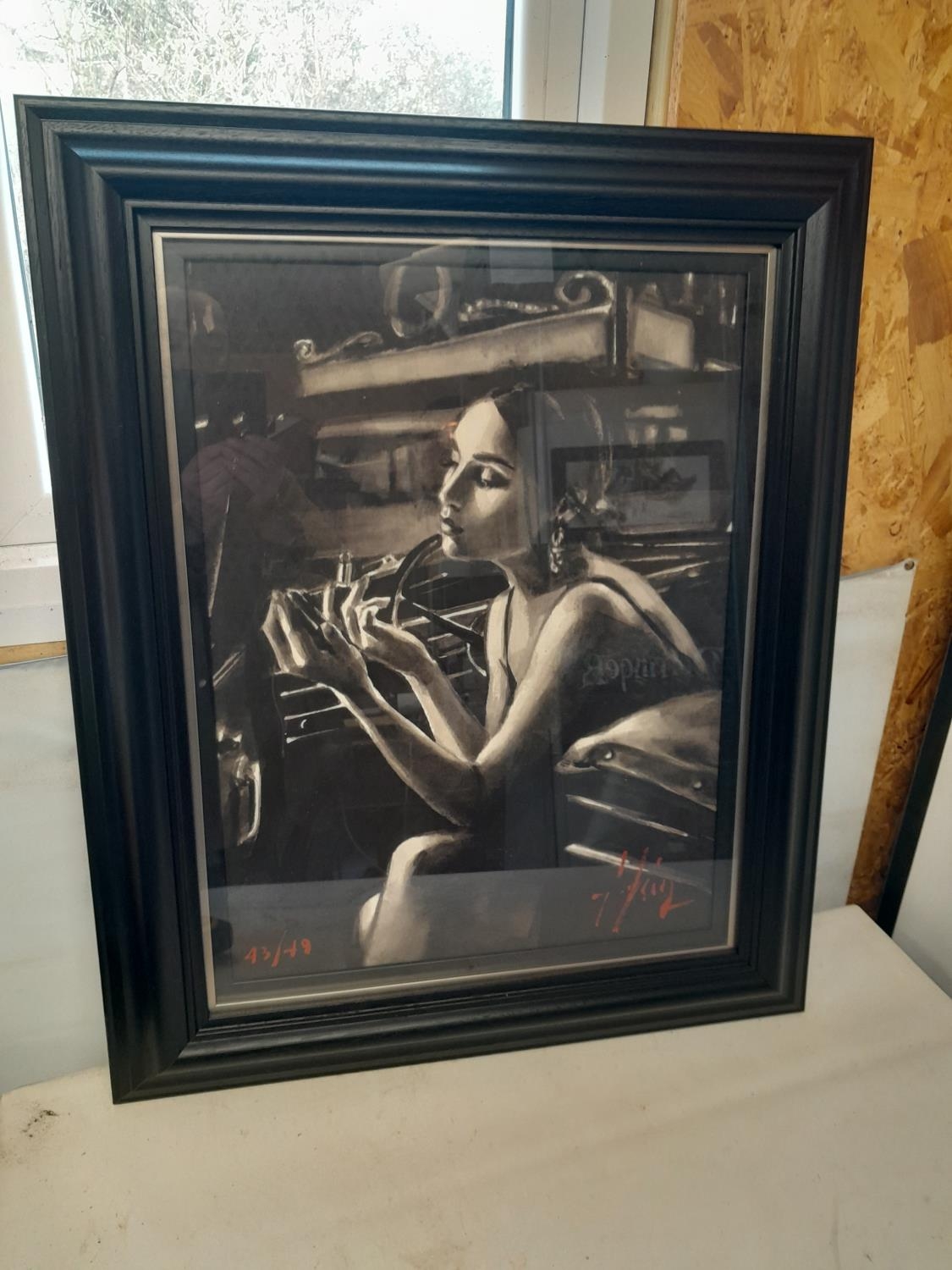Fabian Perez, Dayra in Car Park with Lipstick, limited edition giclée black and white print 43 / 49, signed and COA verso, distributed by DeMontfort Fine Art, with dated dedication on reverse, framed and glazed overall measurements including frame 82 cms x 67 cms, print measures 59 cms x 54 cms