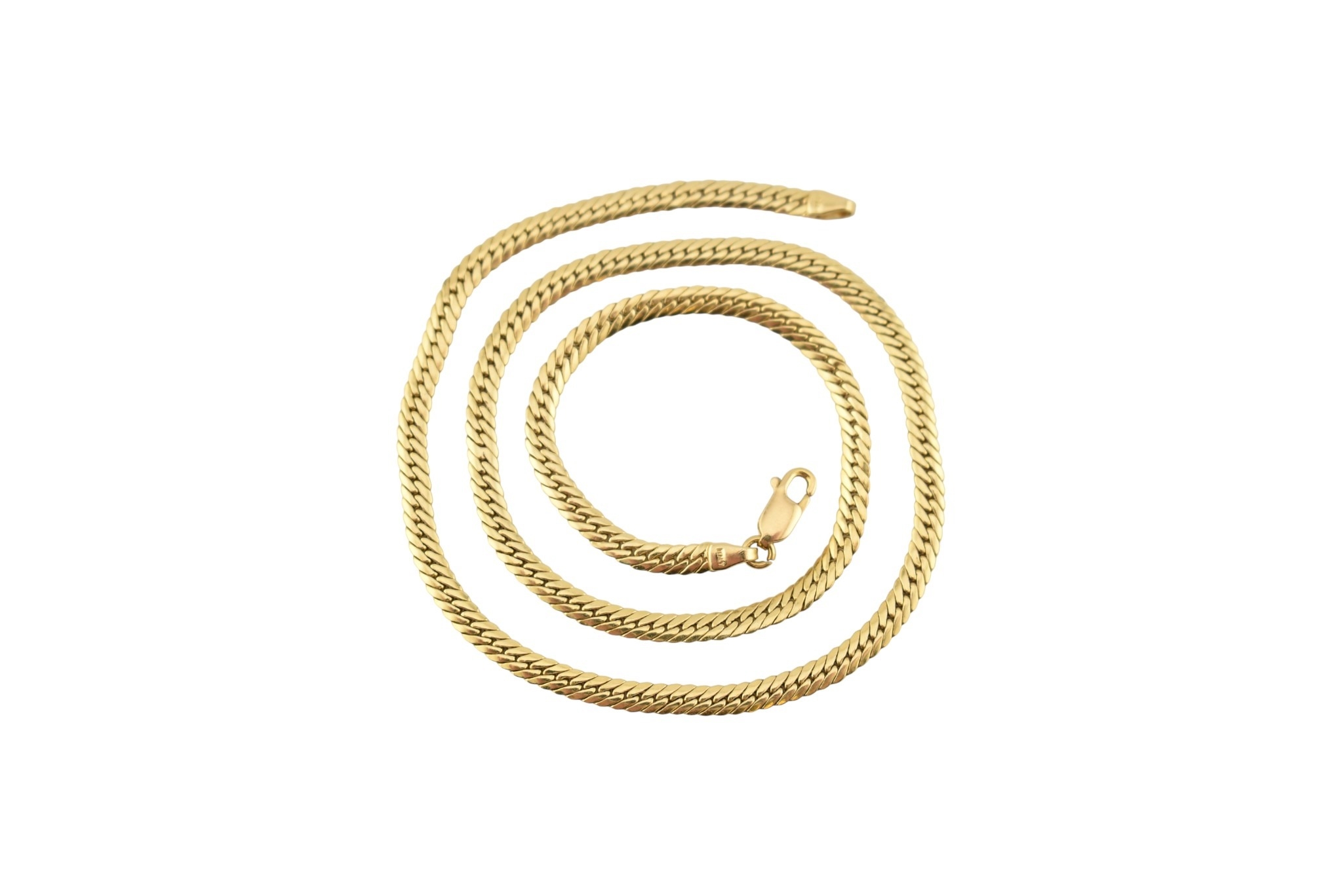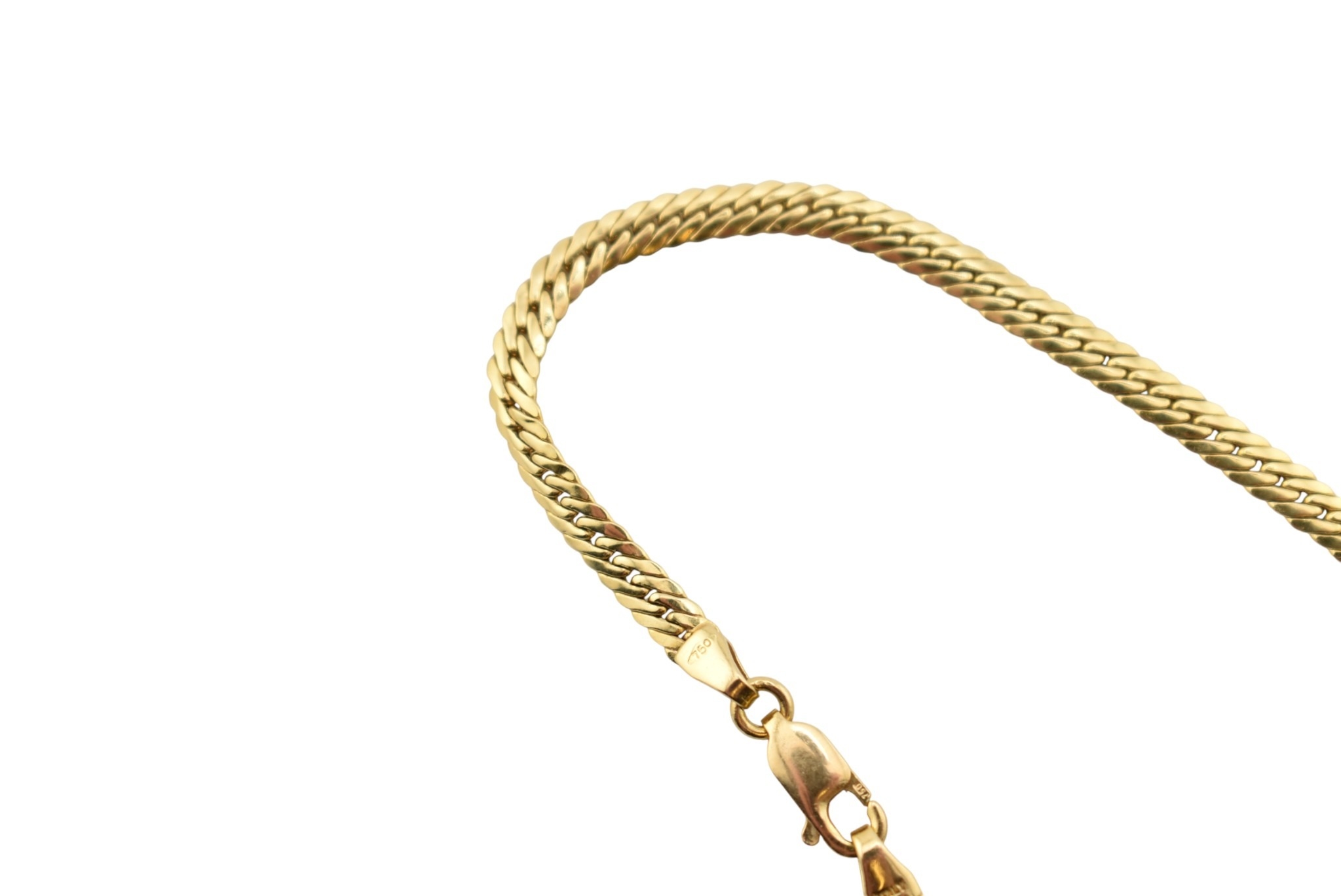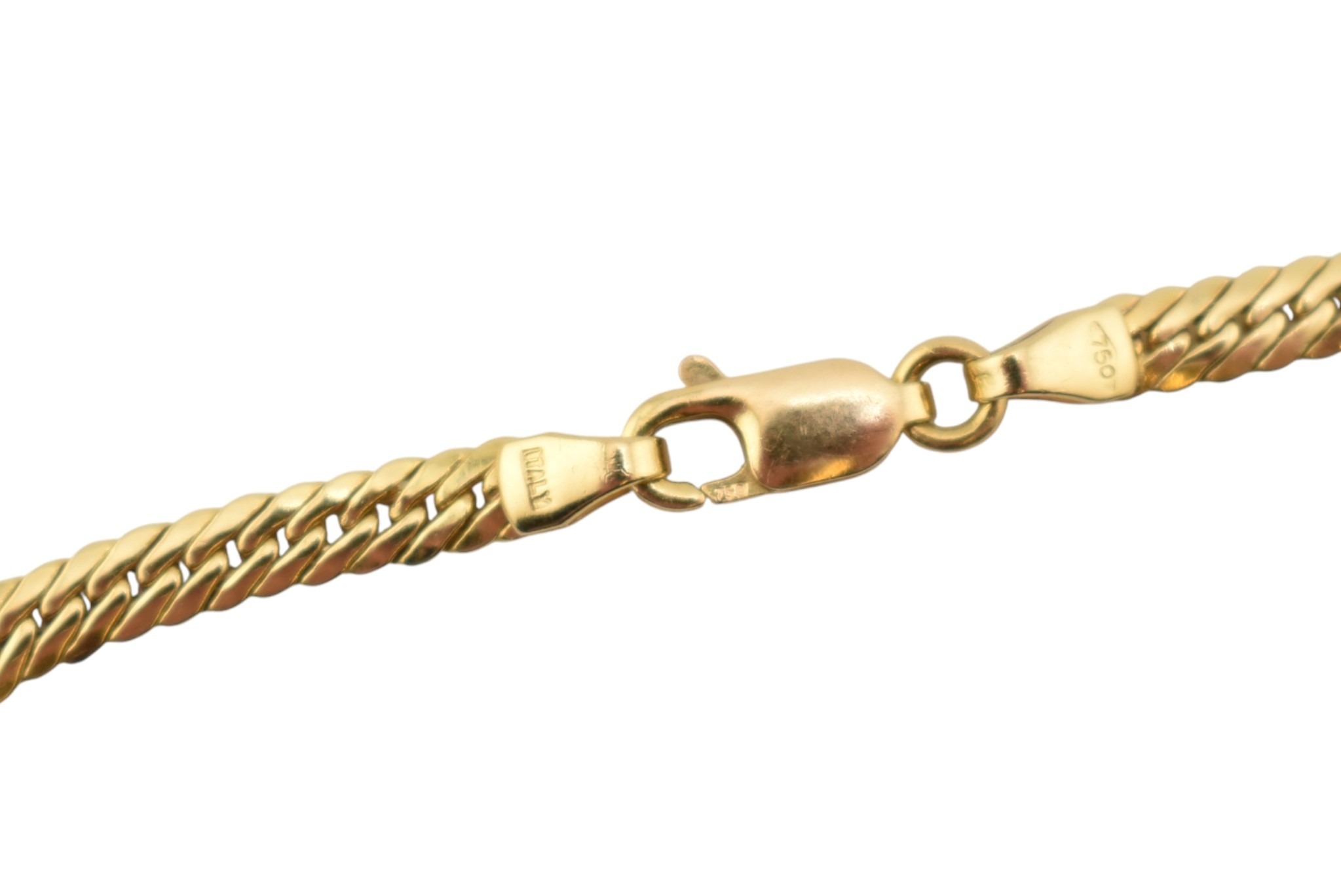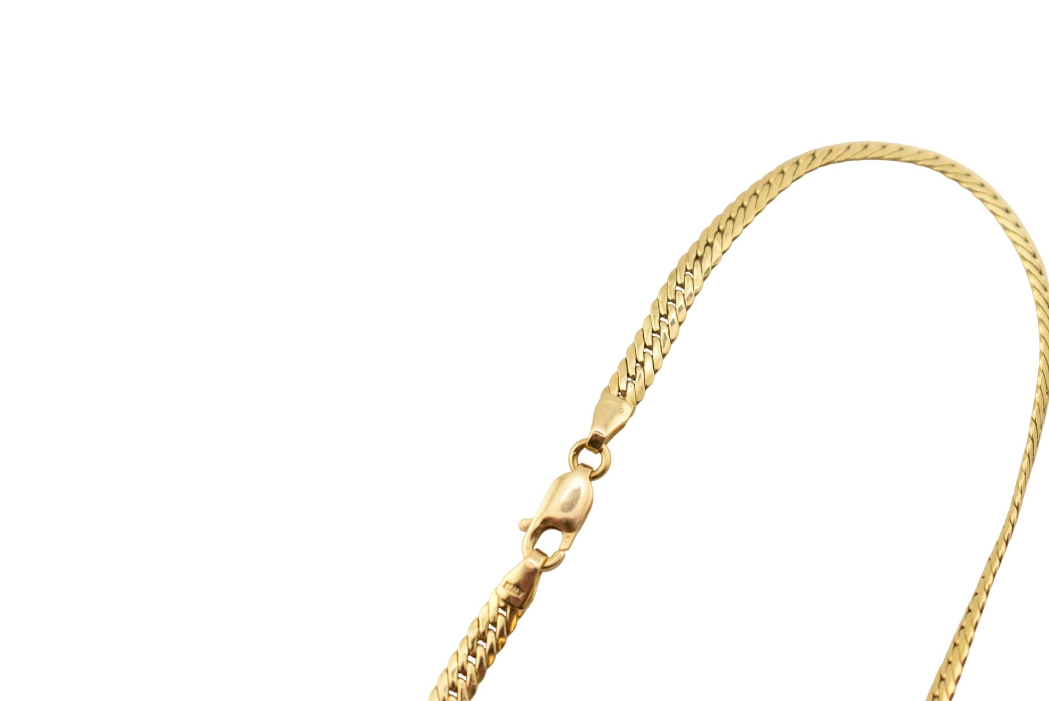 An 18ct gold flat link Franco chain necklace with lobster claw clasp. Marked Italy 750 within a diamond lozenge. Weight 6.9g.Measures 40.5cm.