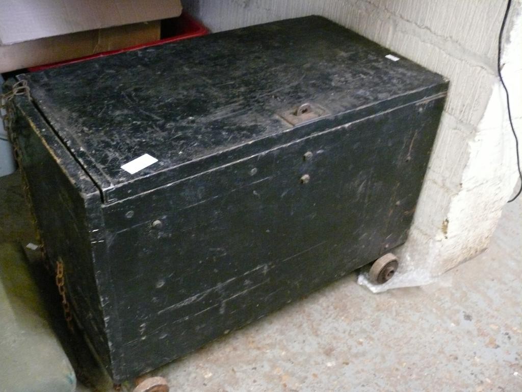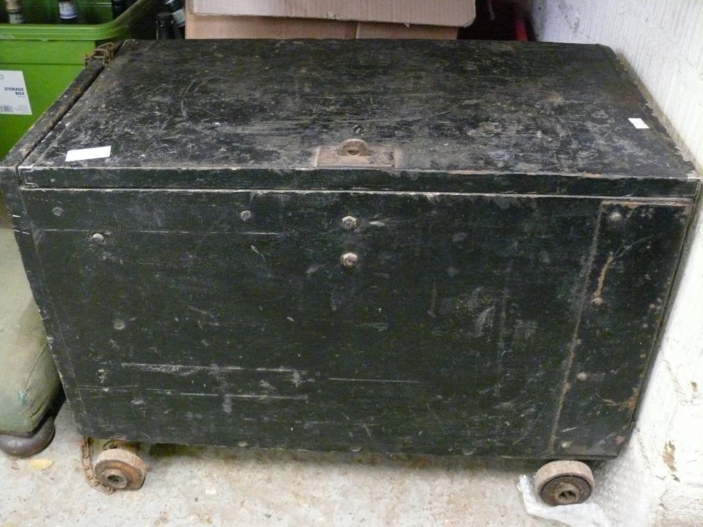 VINTAGE WOODEN BOX ON WHEELS