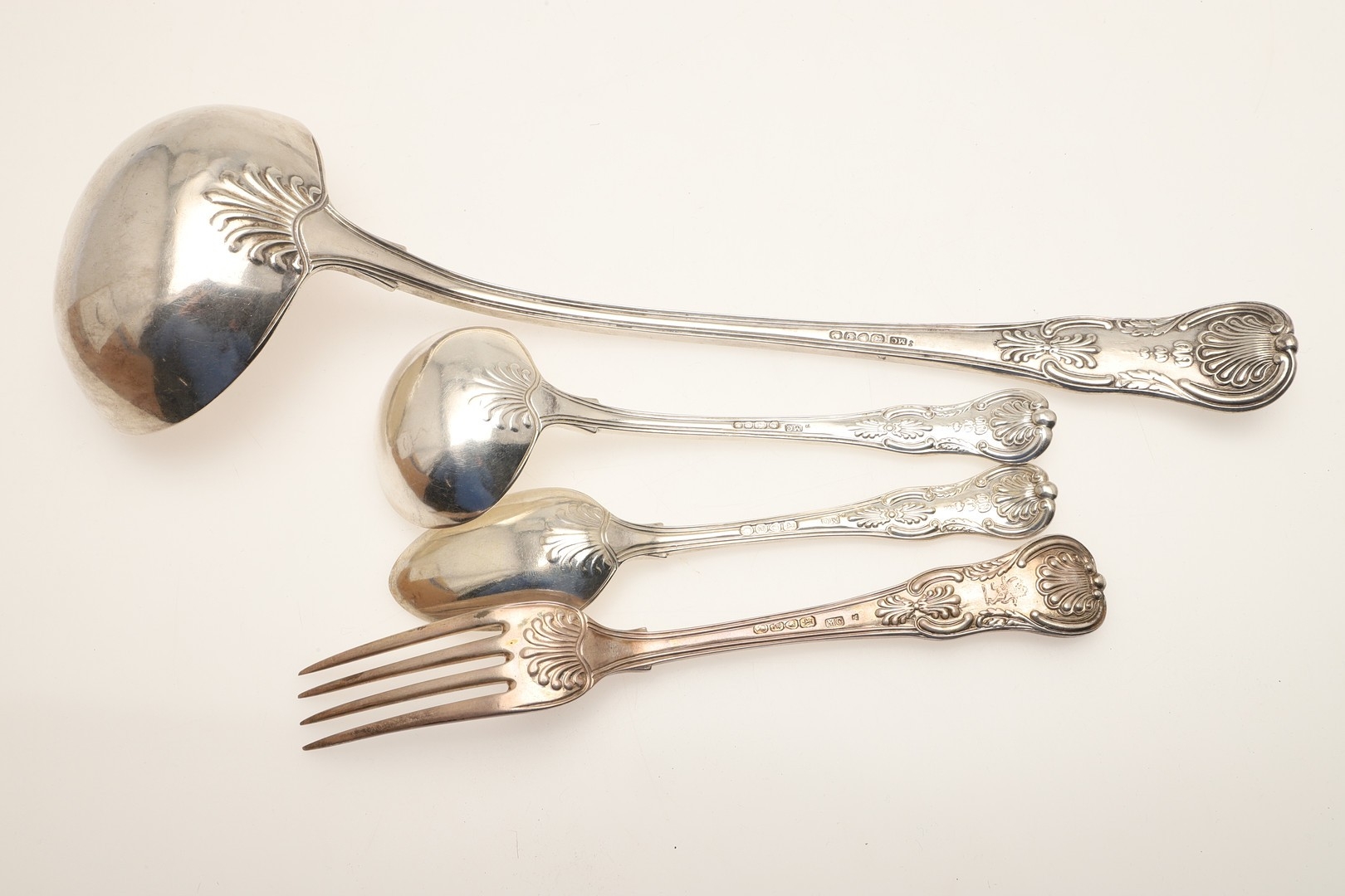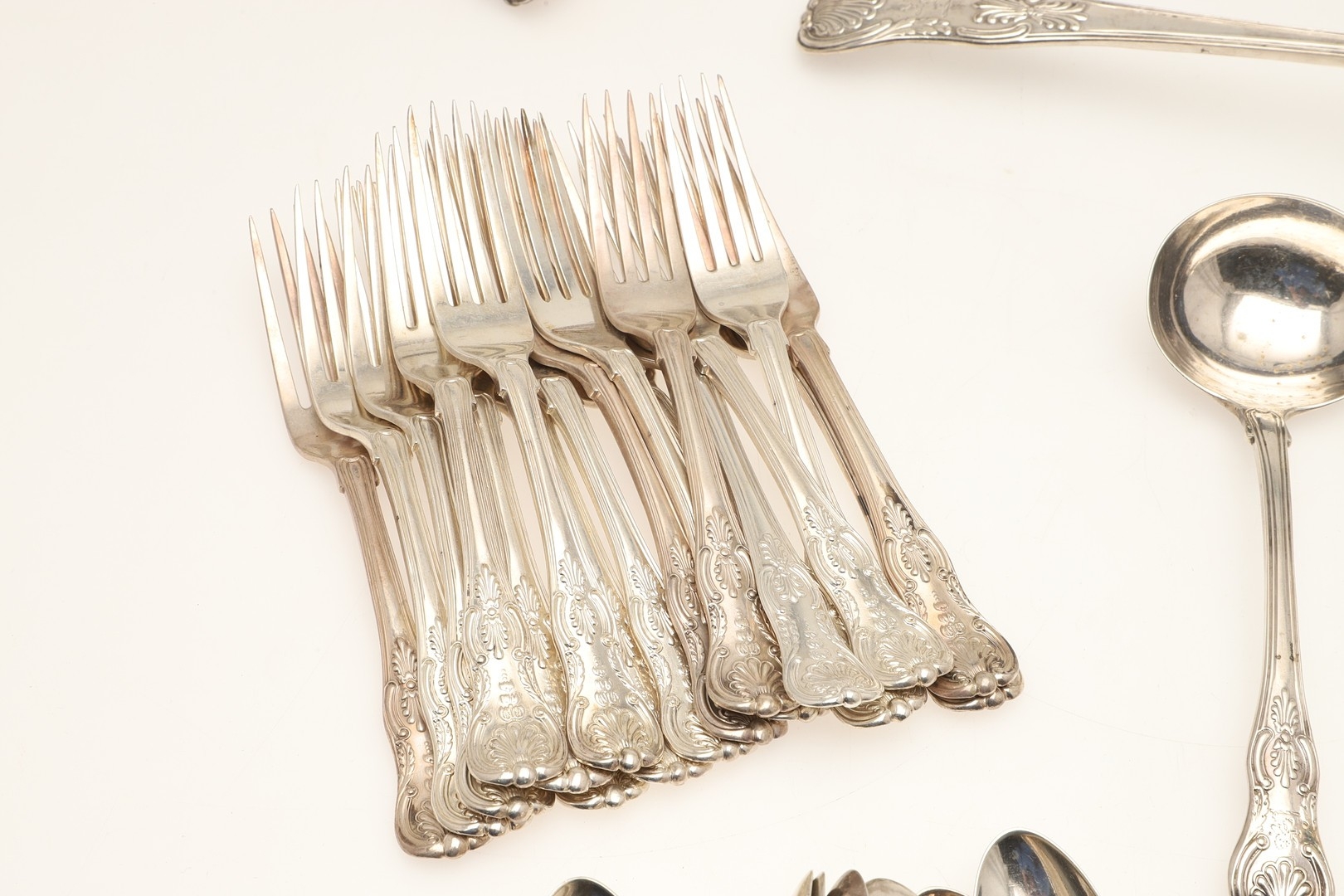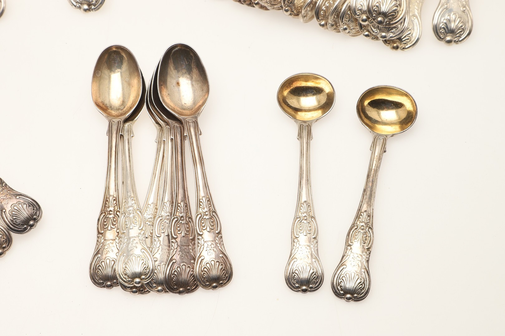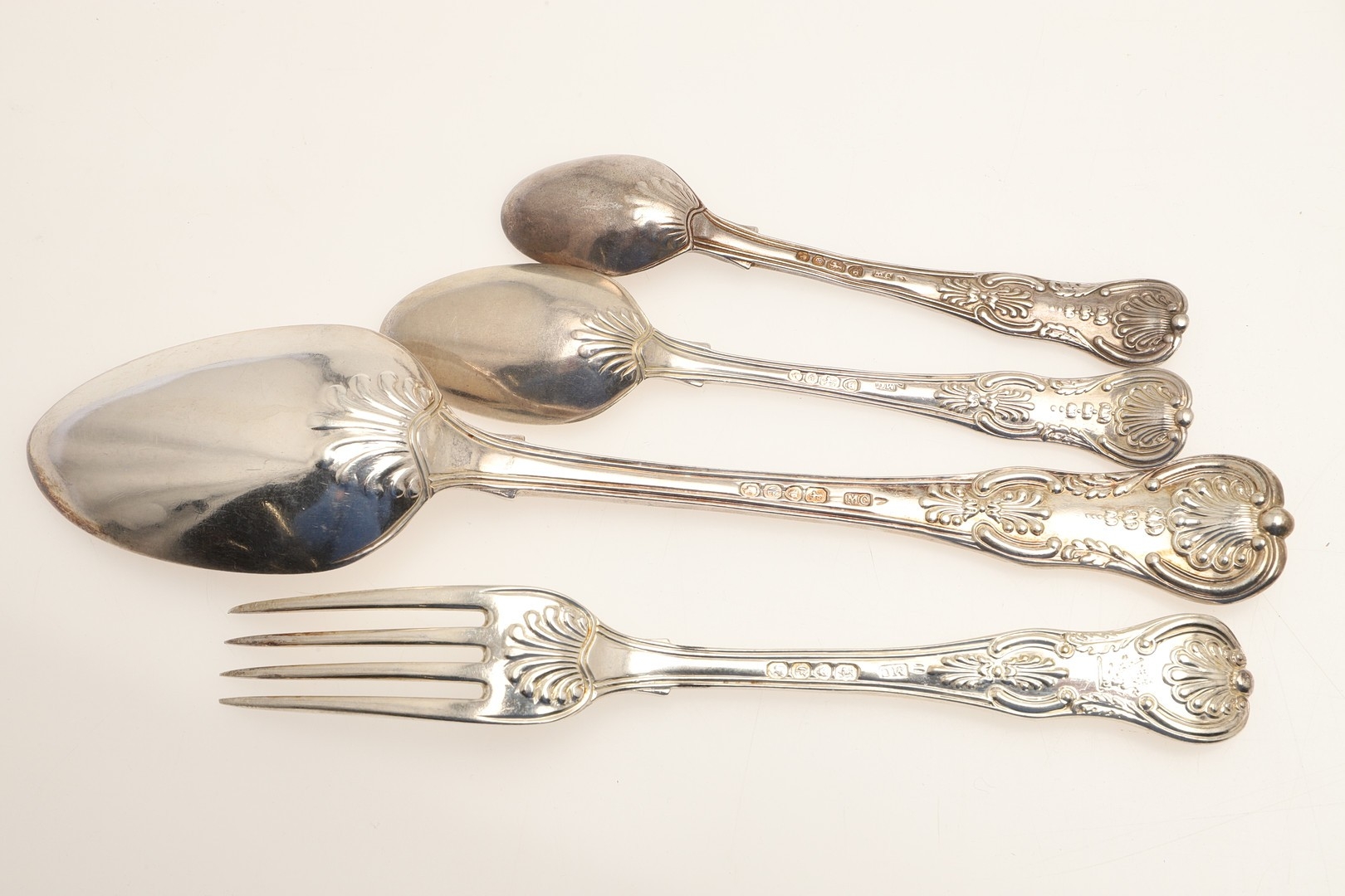 A SET OF EARLY VICTORIAN SILVER KINGS HONEYSUCKLE PATTERN CUTLERY. To include: