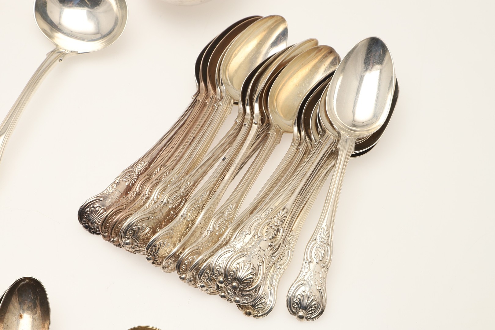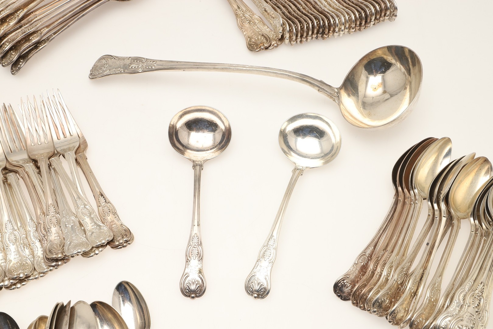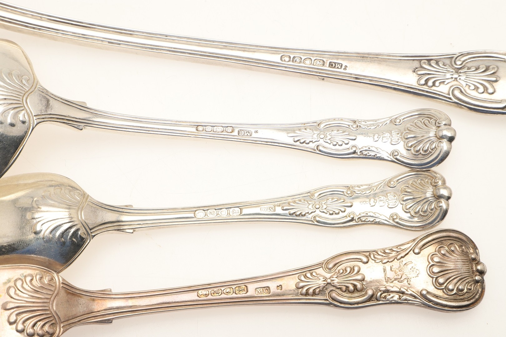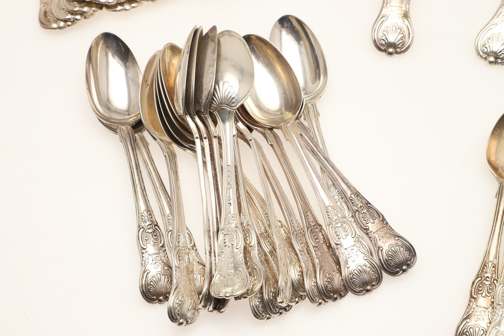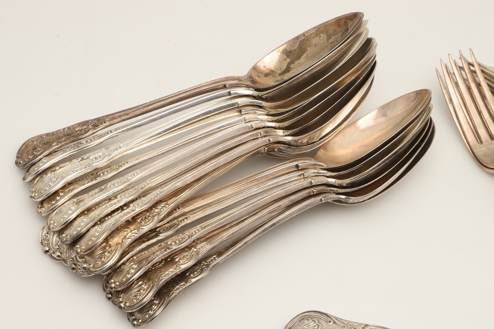 A SET OF EARLY VICTORIAN SILVER KINGS HONEYSUCKLE PATTERN CUTLERY. To include: