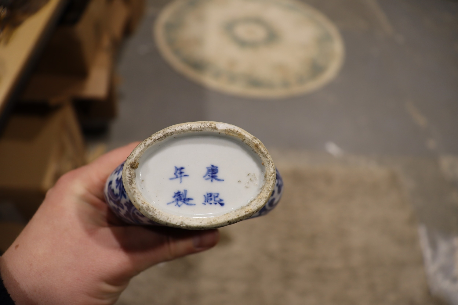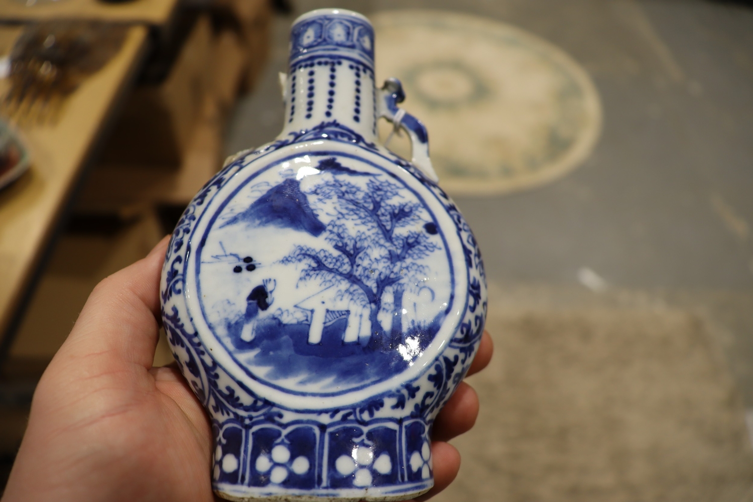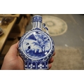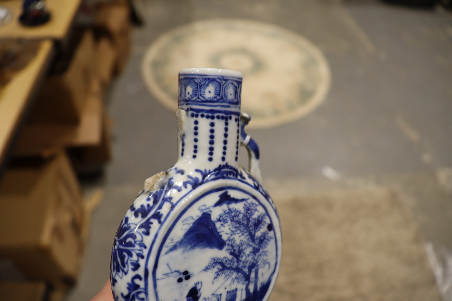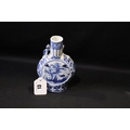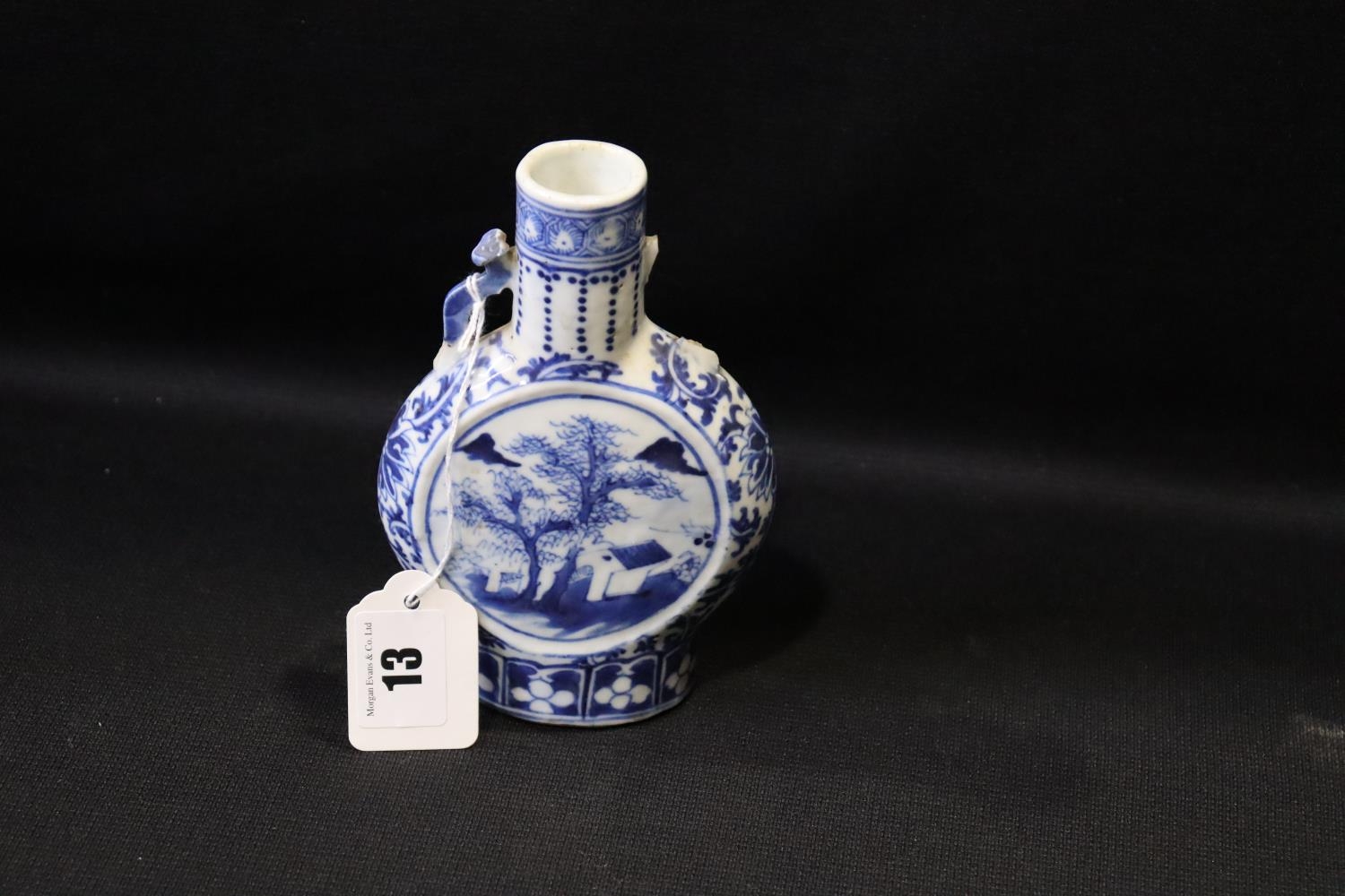 A 19thc Chinese Blue & White Moon Flask With Landscape Panels (Af) 6.5" High