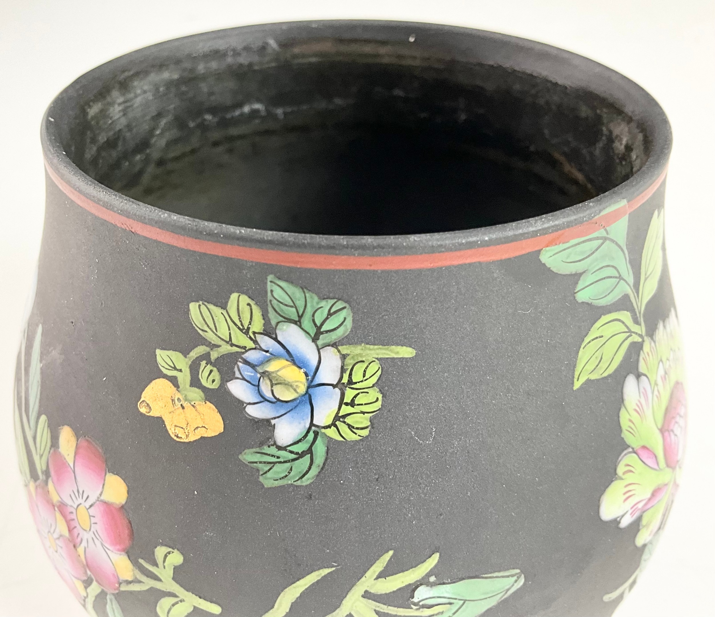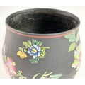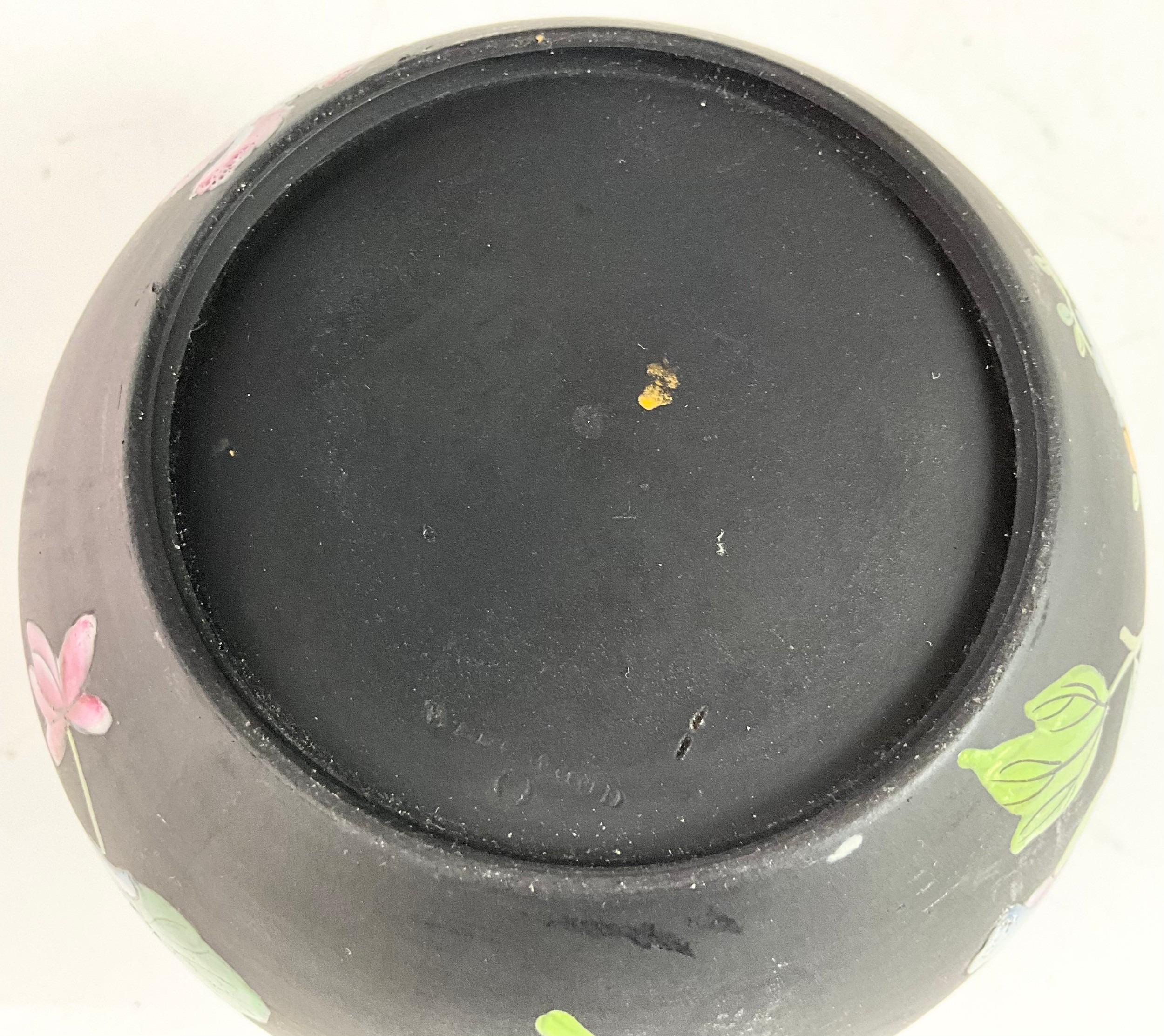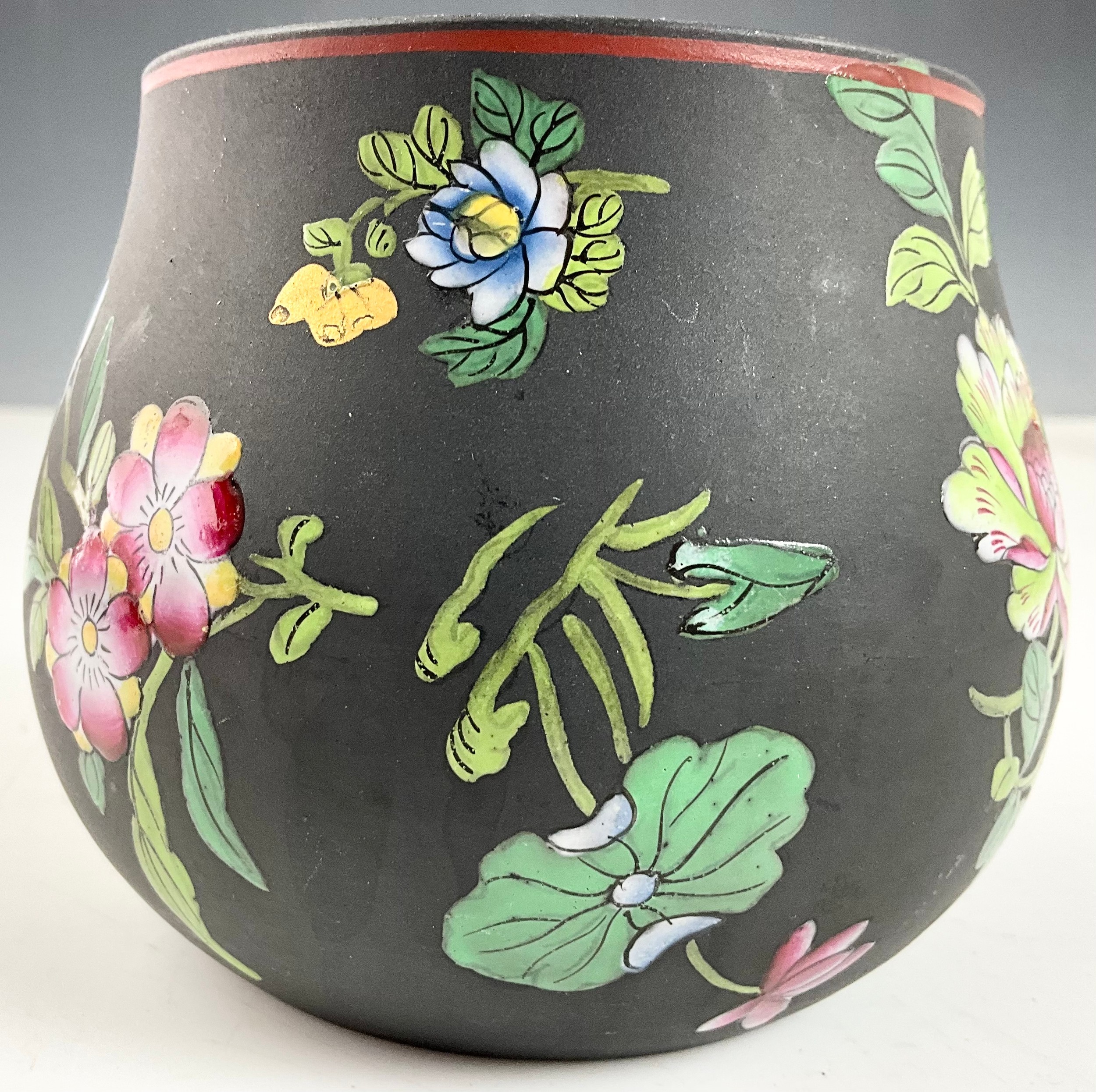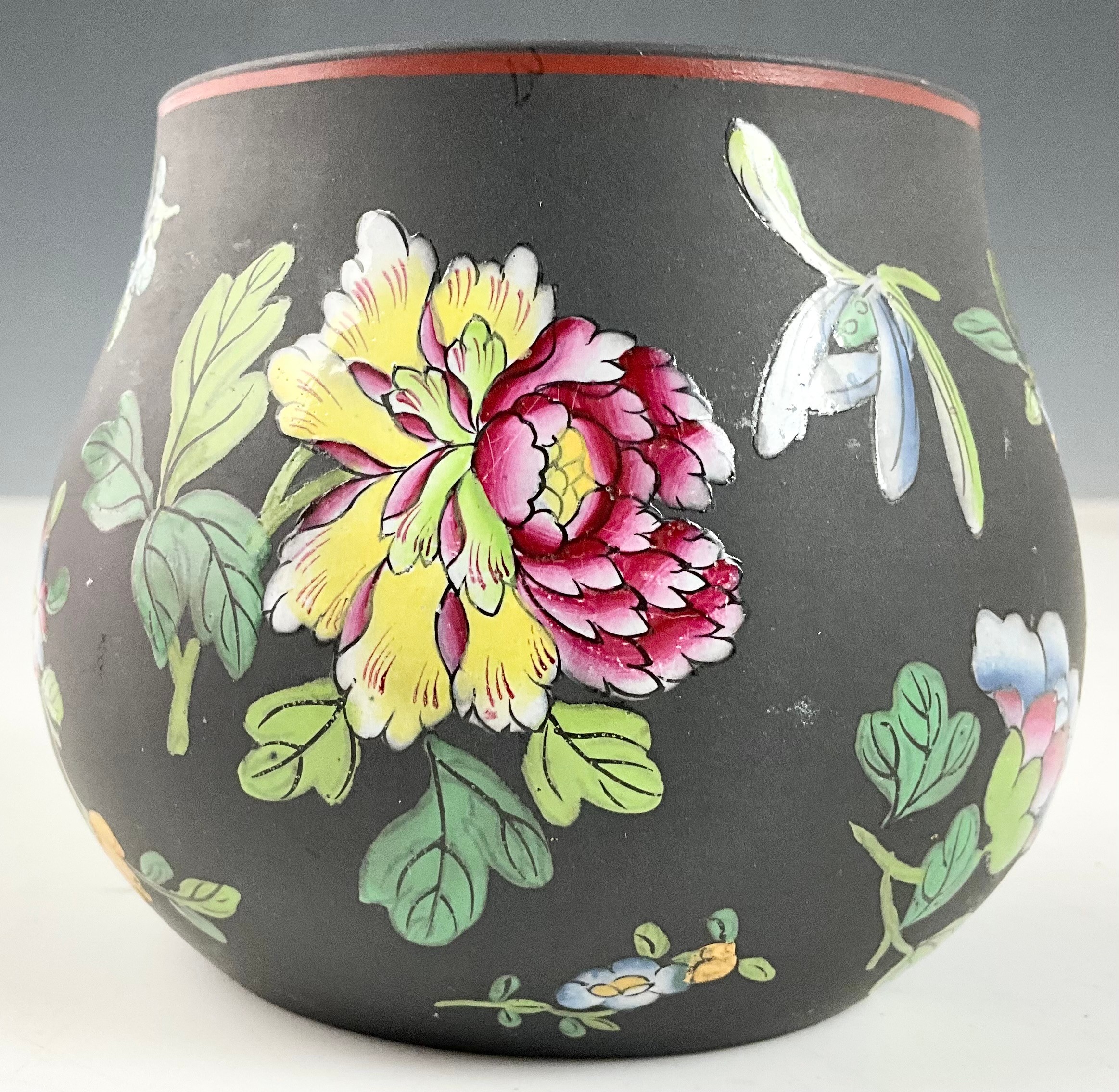 UNUSUAL ANTIQUE WEDGWOOD BASALT / BLACK GROUND VASE WITH FLORAL DECORATION 8.5cm TALL