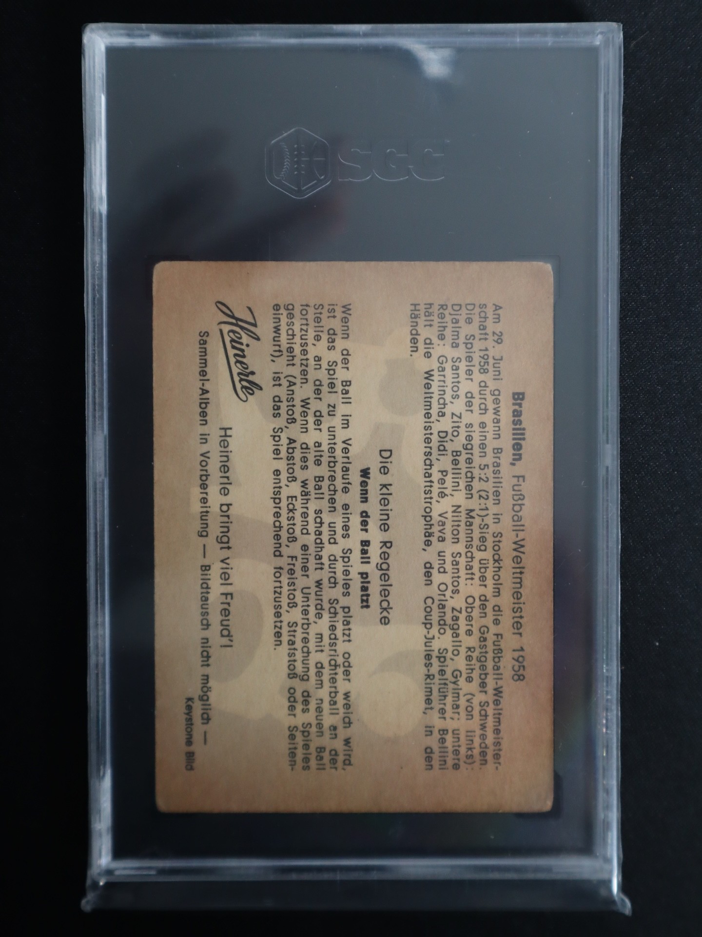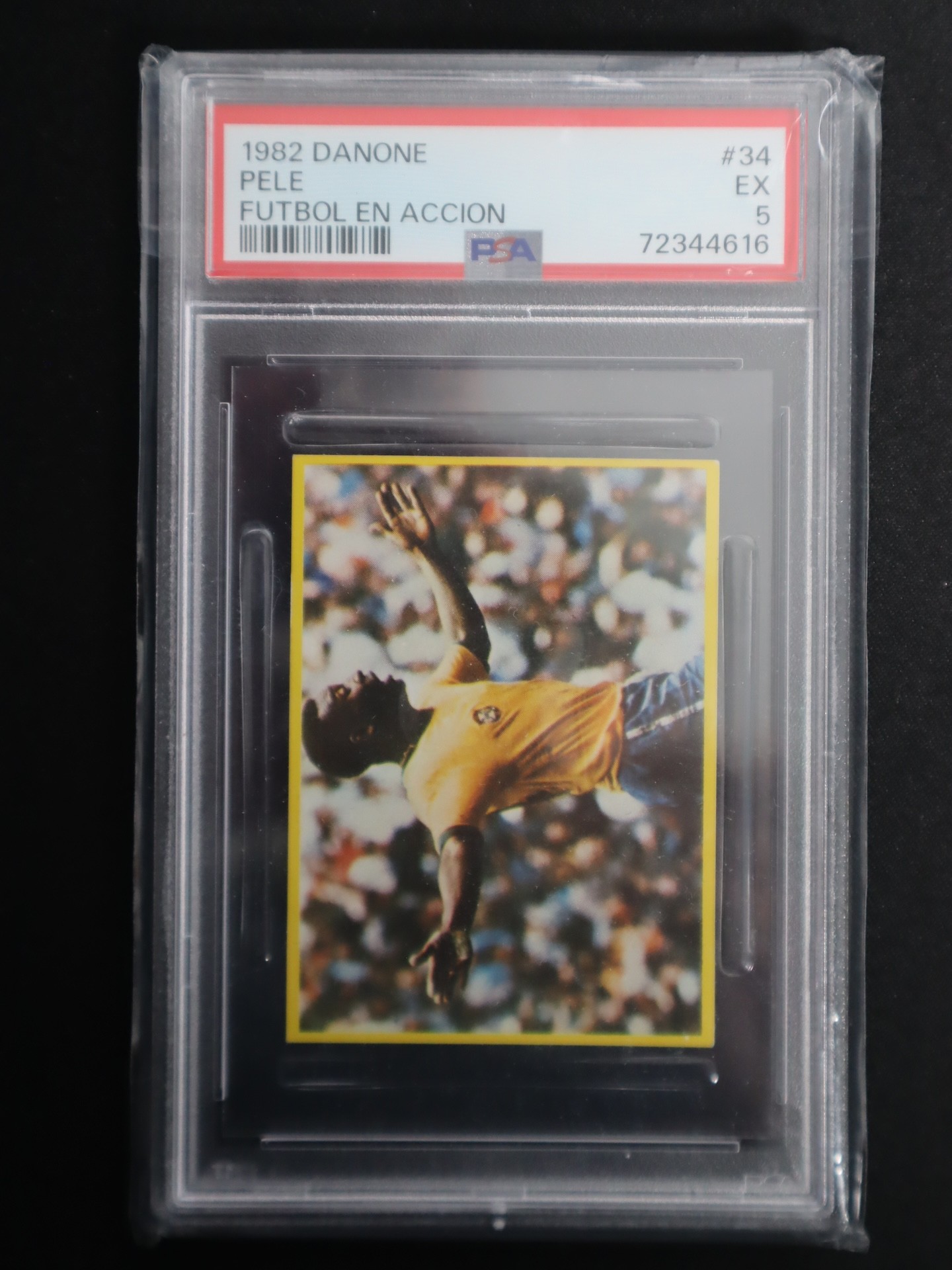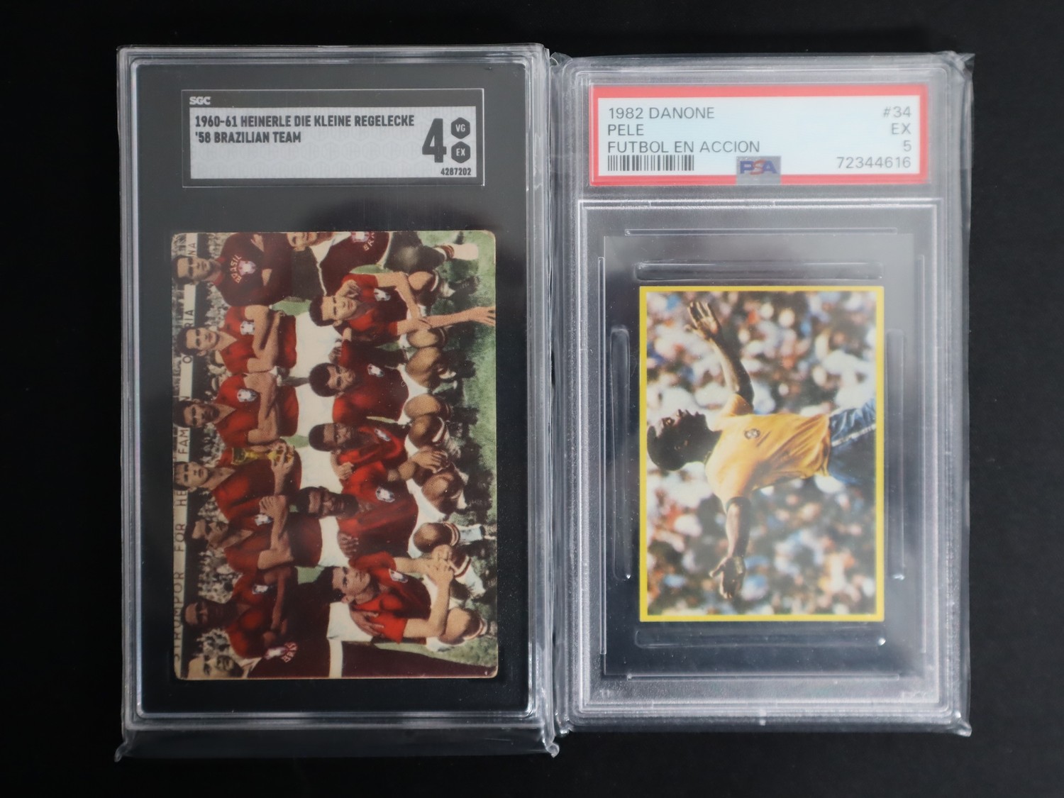 1982 Danone No 34 Pele Futbol En Accion PSA 5 Excellent + 1960-61 Heinerle Die Kleine Regelecke '58 Brazilian Team SGC 4 Pele / Brazil Football Cards / Stickers