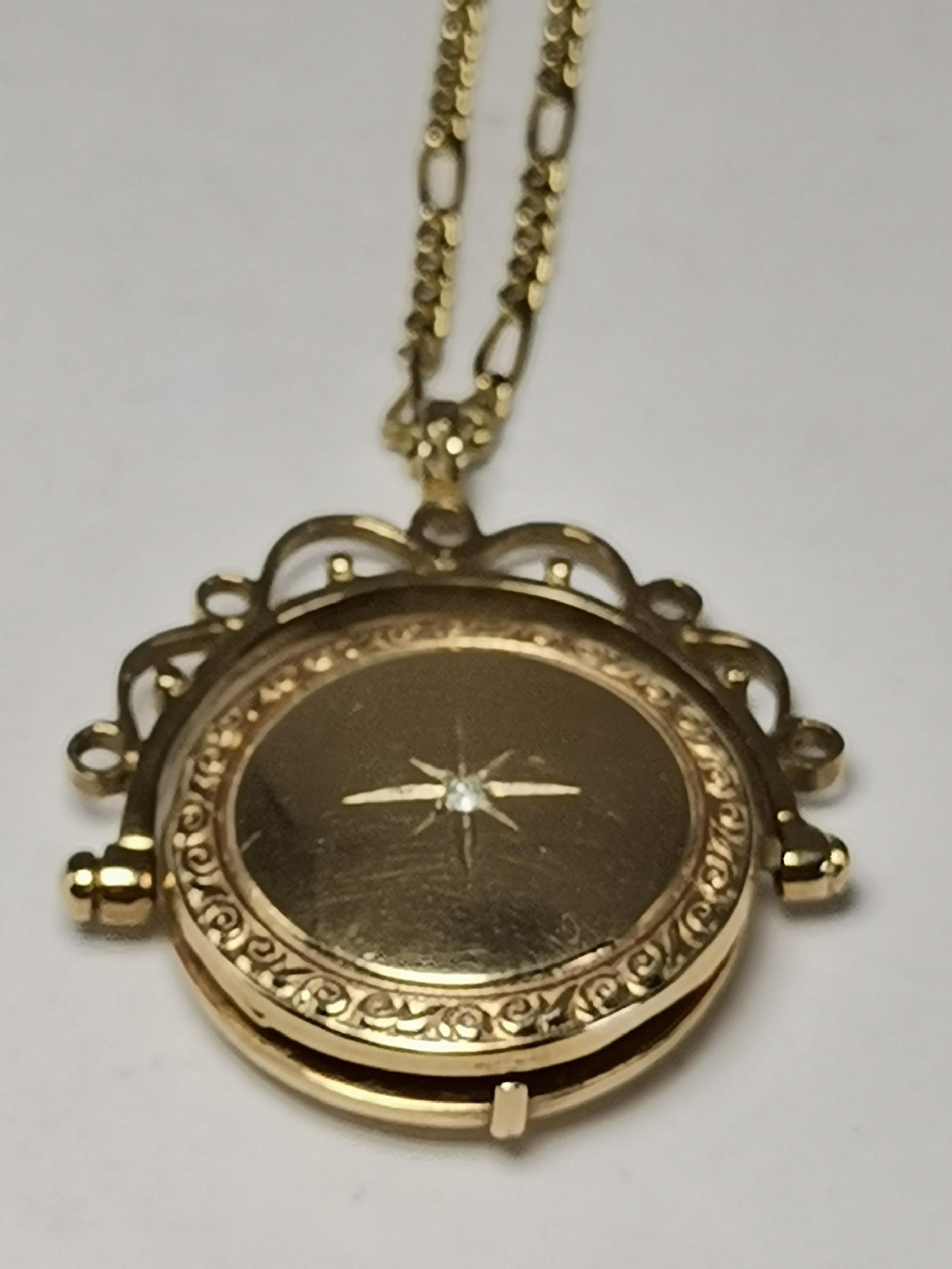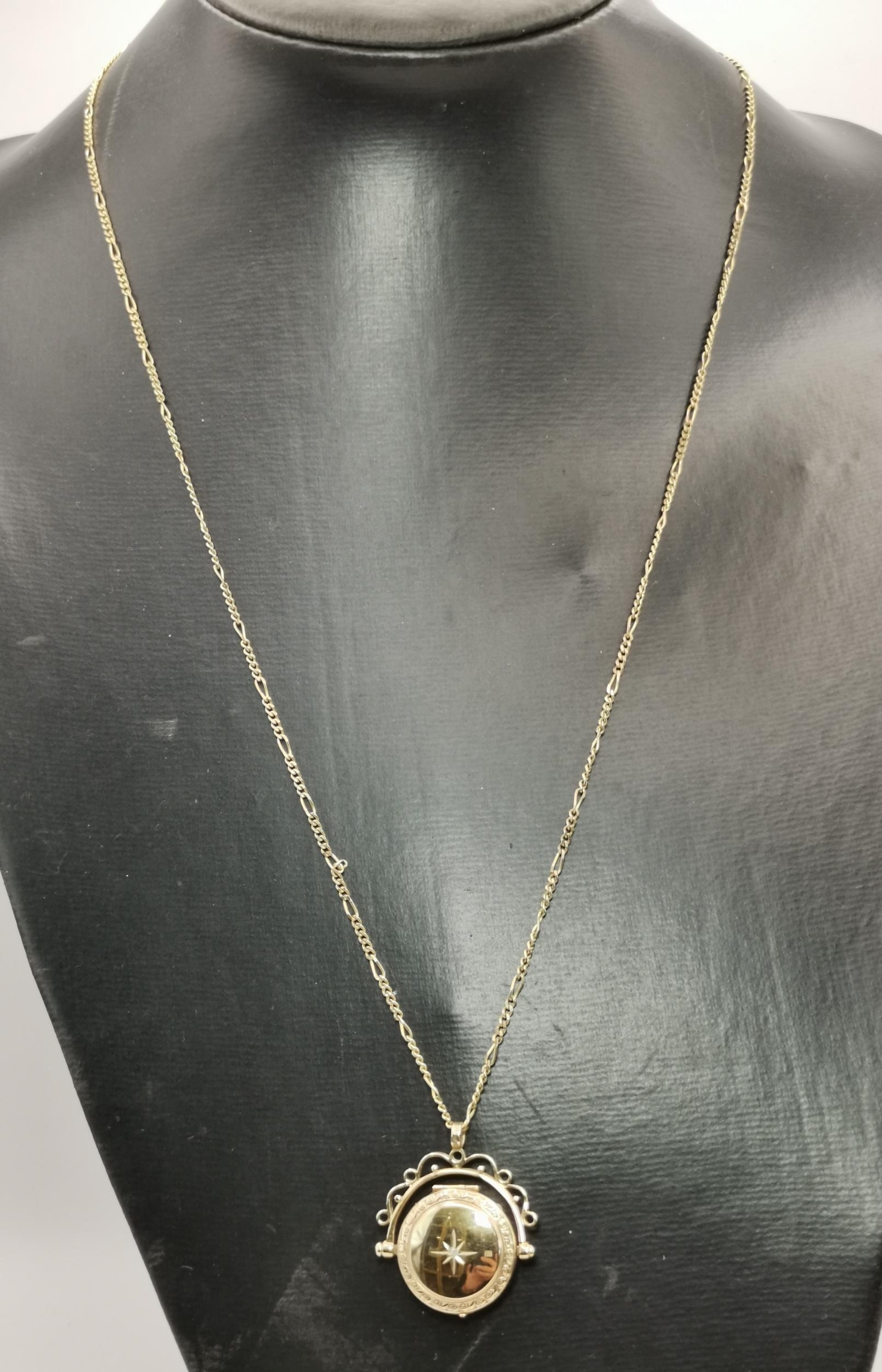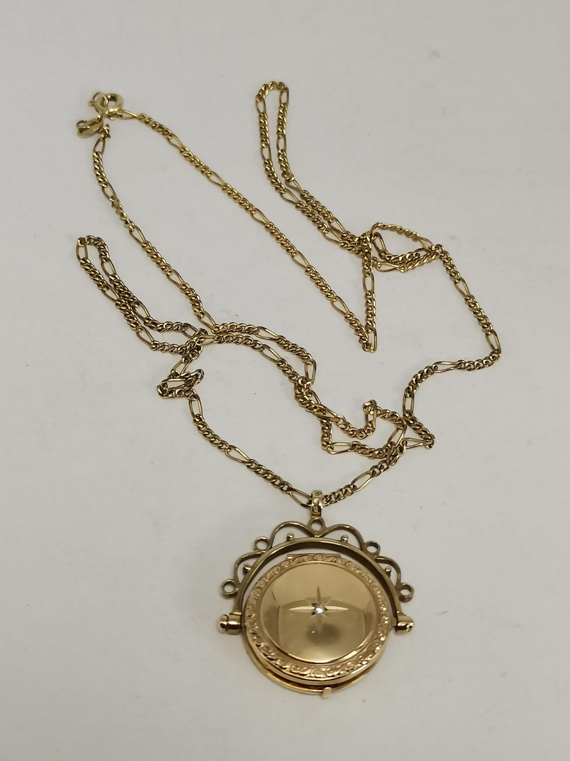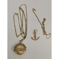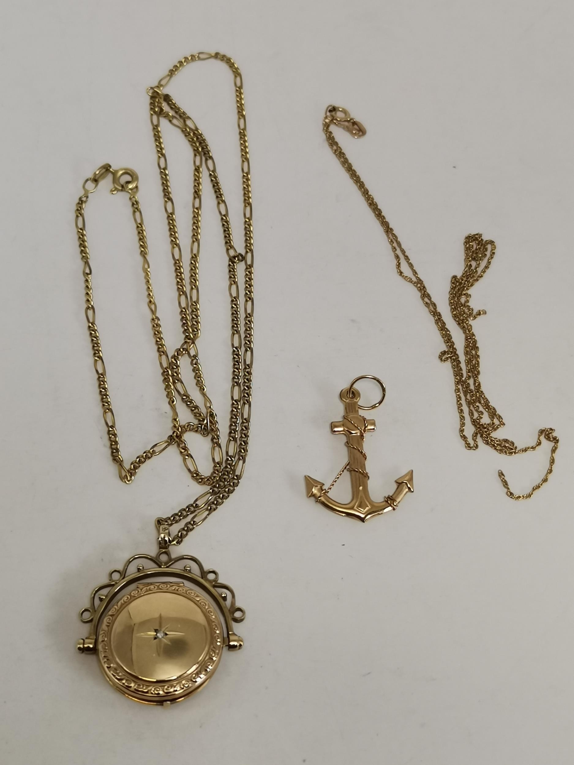A 9 carat gold swivel locket pendant to a fine Figaro chain; together with a 9 carat gold fouled anchor pendant to a fine loose rope chain (a/f), all hallmarked 375. (2) Figaro chain 61.5cm long, 10.0g gross