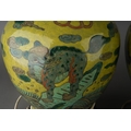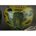 A pair of Chinese baluster vases, each lime green ground dec...