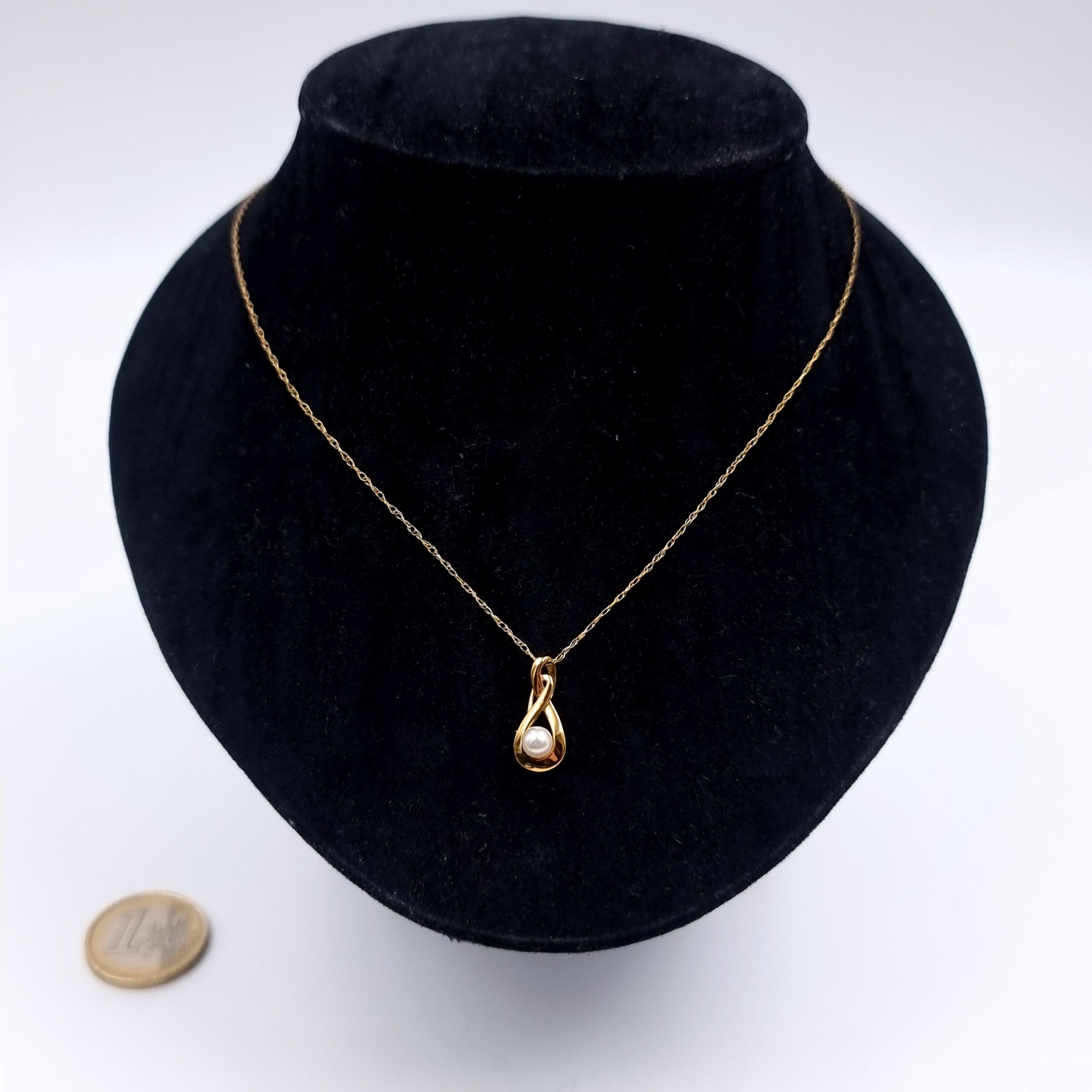 Star Lot: A pretty nine carat gold 375 pearl pendant and chain. Length 46cm. Weight 1.34 grams.