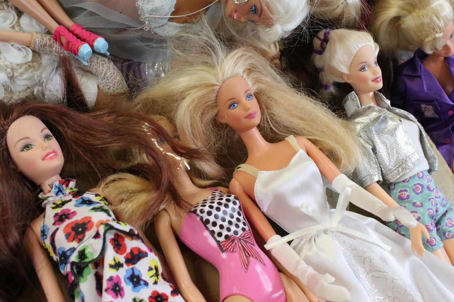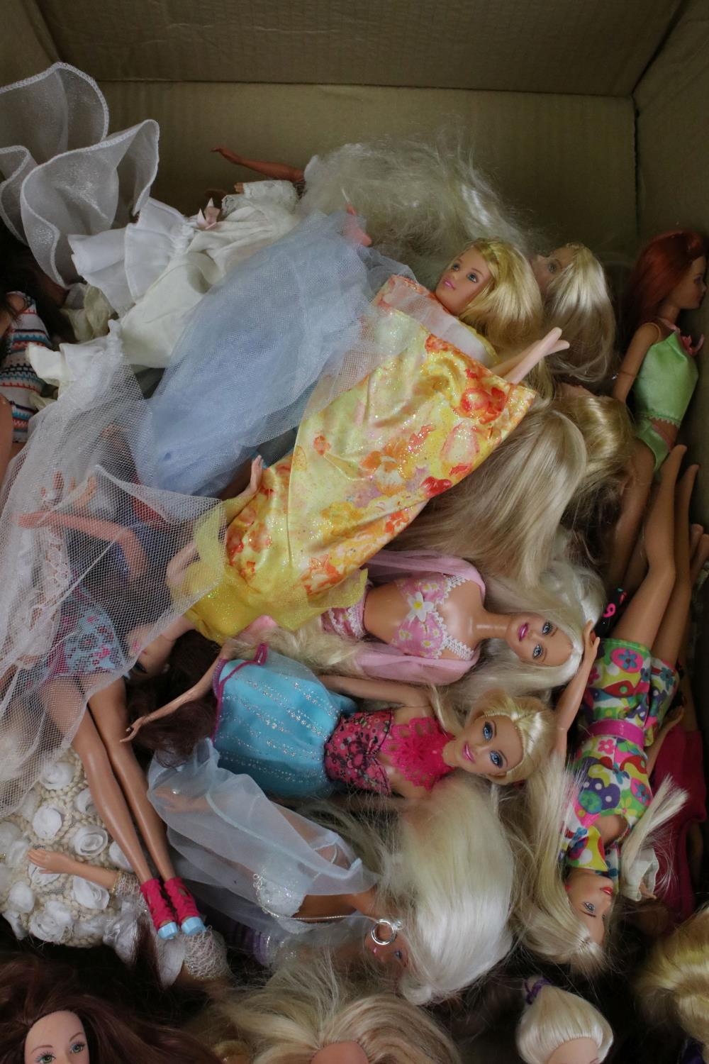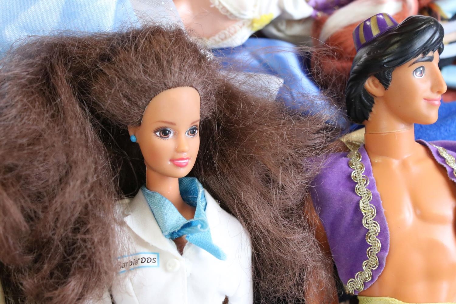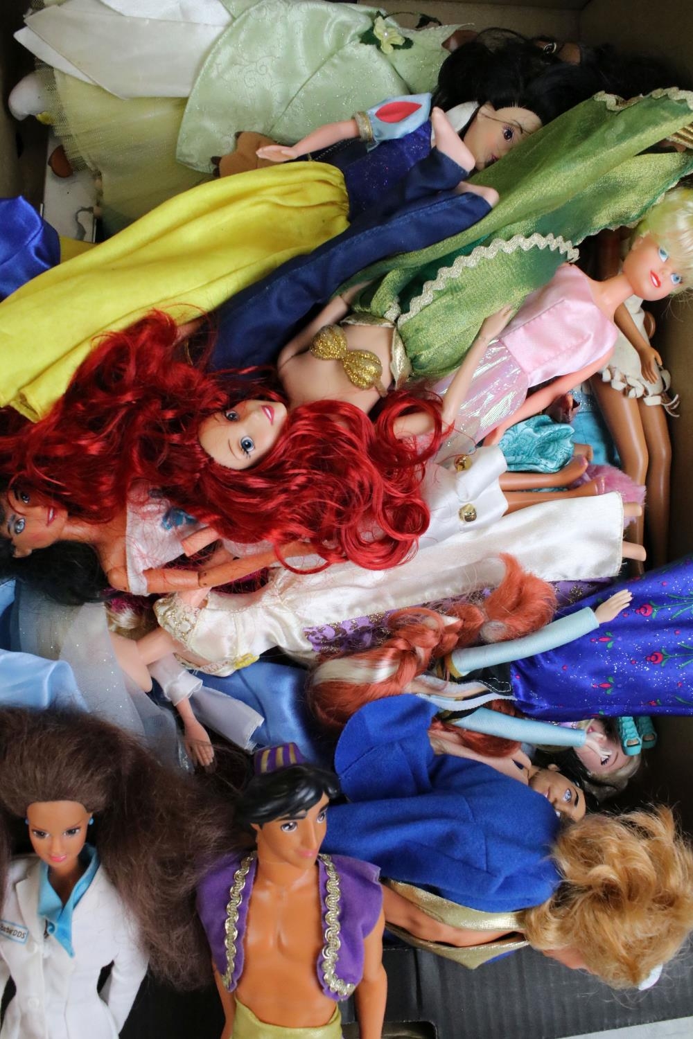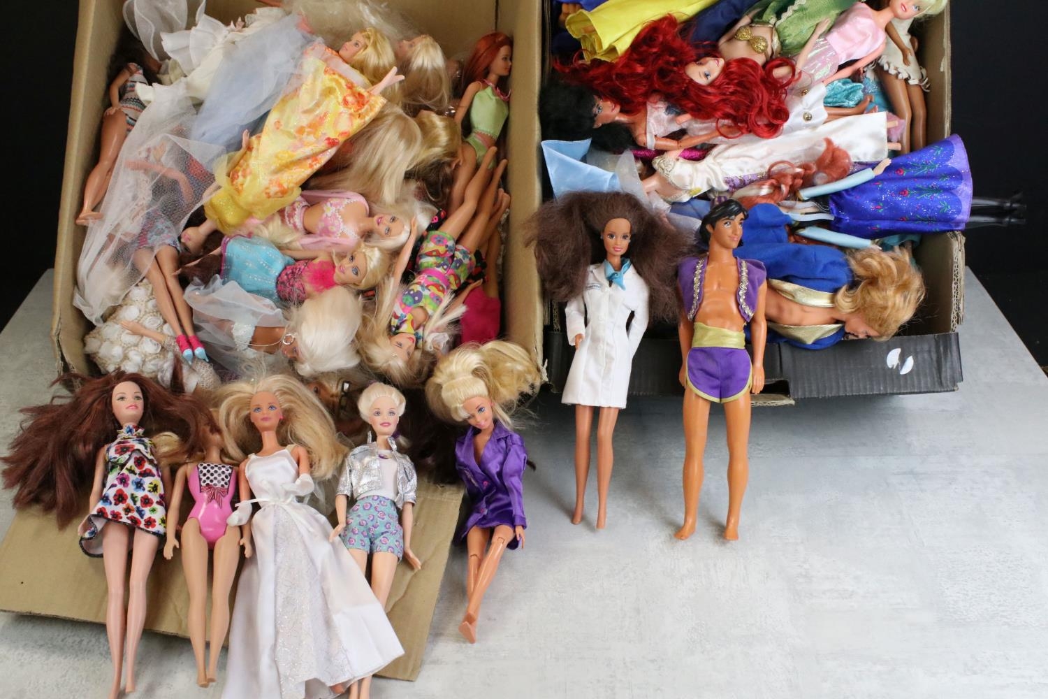 Large Quantity of contemporary dolls to include Mattel, Hasbro & Simba Toys featuring Disney, Barbie, mainly with clothing (2 boxes)