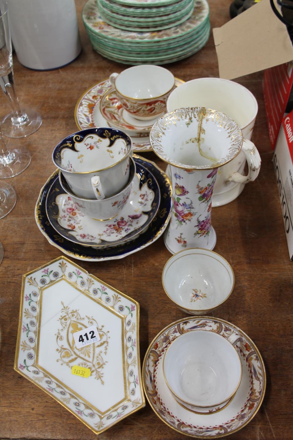 Victorian ceramics to include vases, a cup and saucer, a gilded plate, a large floral mug, etc.