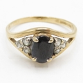 9ct gold diamond and sapphire dress ring (1.9g) Size L
