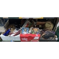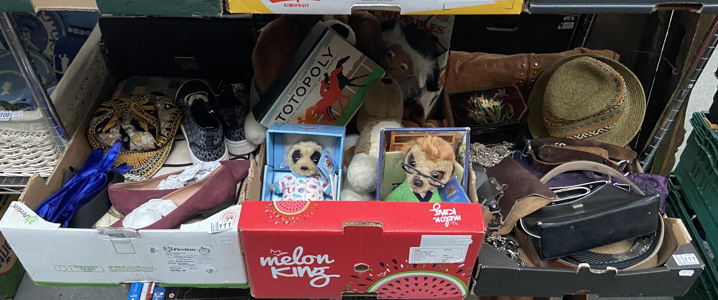 3 Boxes containing Totopoly and vintage white metal belts etc