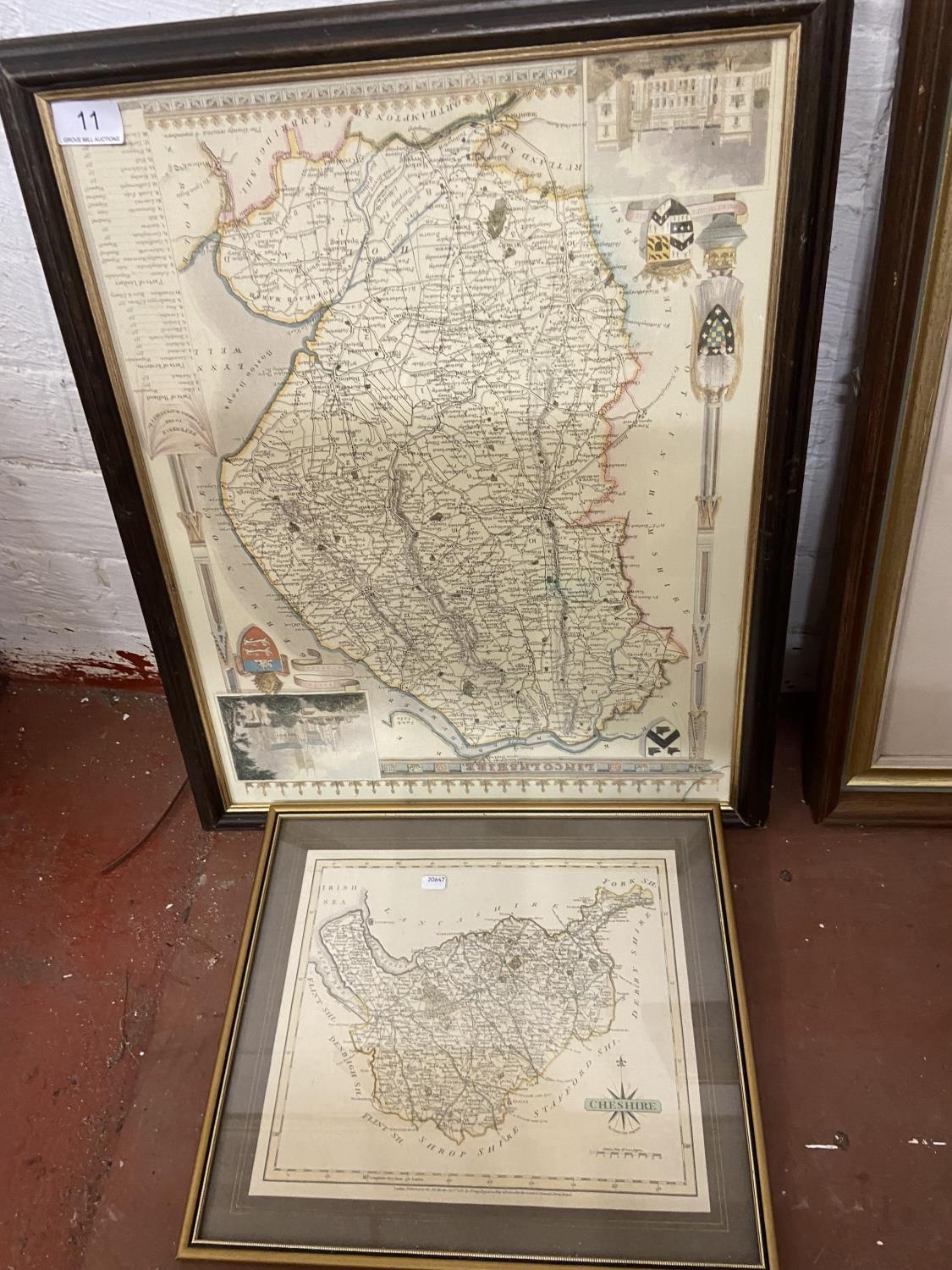 FRAMED MAP OF LINCOLNSHIRE & FRAMED MAP OF CHESHIRE