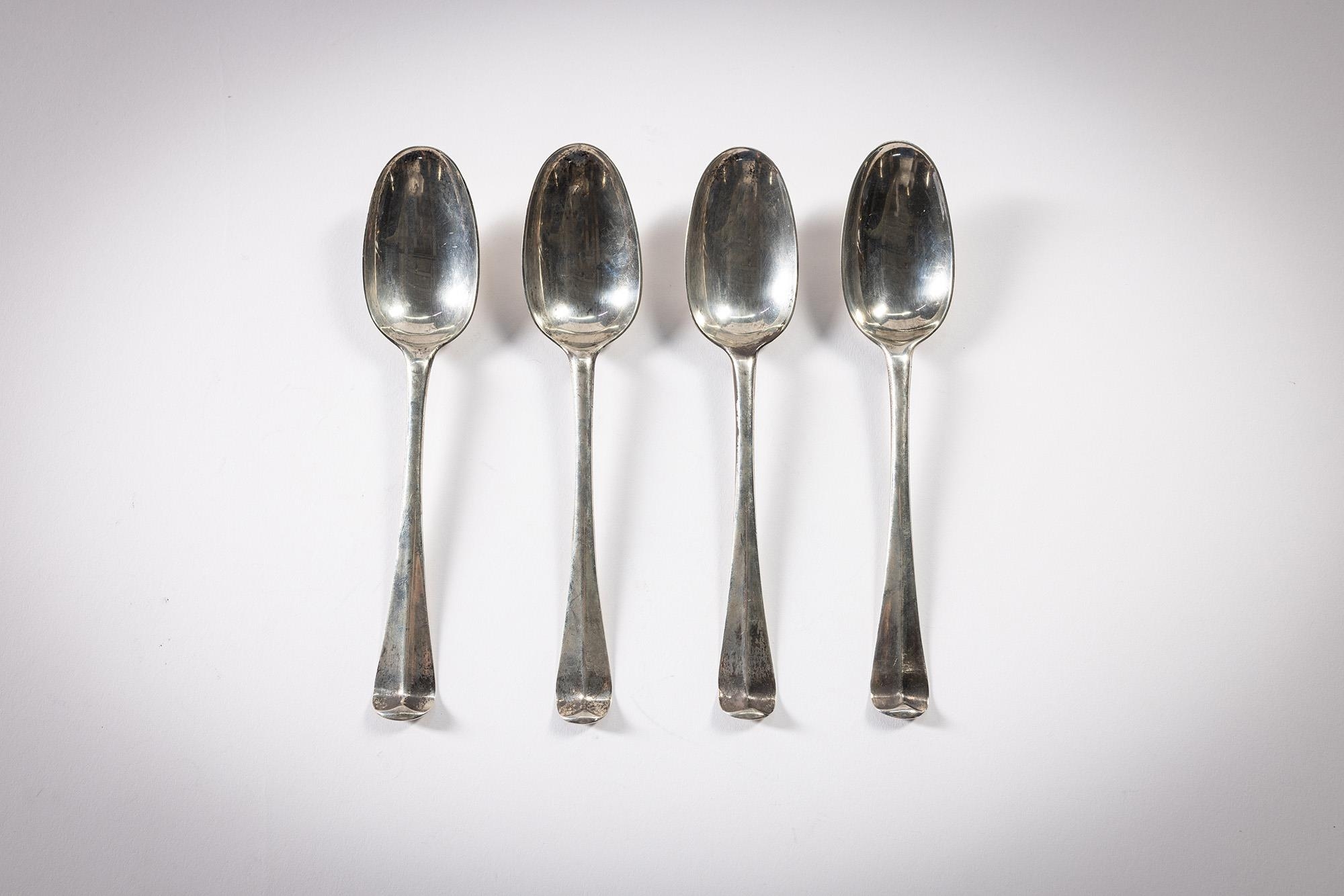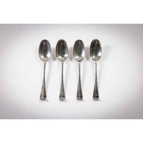 A SET OF 4 IRISH GEORGE II SILVER TABLESPOONS by John Taylor, Dublin, 1733, 21cm (l). 8.90 ozt.