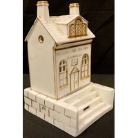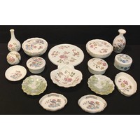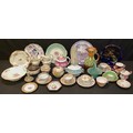 An Art Deco Myott jug; a Belleek jug; a Bursley Ware Chinoiserie bowl; a George Jones preserve pot, EPNS mounted with swing handle; a Royal Crown Derby cake plate; a Gaudy Welsh type pink lustre sucrier and cover; a Royal Doulton two handled cup and saucer; a Lovatt's Langley basket; cups and saucers, plates; qty
