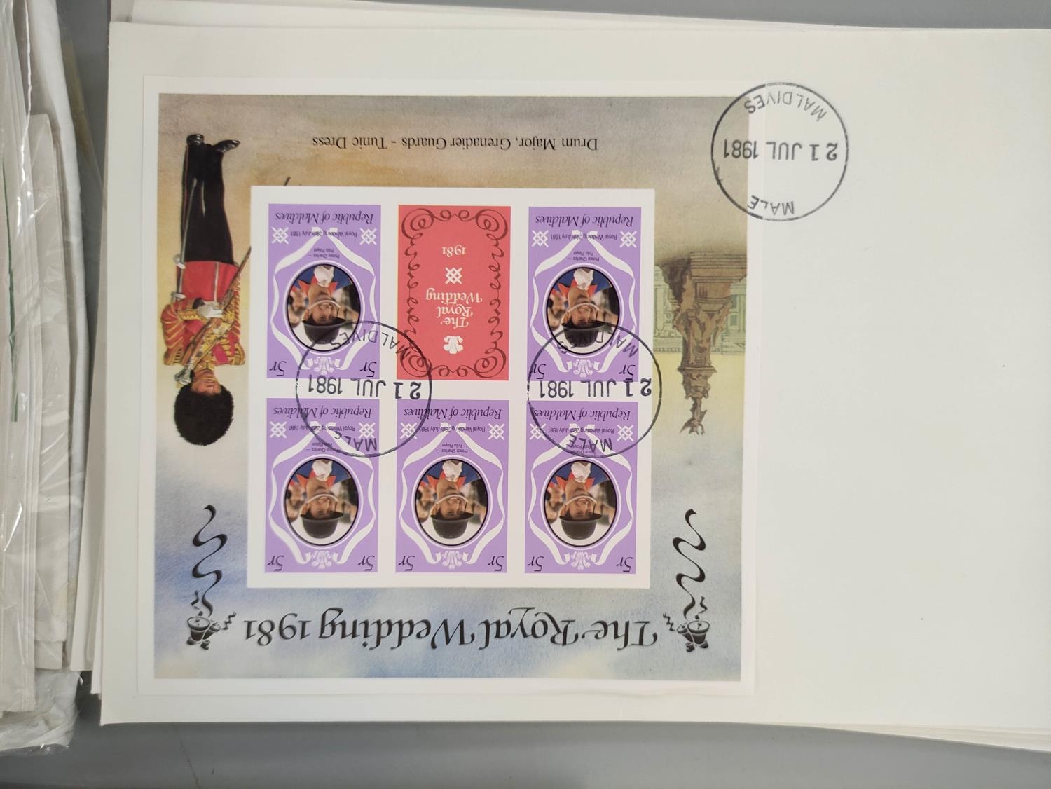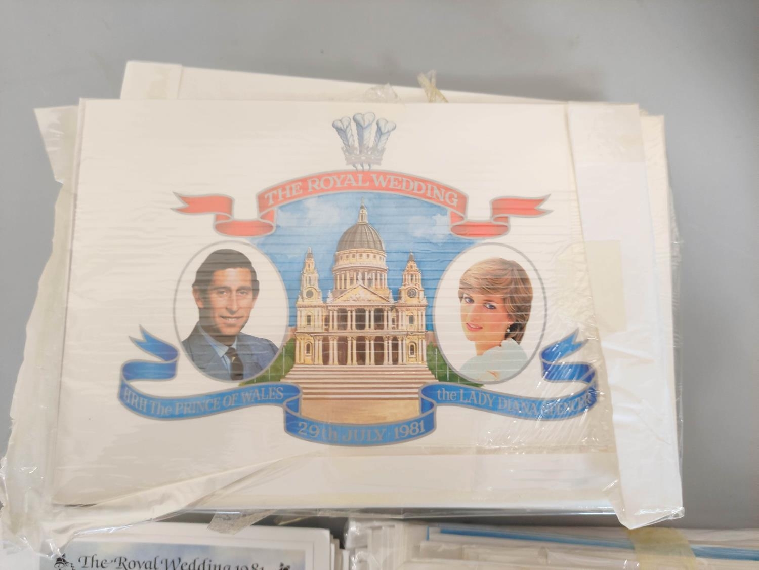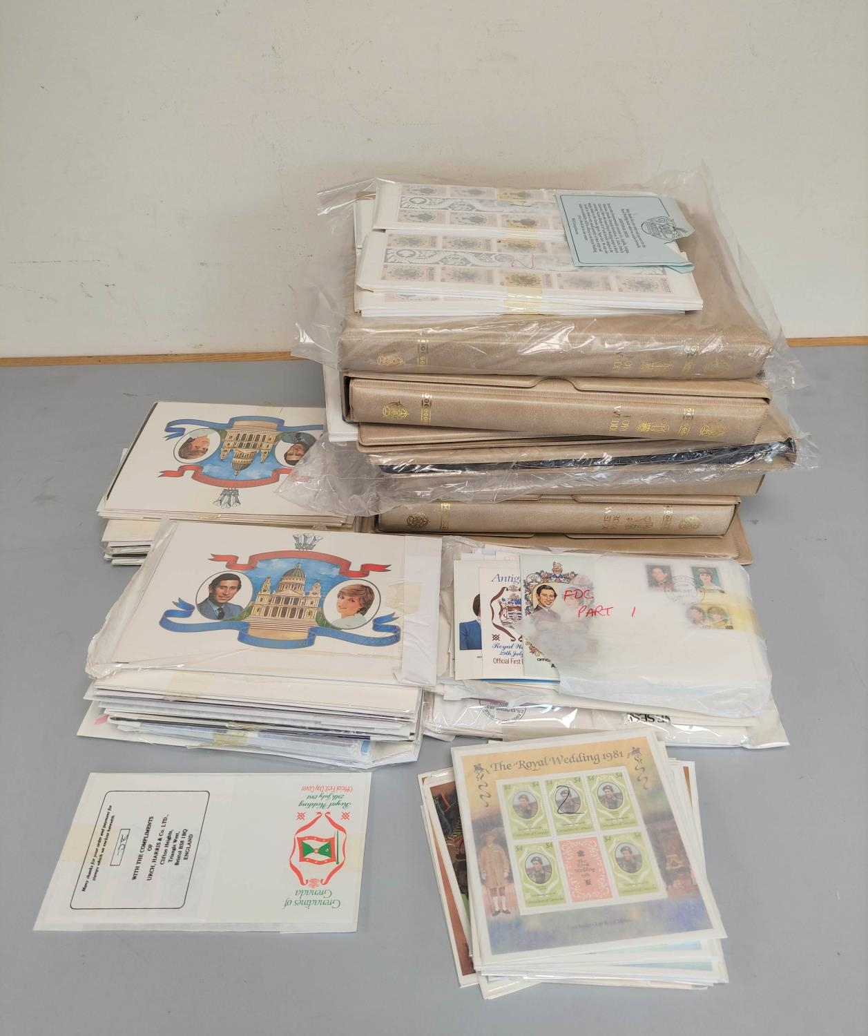 Box containing a large quantity of stamps, first day covers and albums relating to the Royal Wedding 1981. Many sealed. To include British and commonwealth issues.