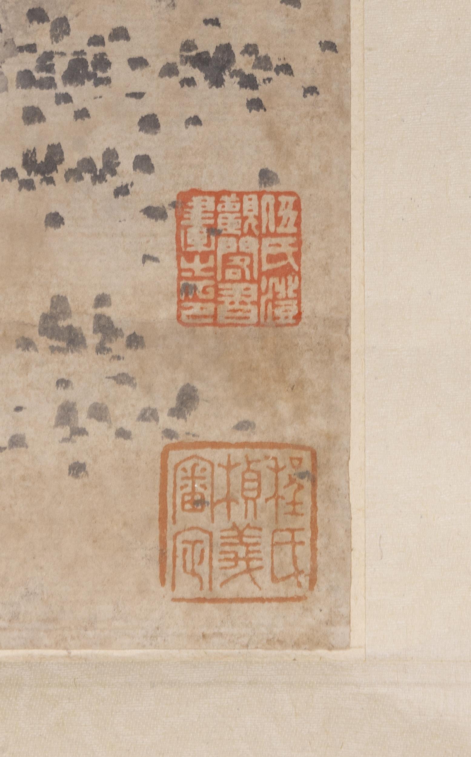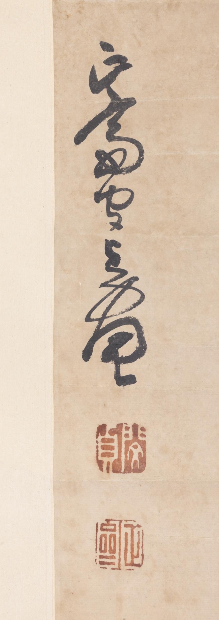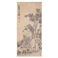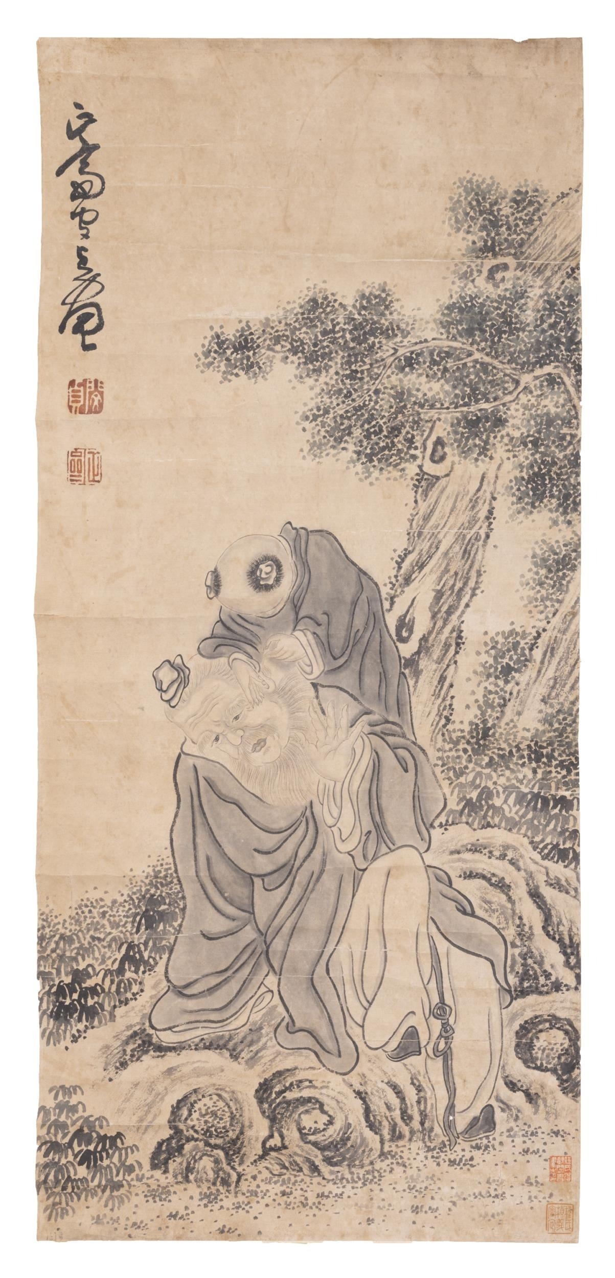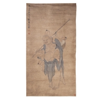 A CHINESE INK PAPER PAINTING OF GRANDFATHER AND GRANDSON 20?? ???? ??? China, 20th century Size: 94 x 43.5cm