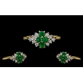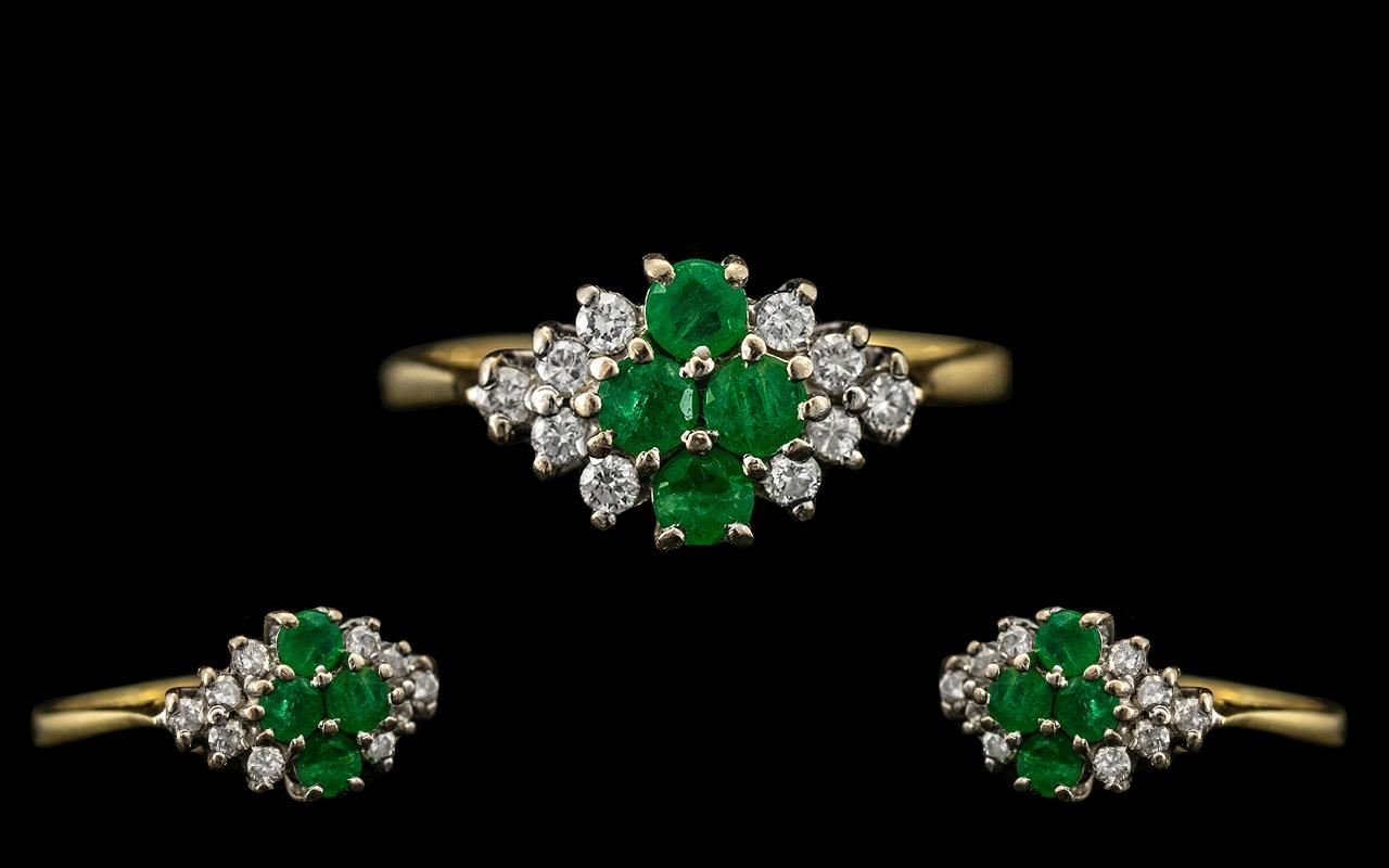 18ct Gold - Attractive Ladies Emerald and Diamond Set Dress Ring - Pleasing Design. Full Hallmark for 18ct - 750. Emeralds and Diamonds of Excellent Colour / Clarity. Ring Size M - N. As New Condition In All Aspects. Low Estimate.