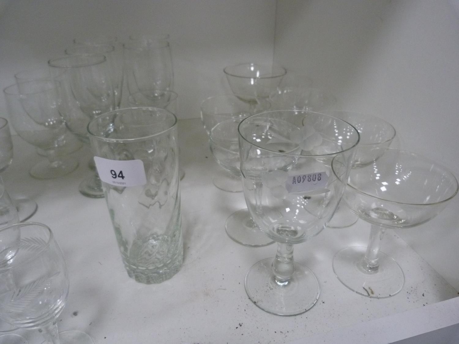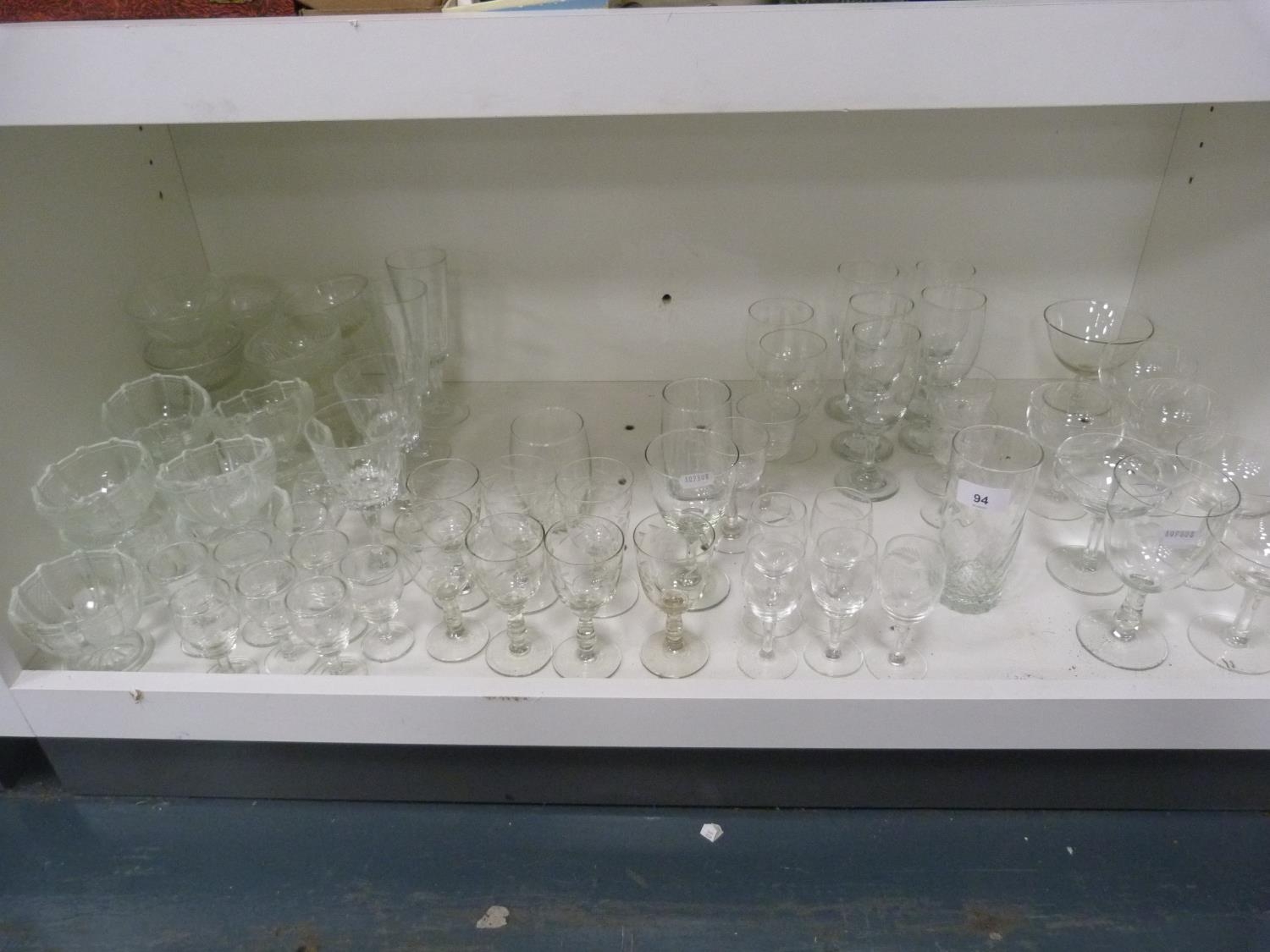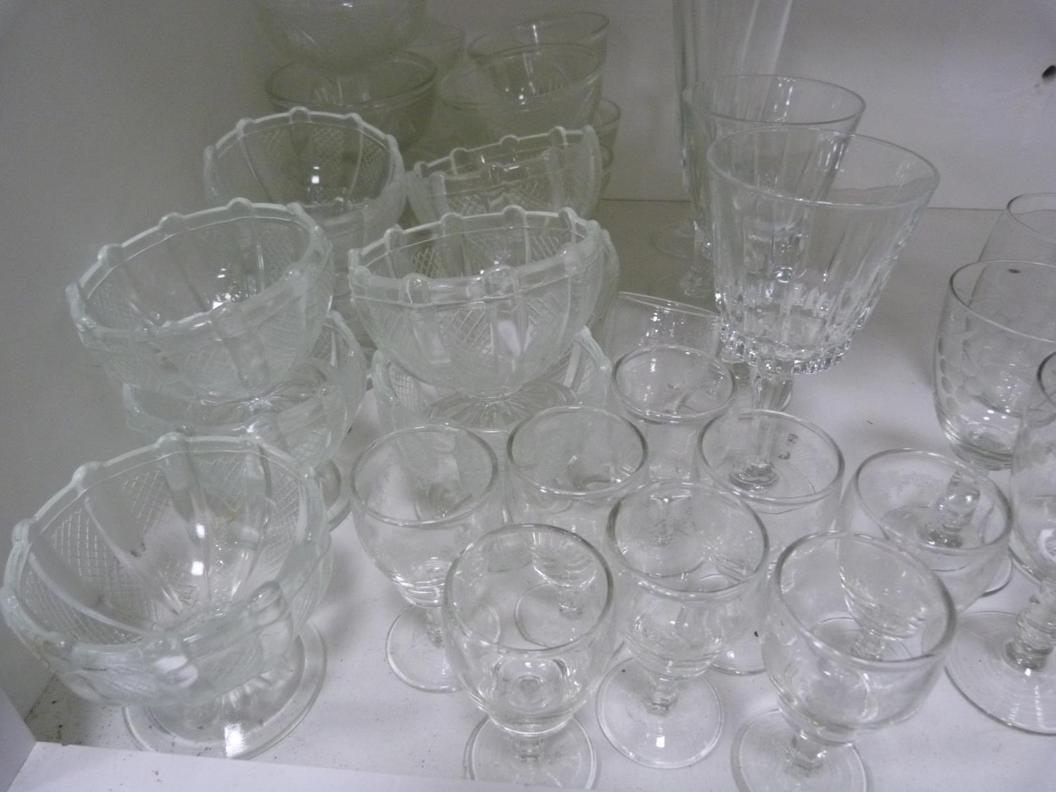 Collection of glasses including wine, sherry, liqueur, also sundae dishes.