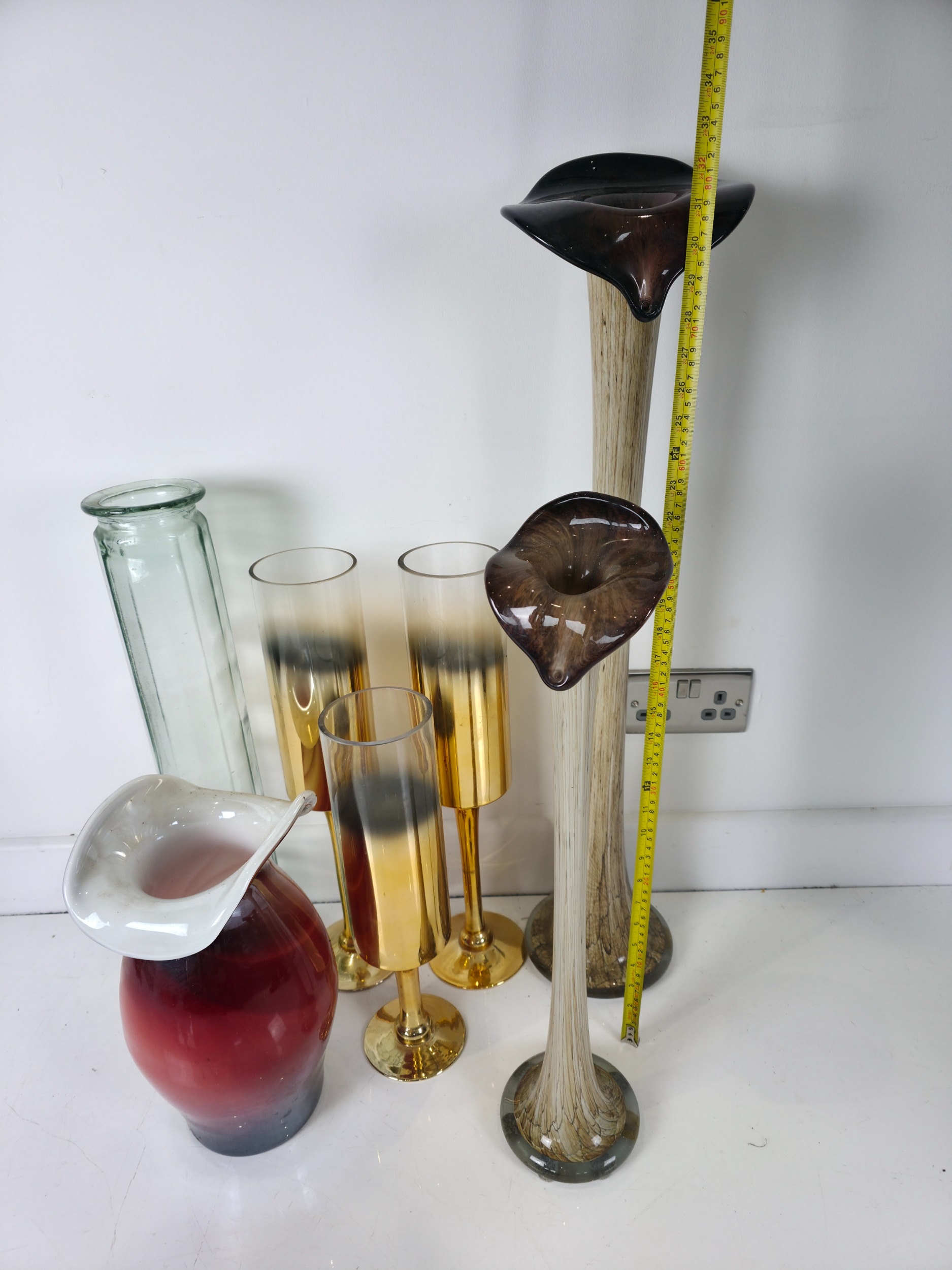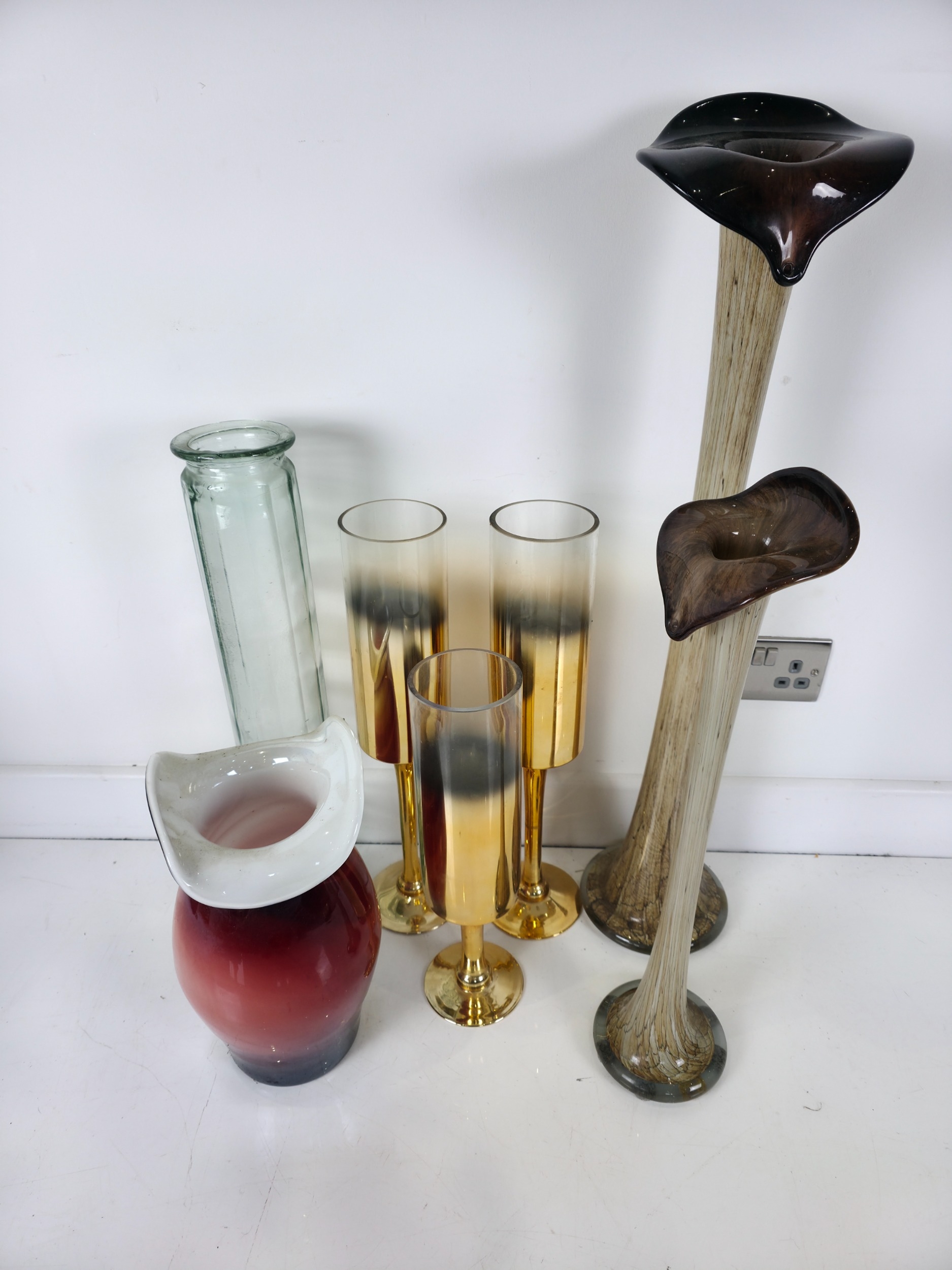 Group of Decorative Art Glass Vases and Flared Floor Vessels, likely Murano