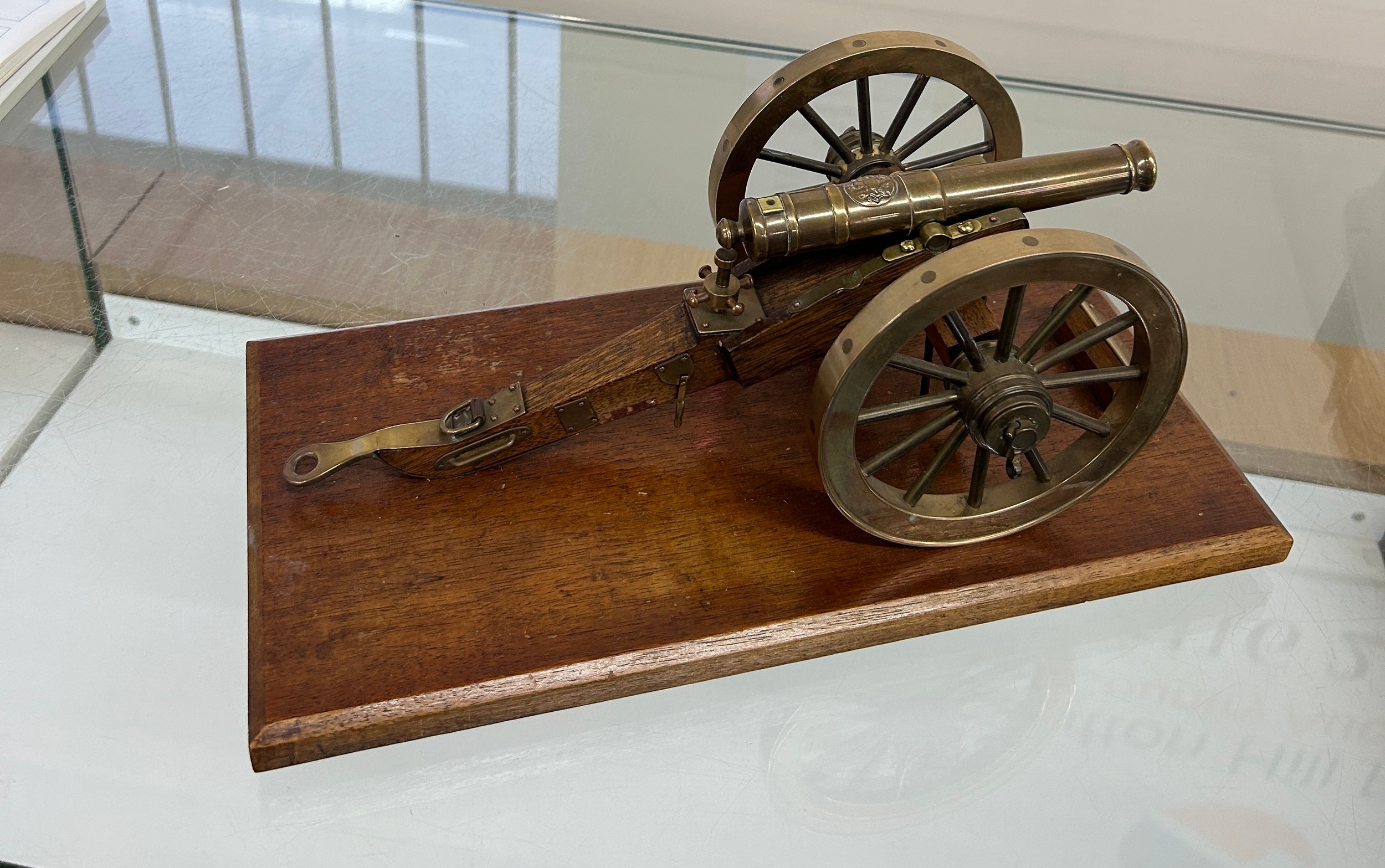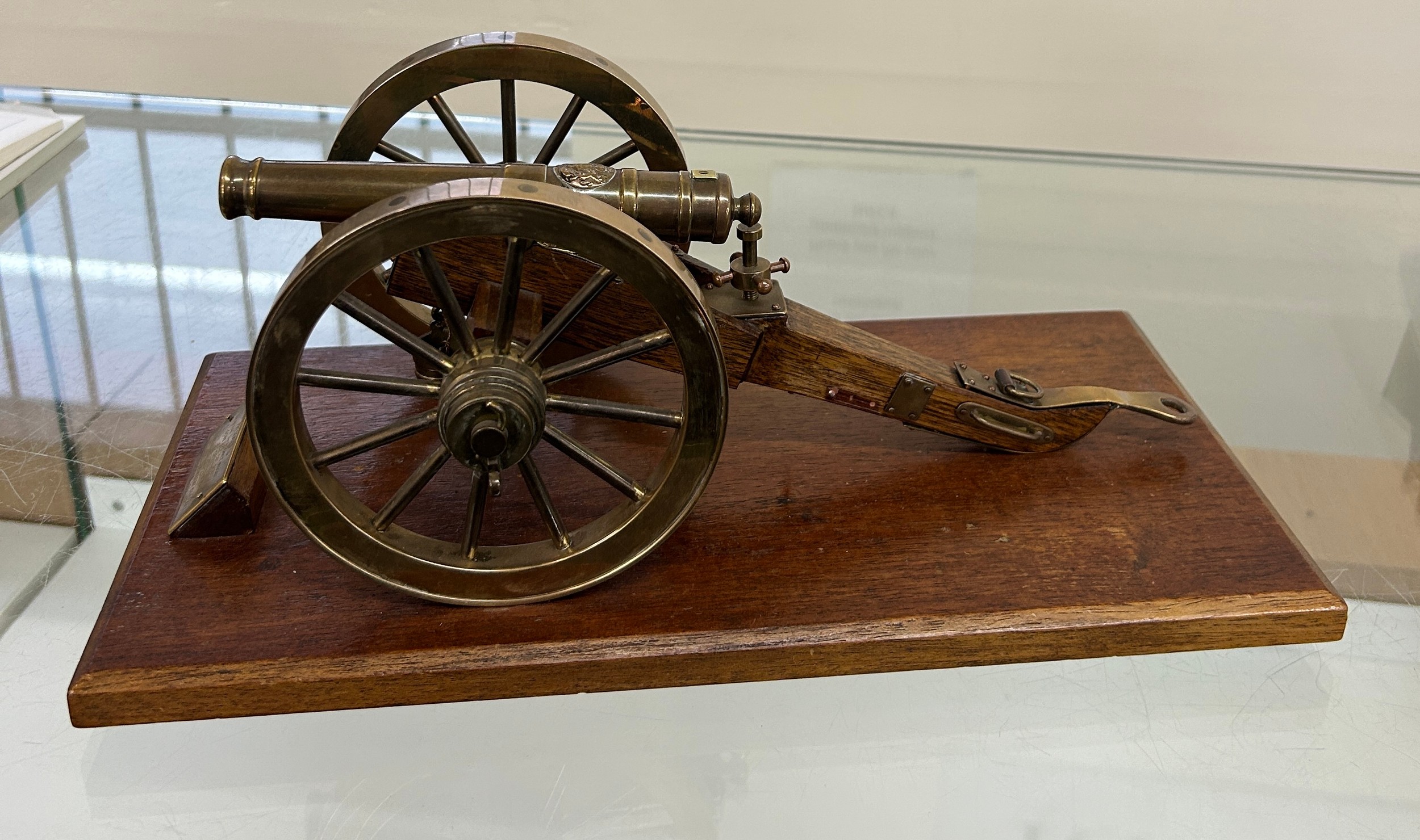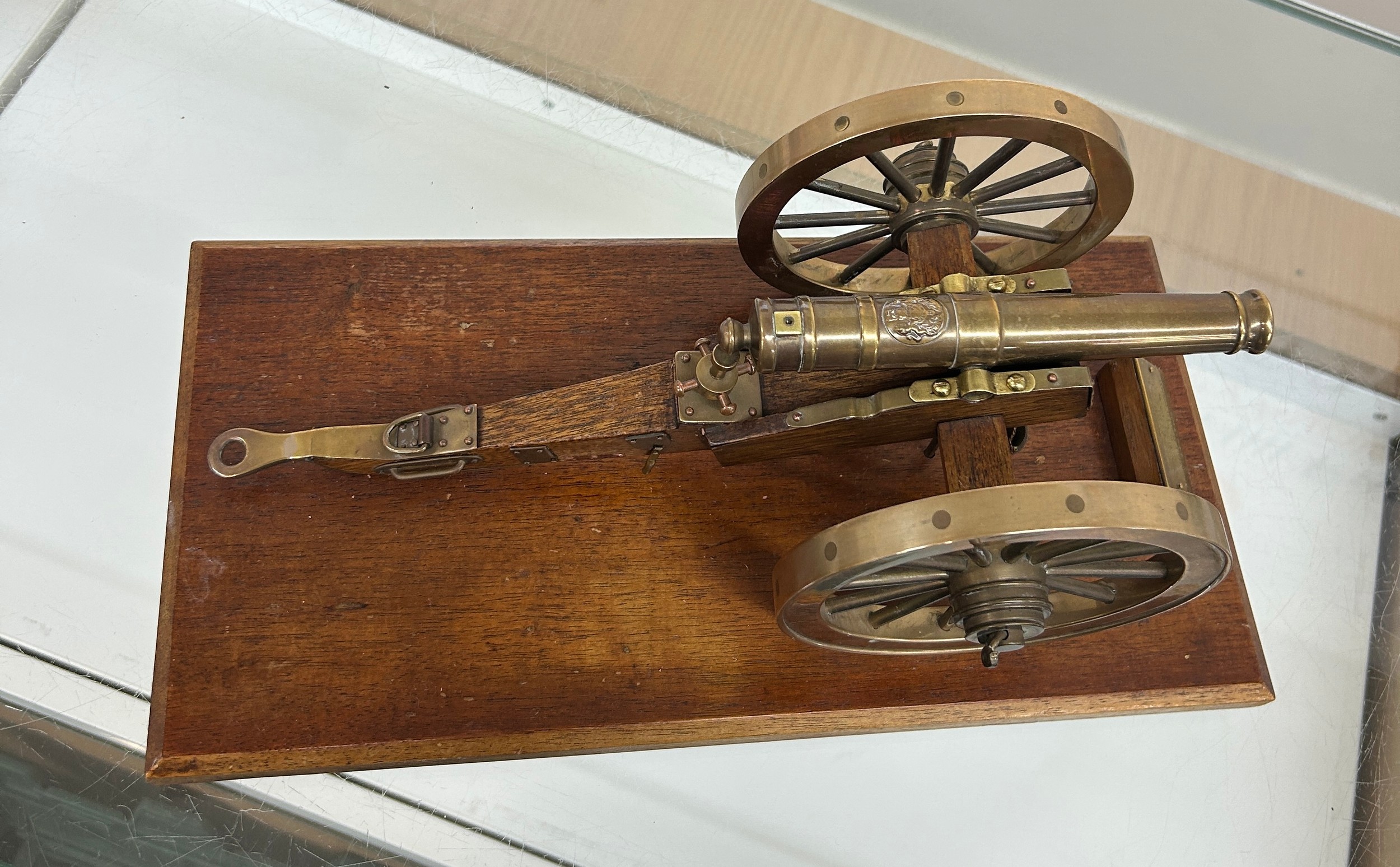 Royal Artillery model of a field gun of Waterloo/Napoleonic wars. Possibly 6 or 9 pounder. ' Presented to General Sir Rodney Moore by Honourable Artillery company- Germany 1976' measures approximately: 14 inches wide x 7 long